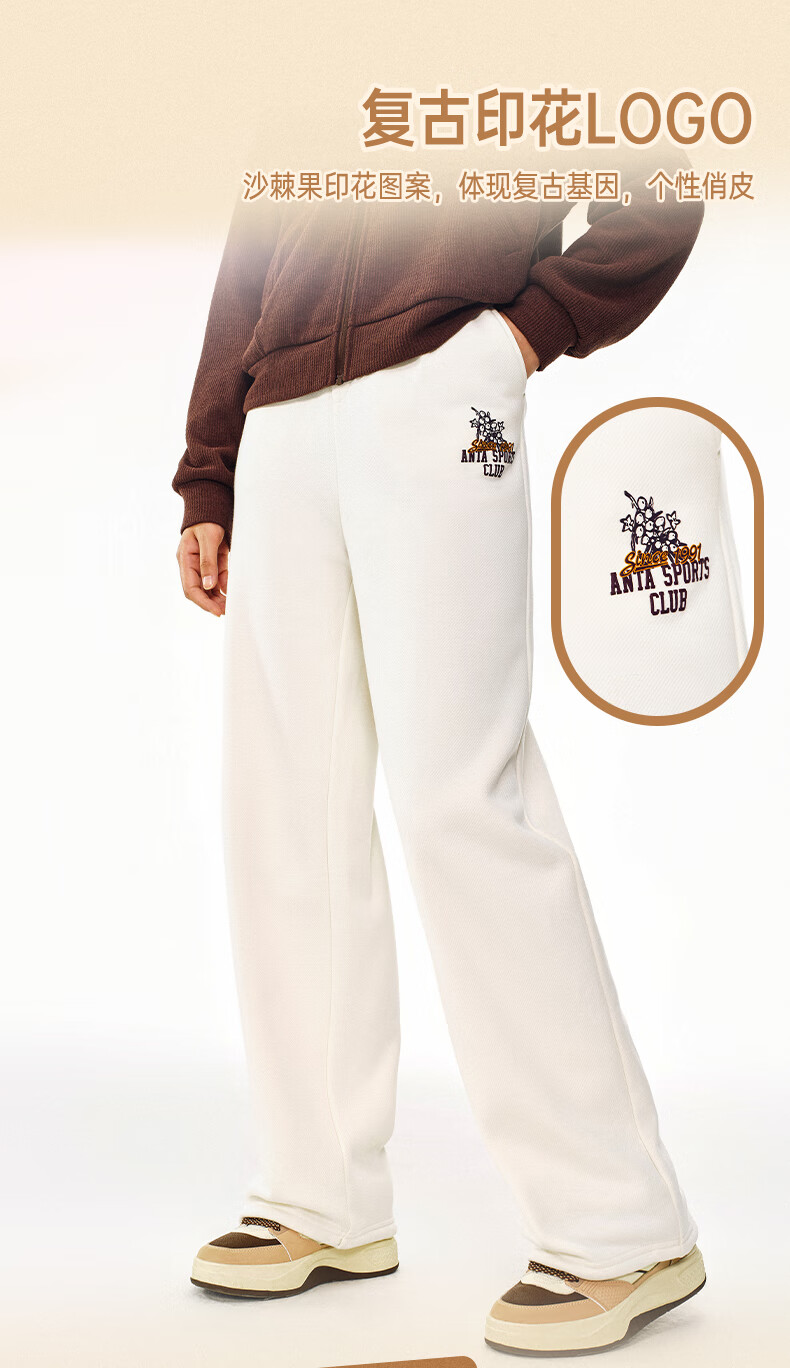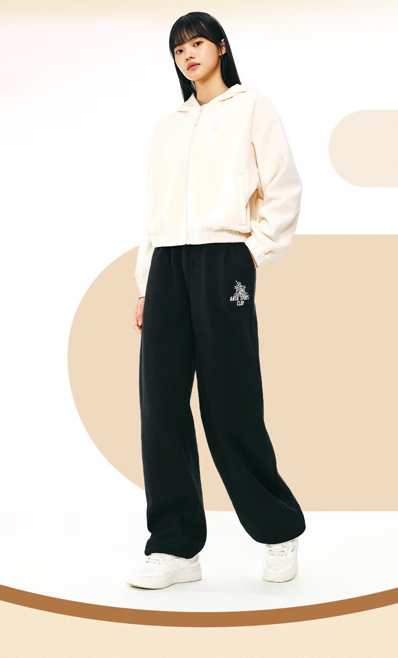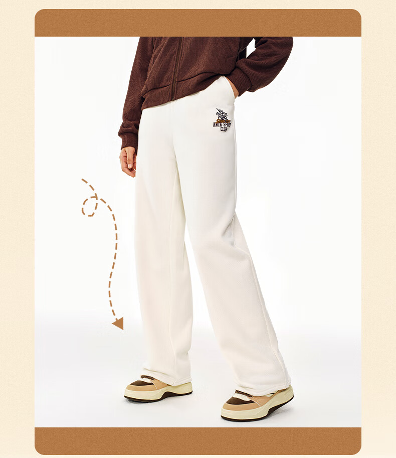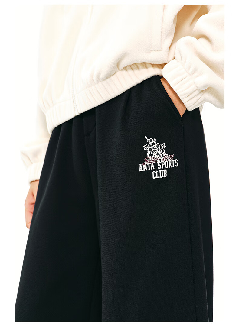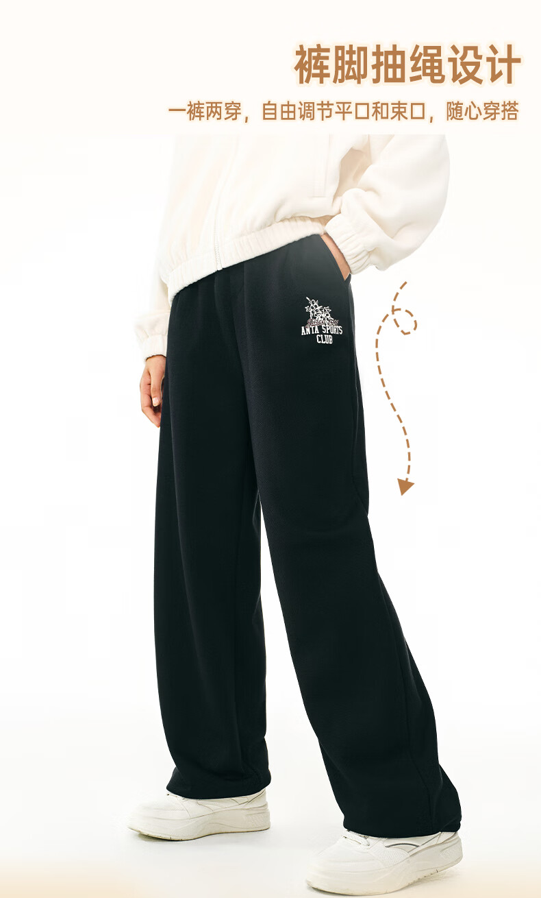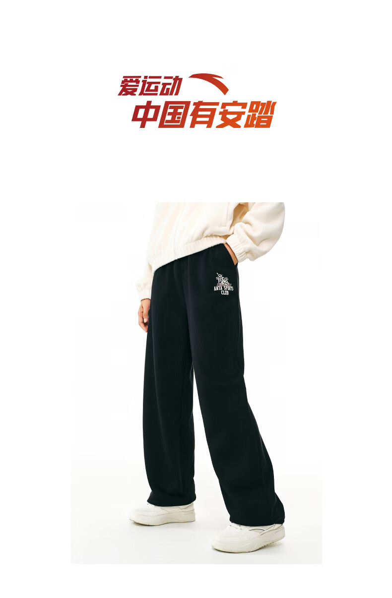 安踏(ANTA)休闲运动长裤 女2024冬季新款加绒保暖宽松直筒卫裤子162448304
