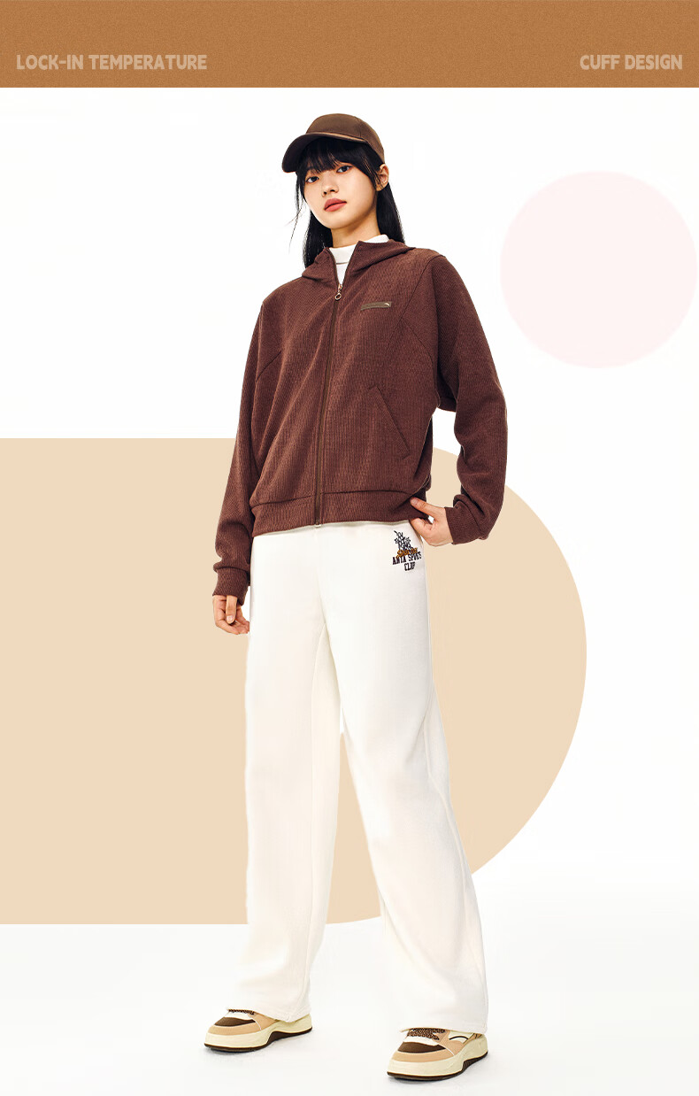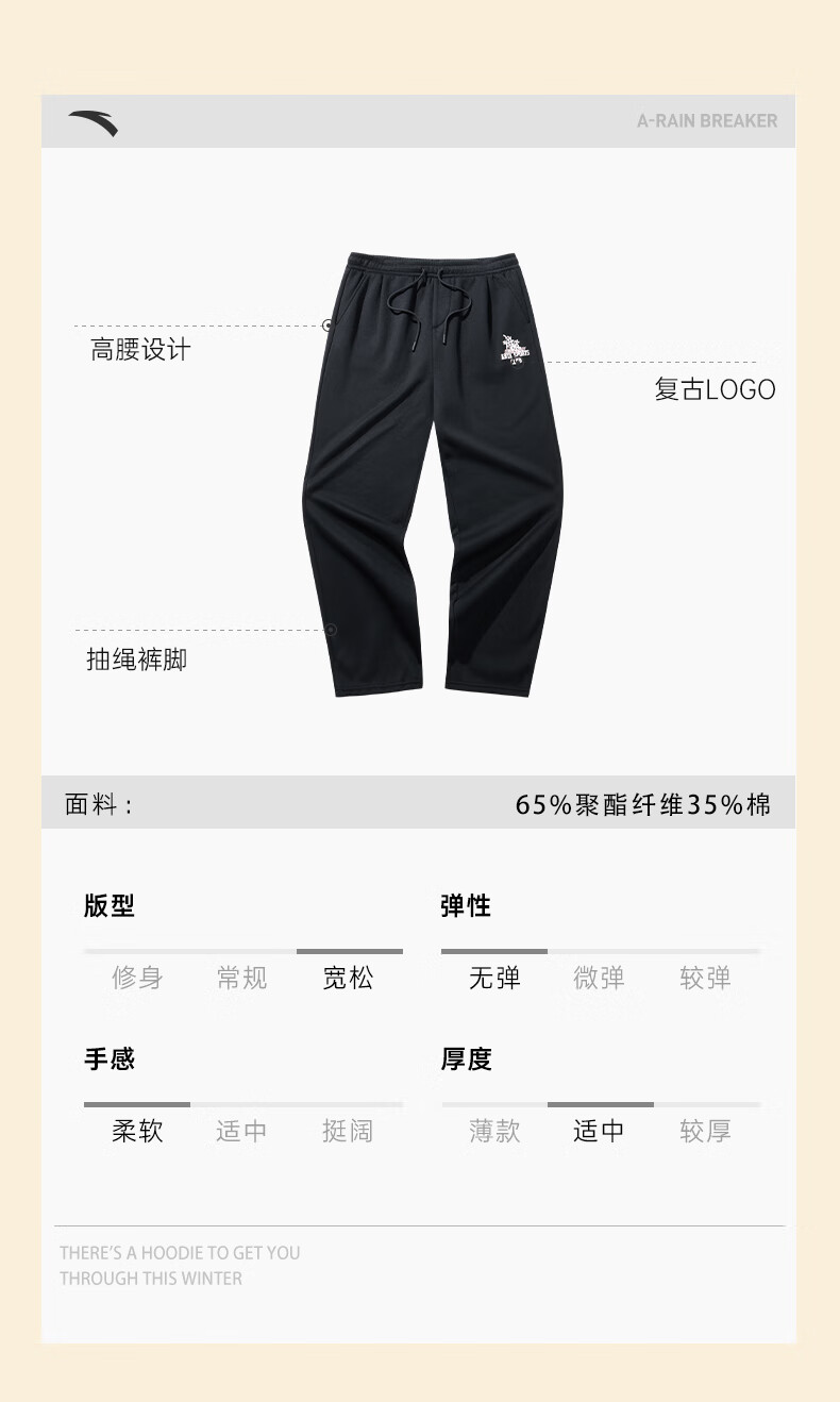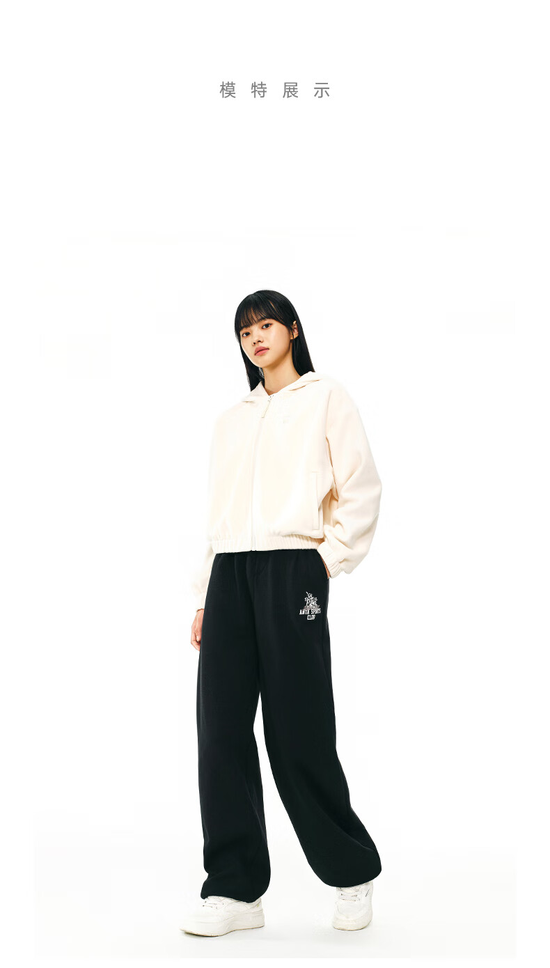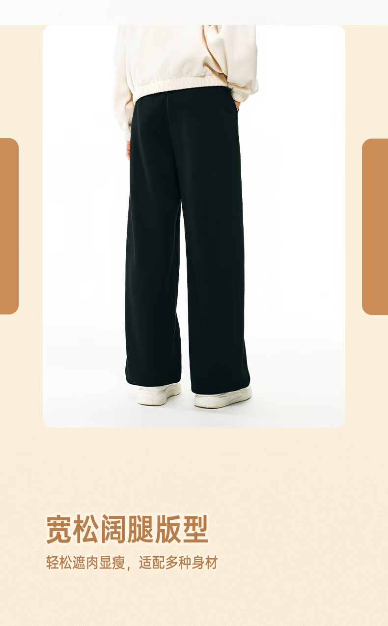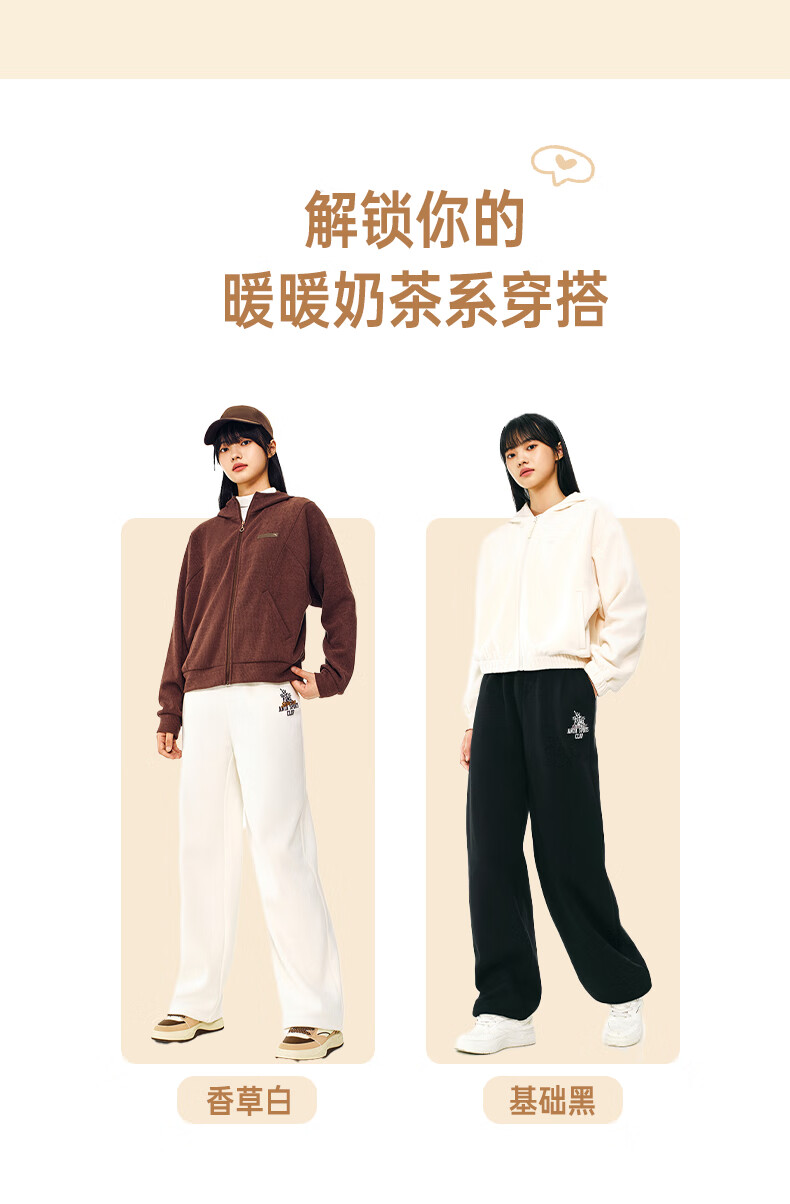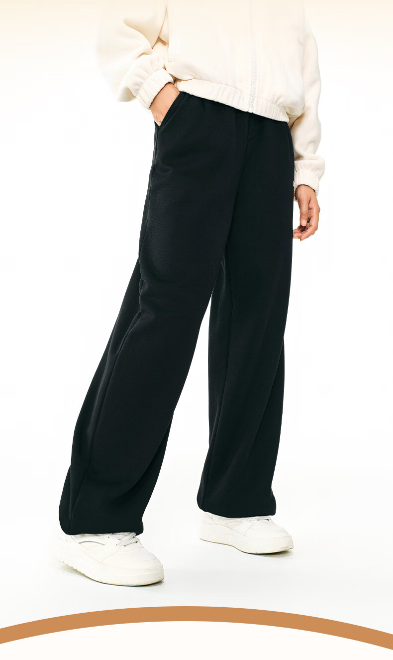 安踏(ANTA)休闲运动长裤 女2024冬季新款加绒保暖宽松直筒卫裤子162448304