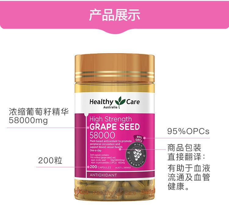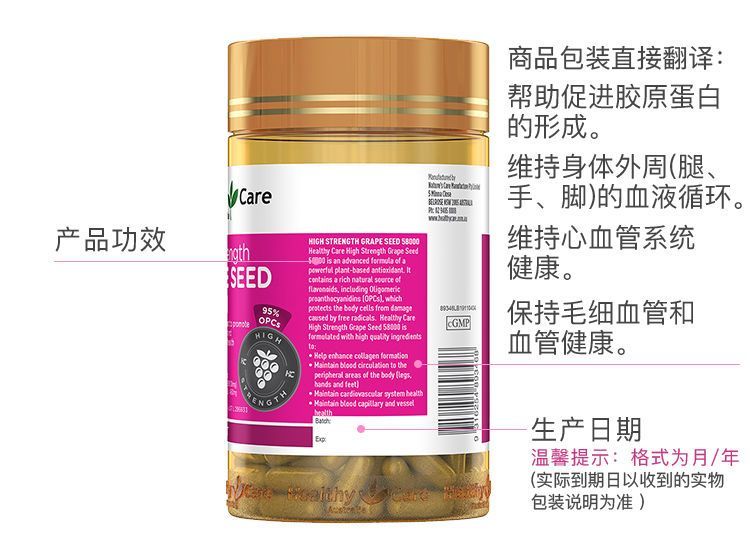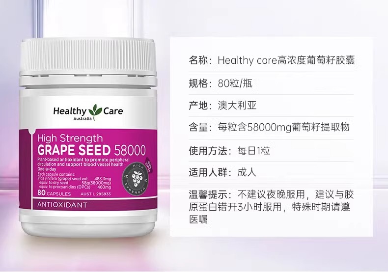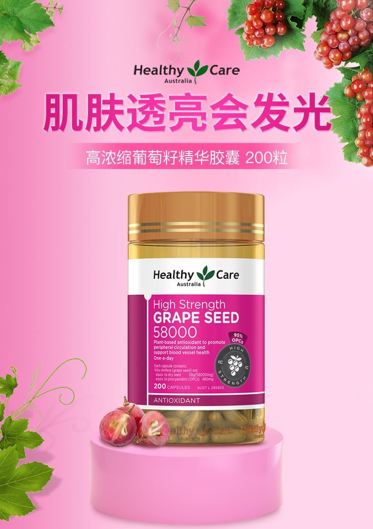 【保税仓】HealthyCare高含量葡萄籽萃取胶囊58000