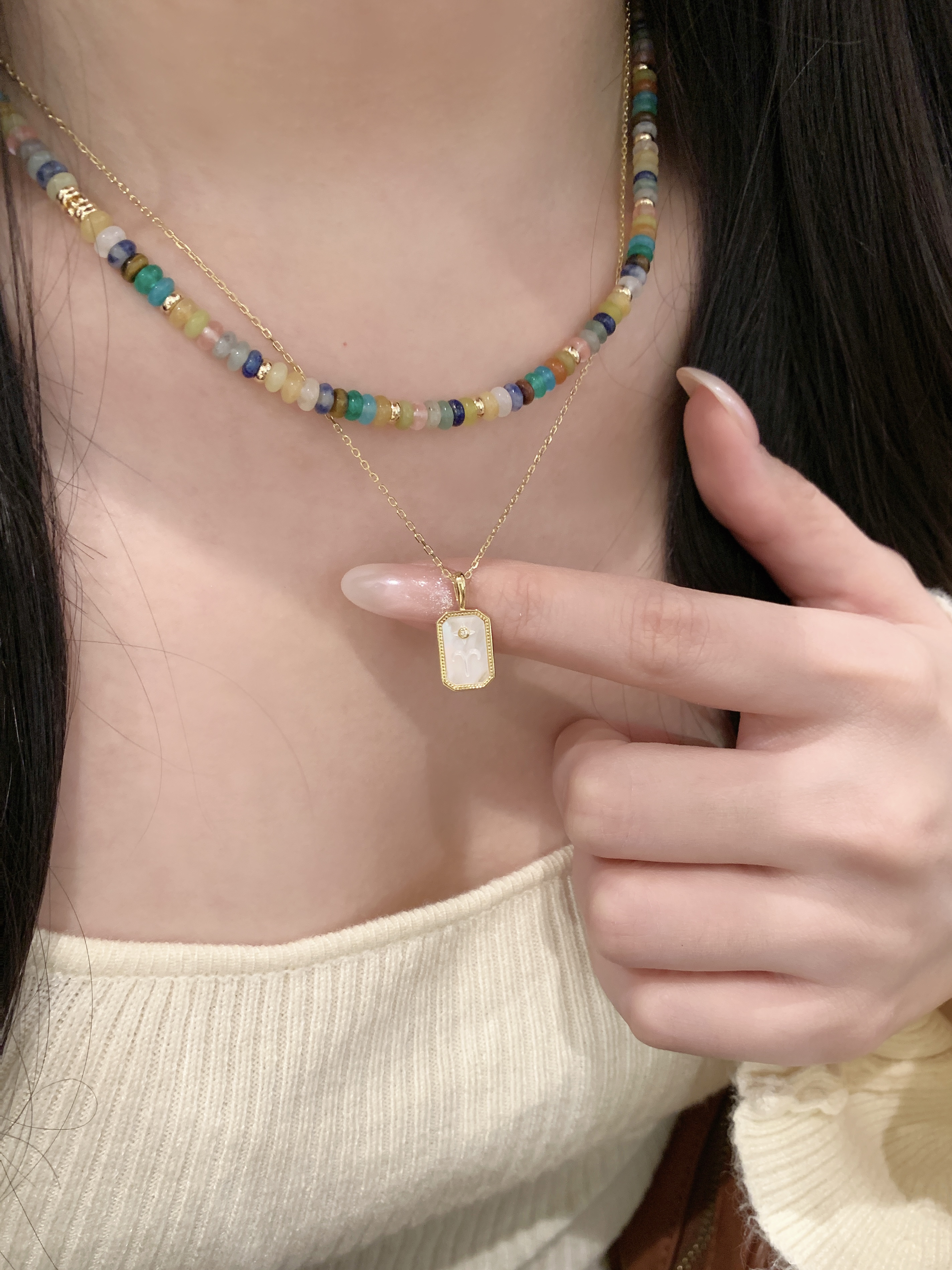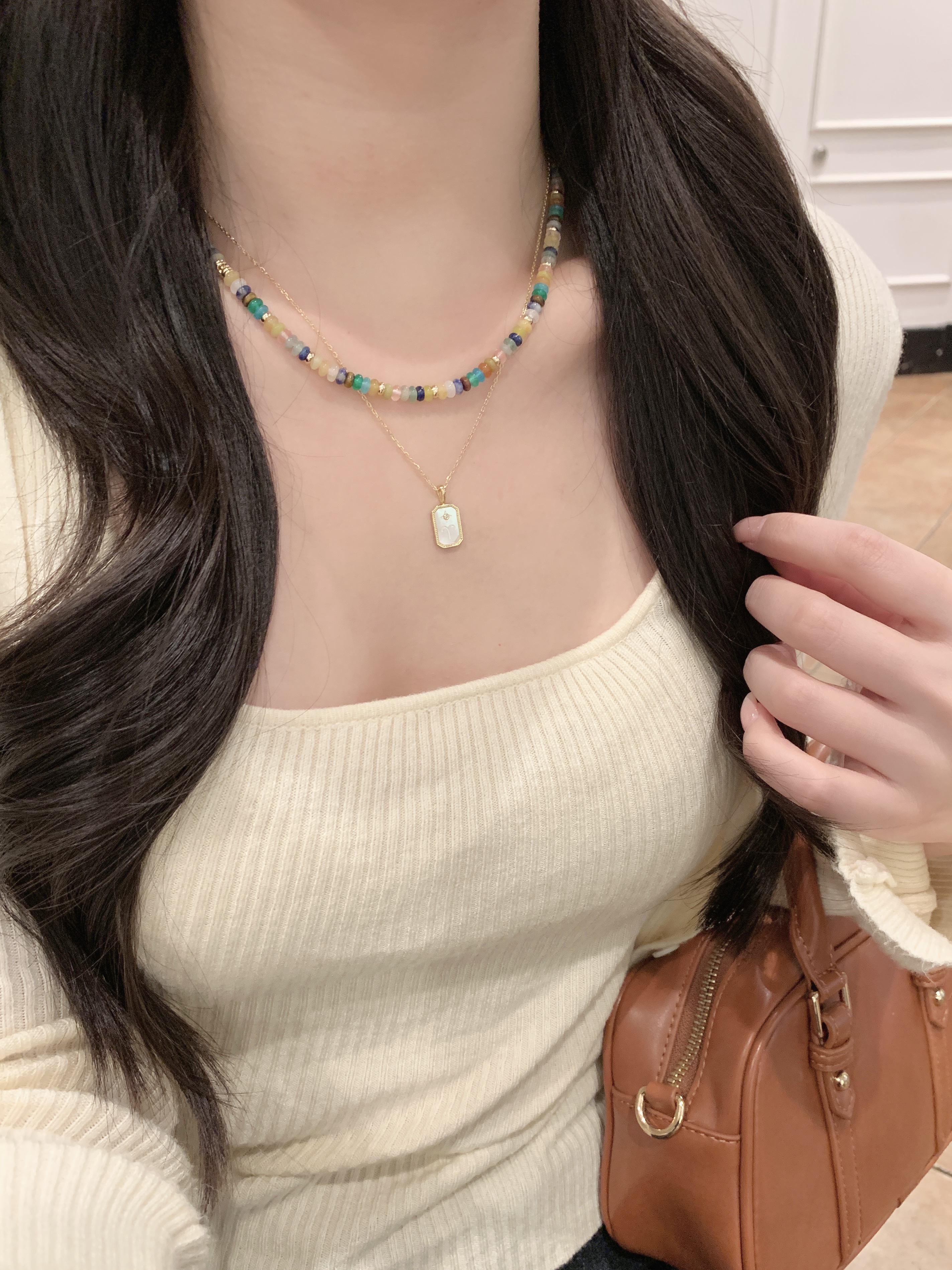和彩色串珠项链搭配,就是带有复古优雅气质的多巴胺风格,更日常,也更适合职场人的穿搭场景。