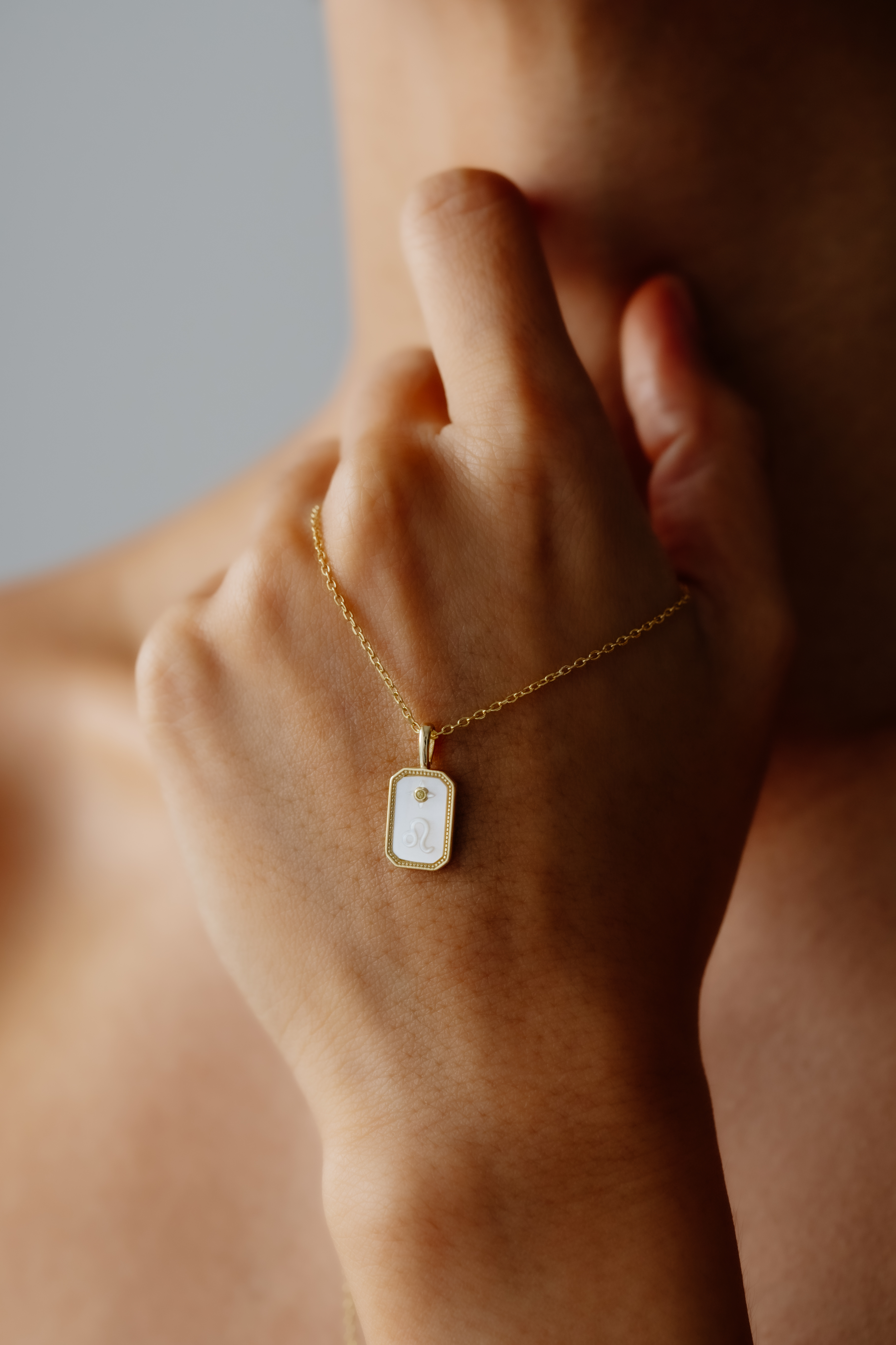 相比市面上常见的圆形星座吊坠,切角方形与古代盾牌形状相似,更有复古的优雅感觉~