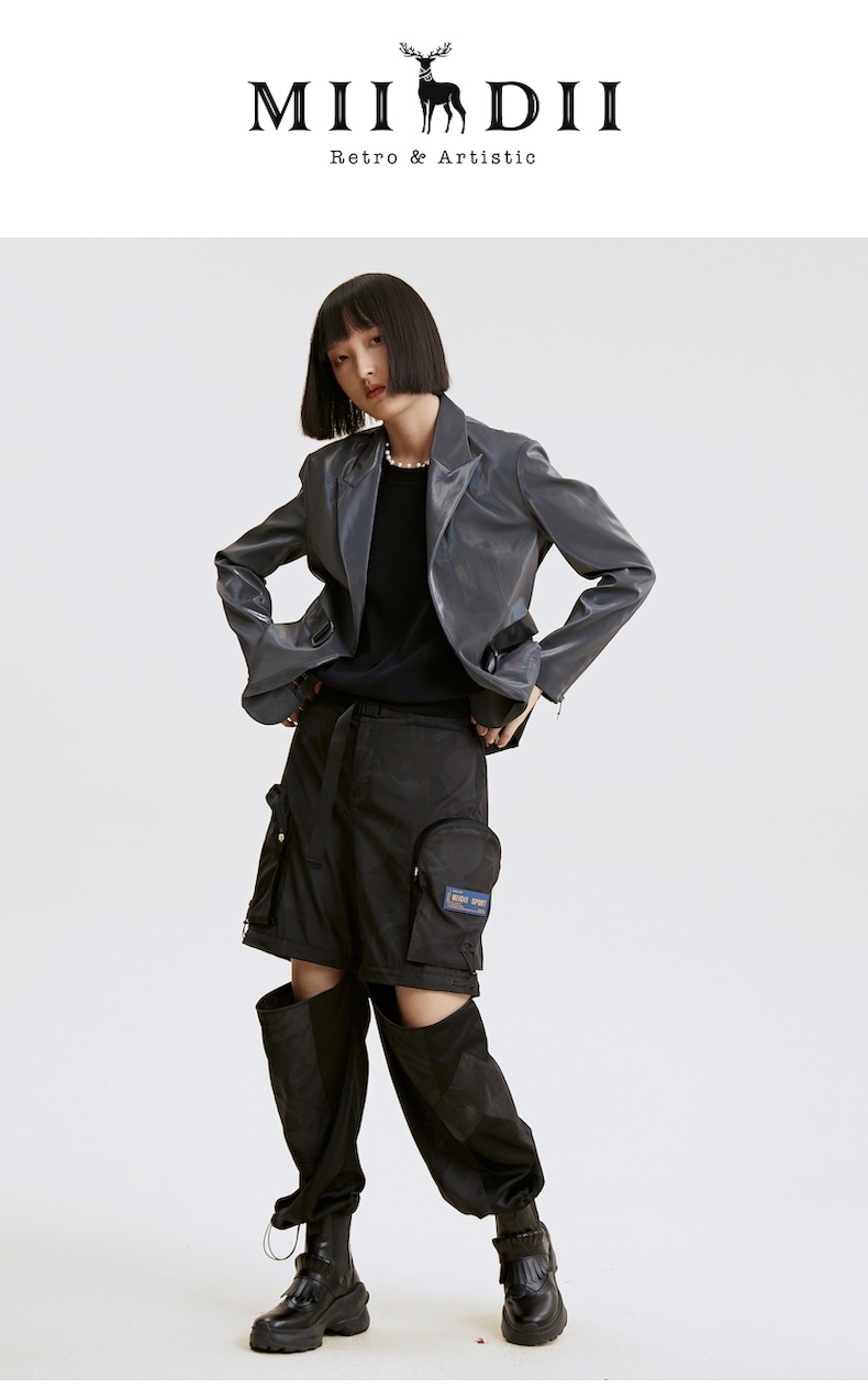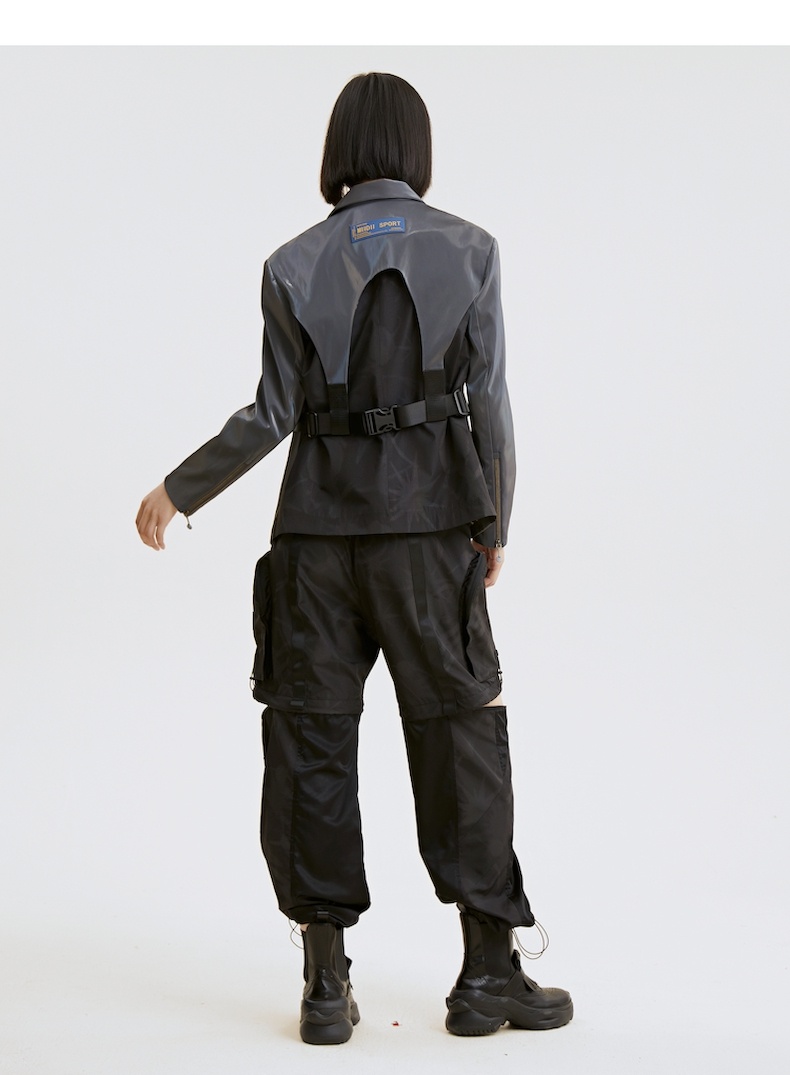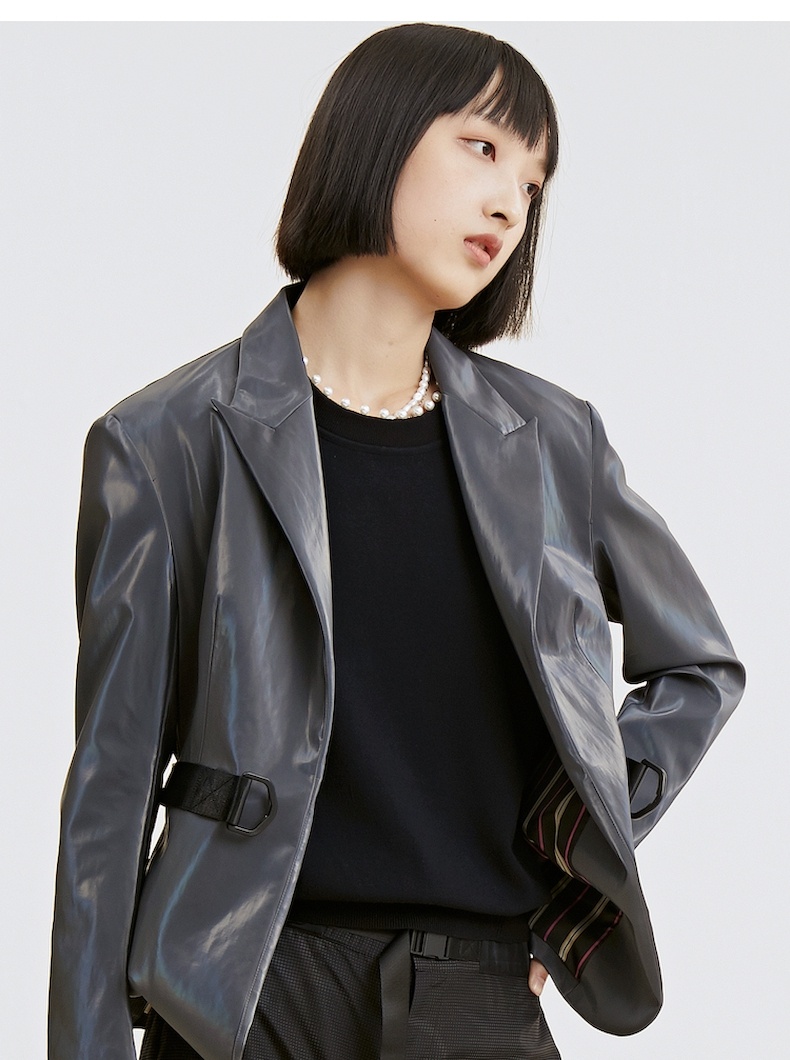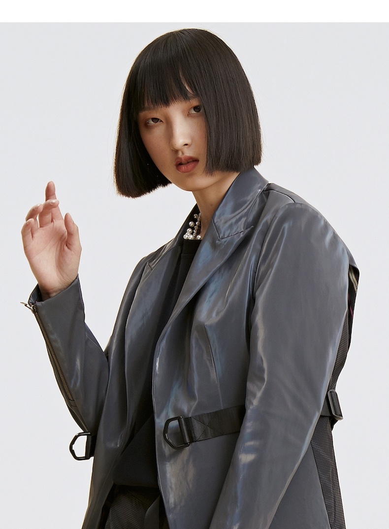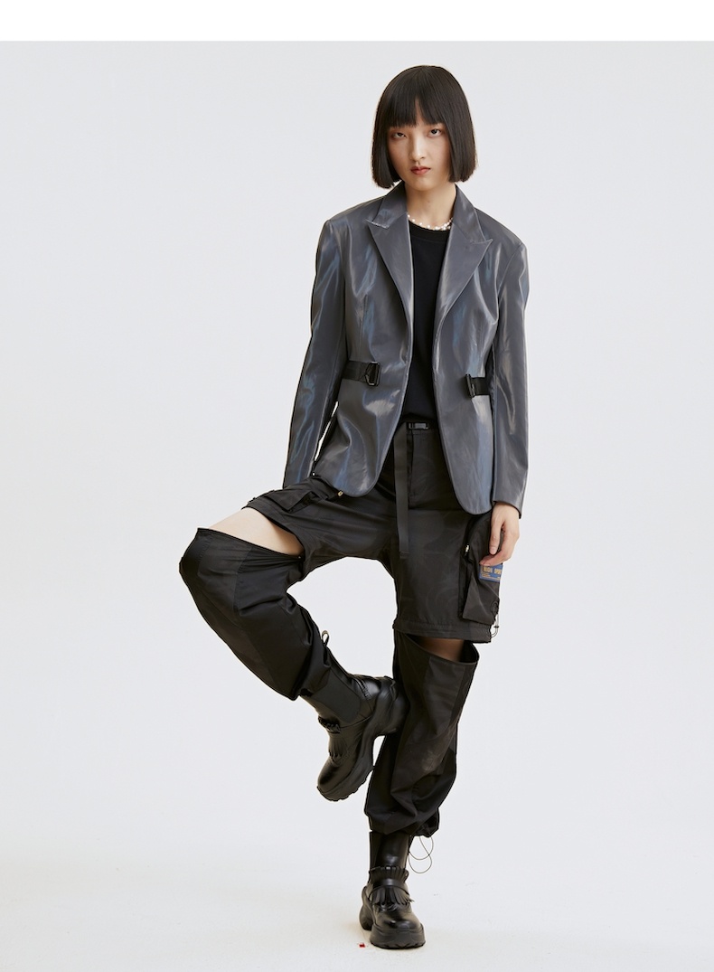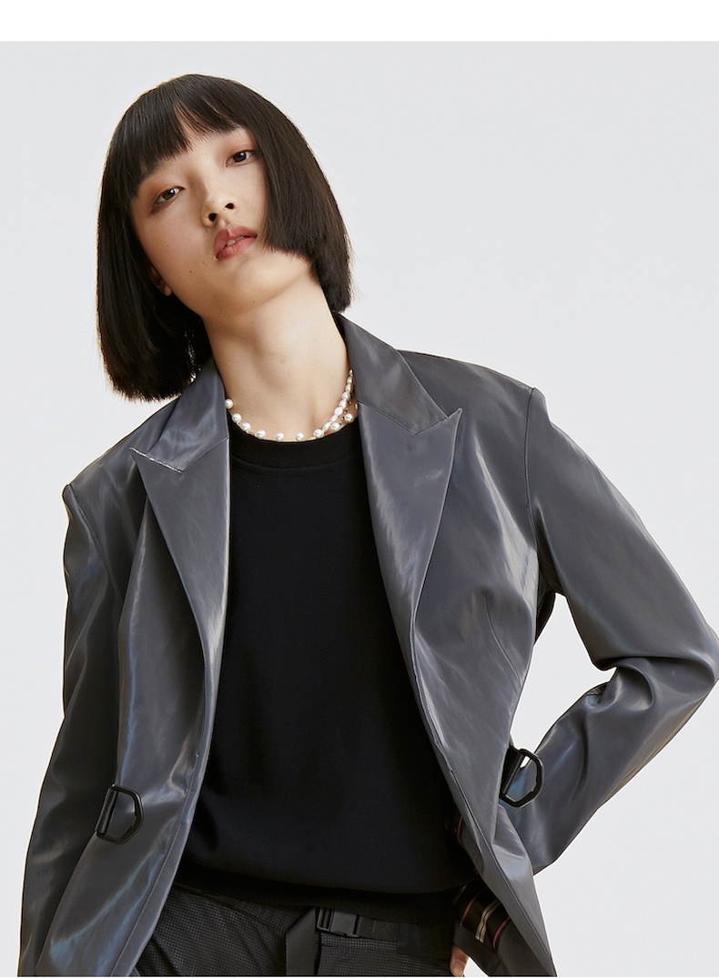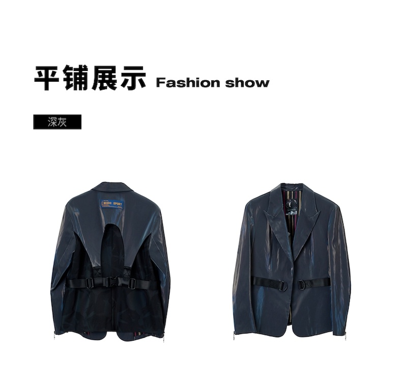 谜底西服2021秋季新款雾面幻彩光倒T型宽肩西装外套213MW1807