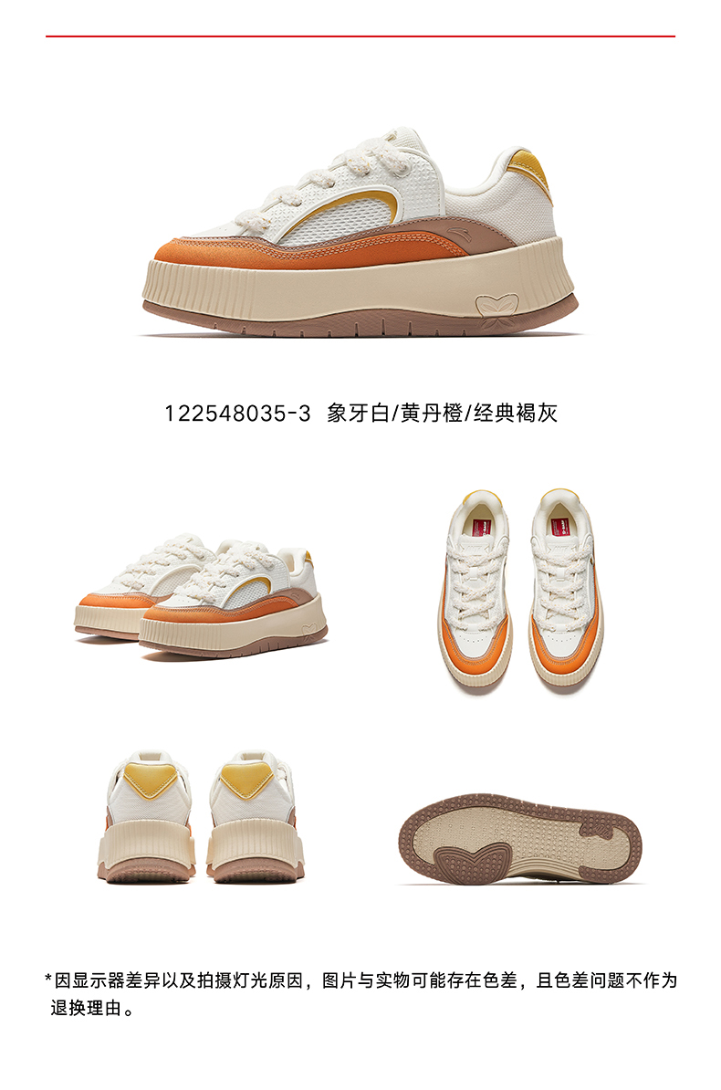 安踏慕斯丨厚底增高板鞋女鞋面包鞋秋季撞色百搭运动鞋122548035