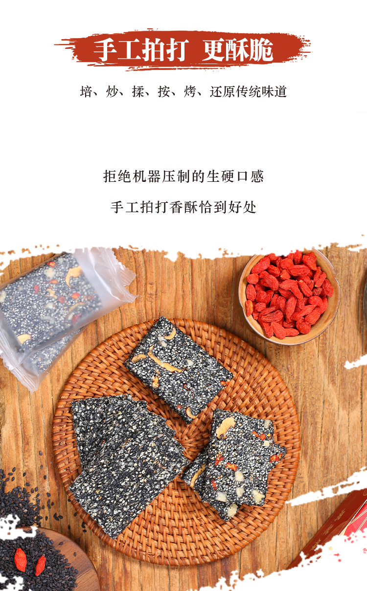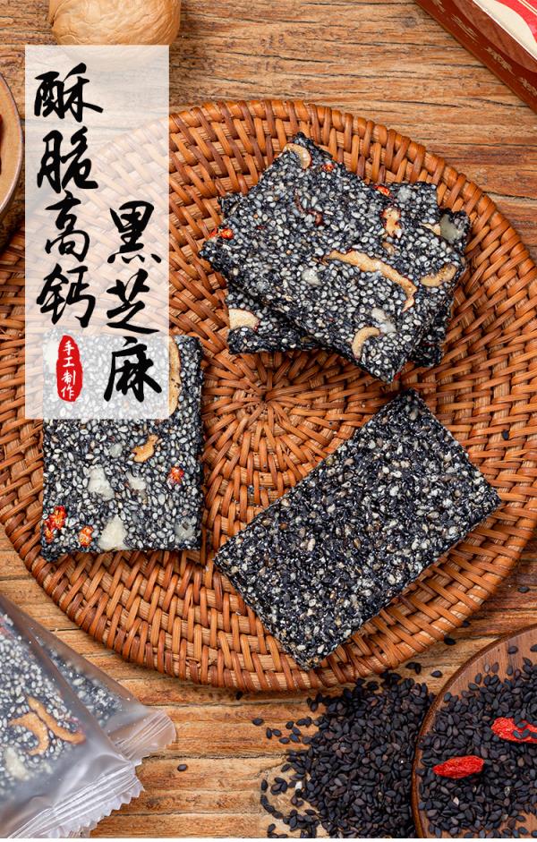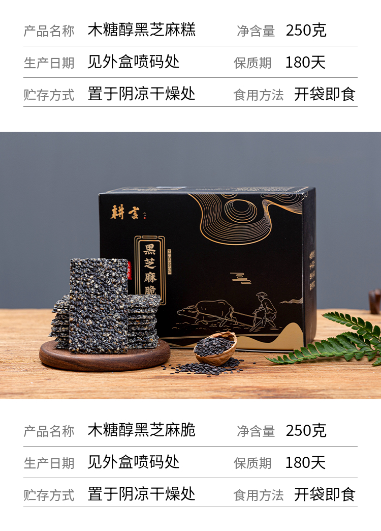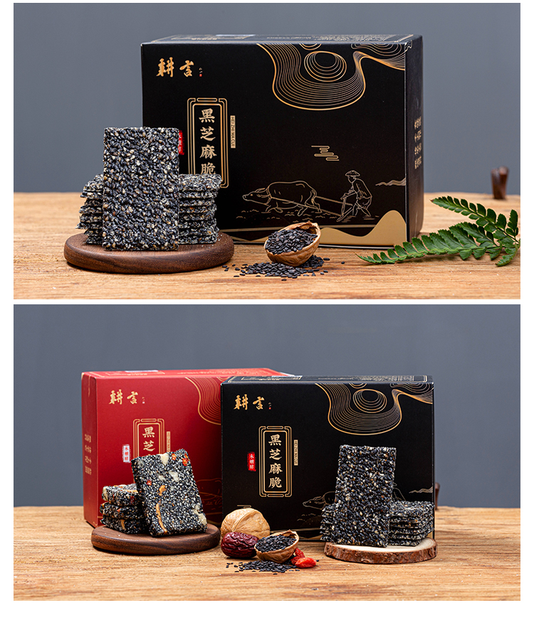优选丨【4送1】黑芝麻糕&黑芝麻脆 手工制作,非遗传统点心, 独立包装 随时补充能量,黑芝麻片香脆,黑芝麻糕软糯不粘牙