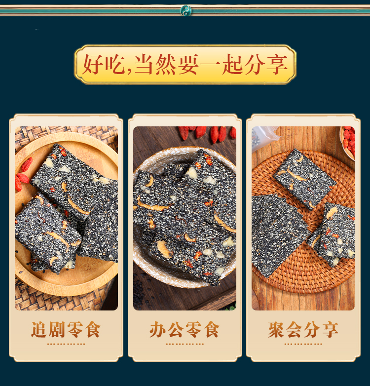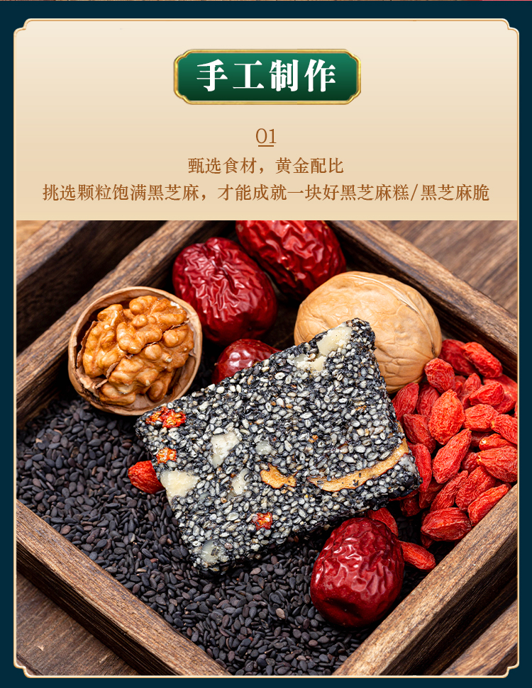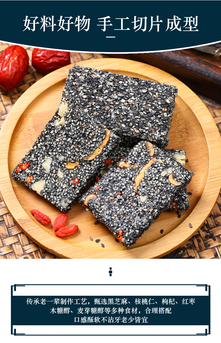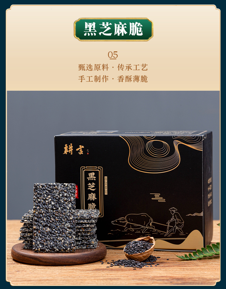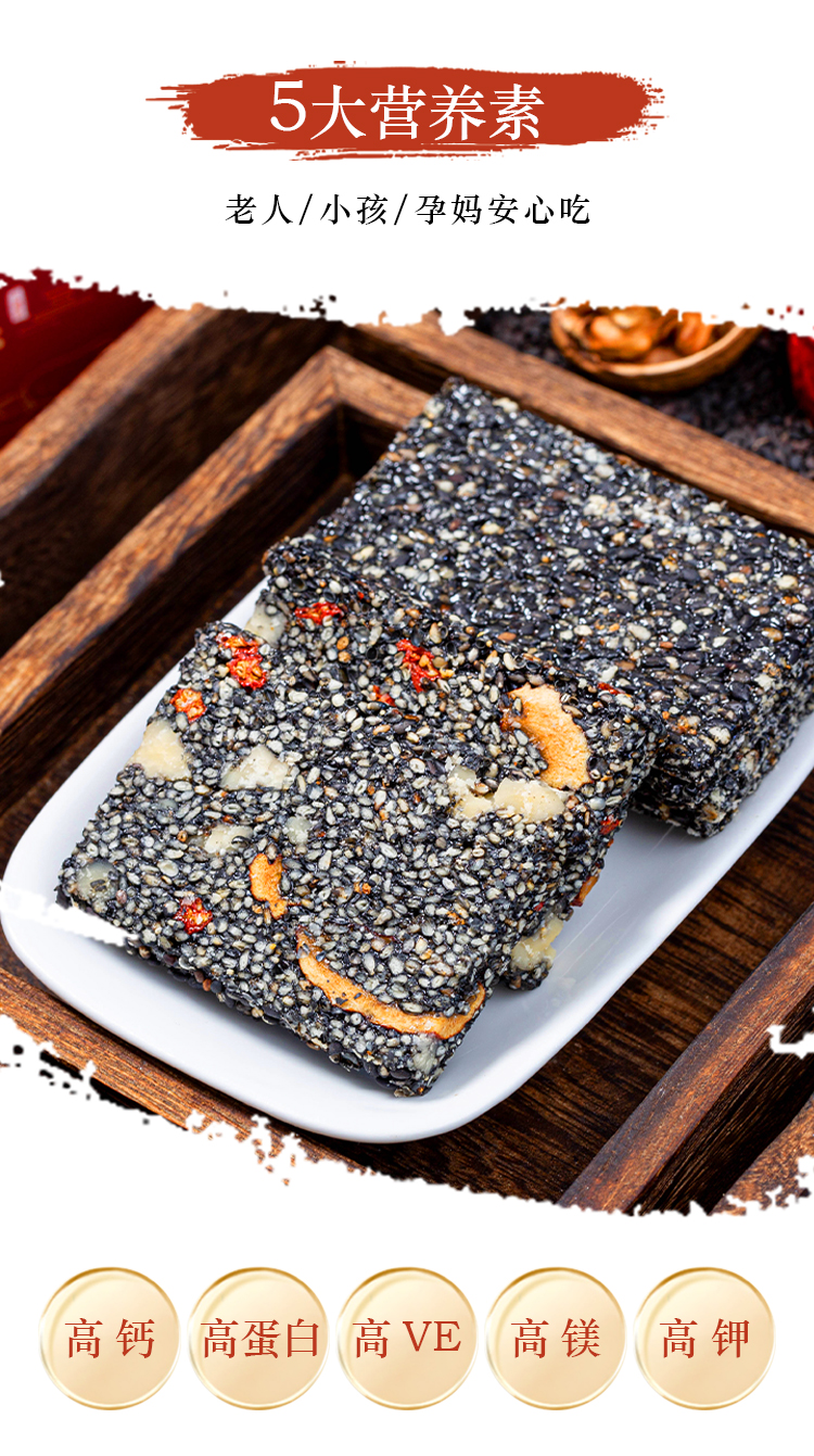优选丨【4送1】黑芝麻糕&黑芝麻脆 手工制作,非遗传统点心, 独立包装 随时补充能量,黑芝麻片香脆,黑芝麻糕软糯不粘牙