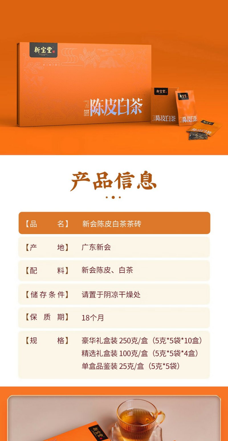 新宝堂 新会陈皮白茶礼盒新会陈皮X福鼎白茶 25g*4