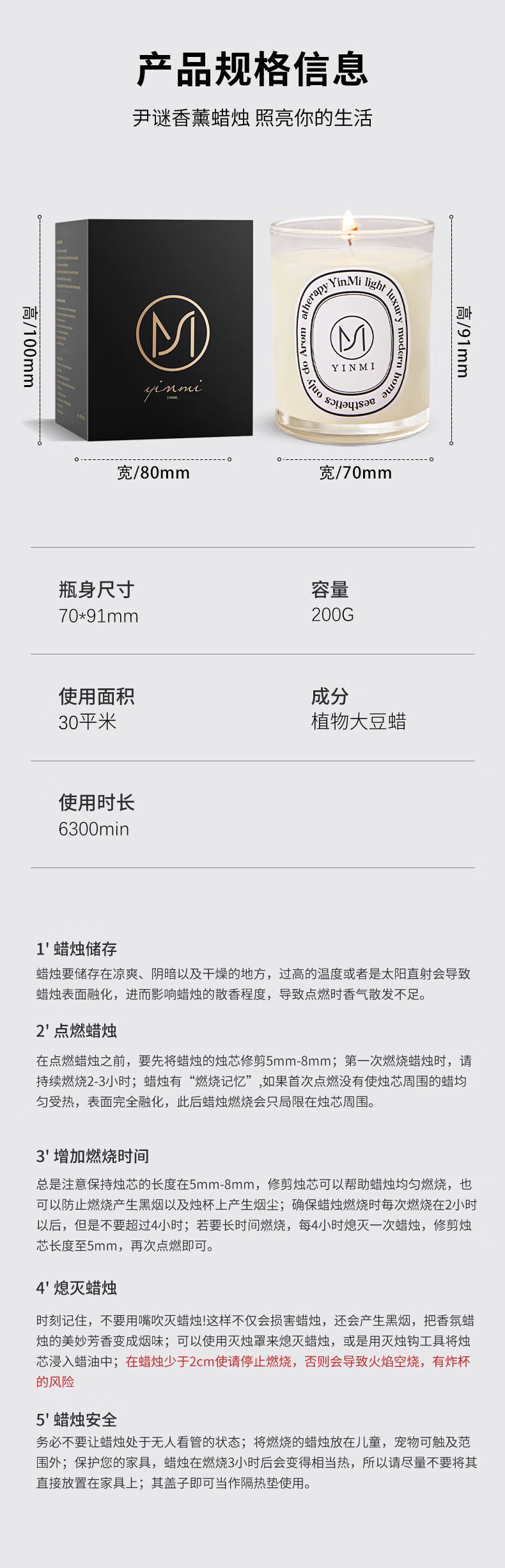 尹谜 香薰蜡烛 感官系列香薰蜡烛 200g(乌木檀香)