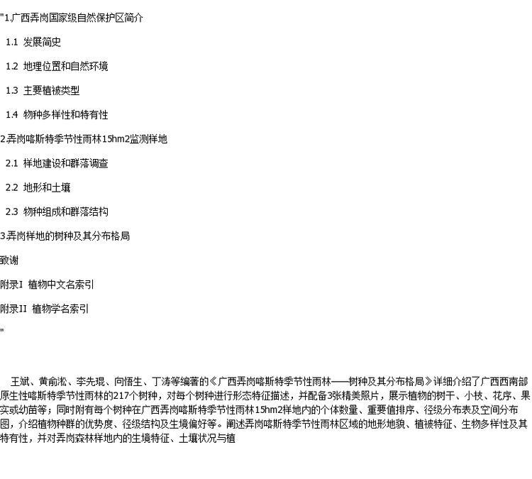 广西弄岗喀斯特季节性雨林--树种及其分布格局/中国森林生物多样性监测网络丛书 8608