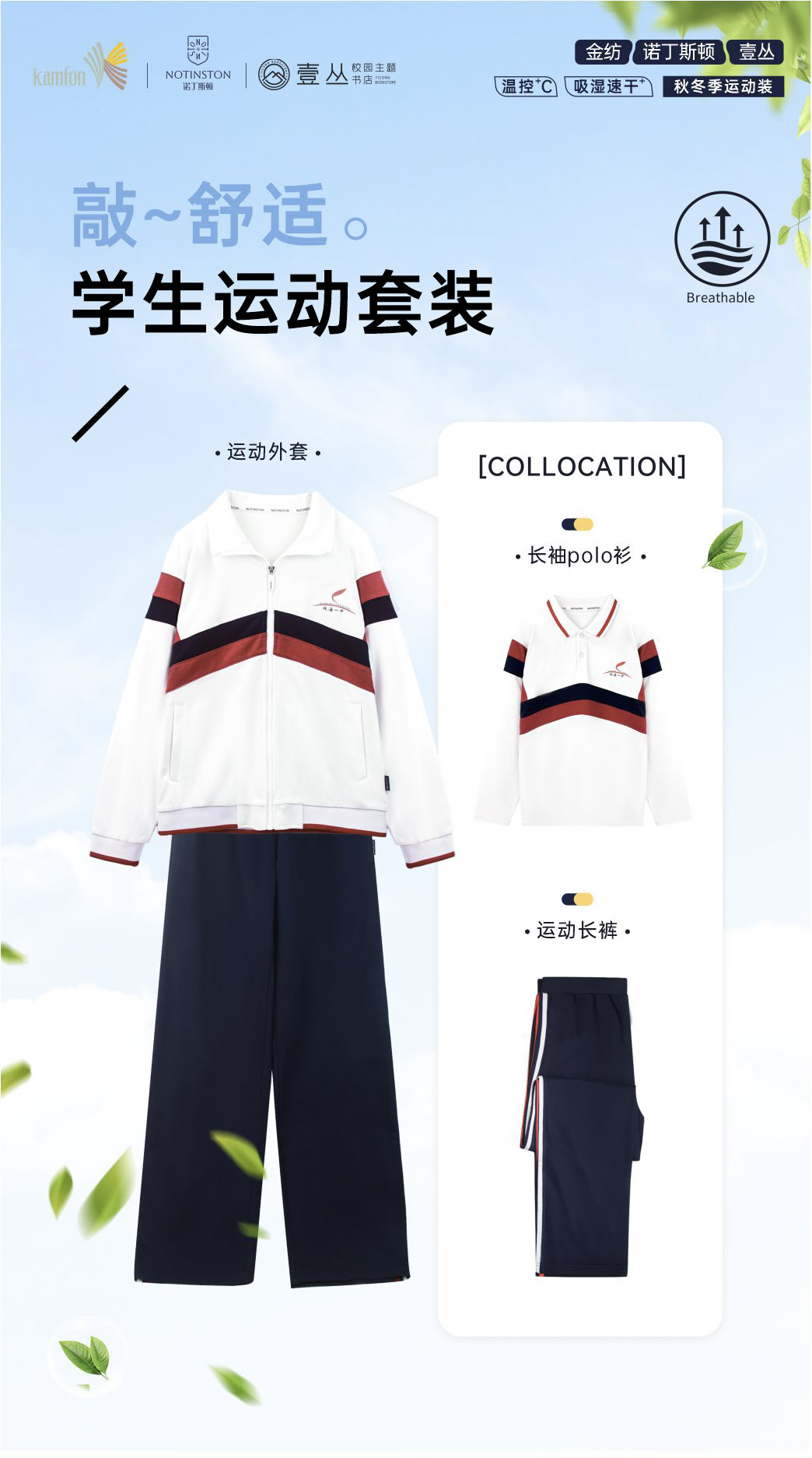 【珠海电台】诺丁斯顿 珠海市第一中学 高中校服 长袖上衣&运动服套装 瑞士智能温控面料