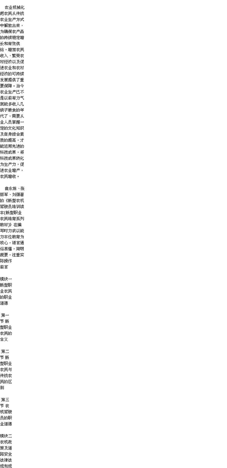新型农机驾驶员培训读本8662 教材中国林业出版社官方旗舰店正版畅销书