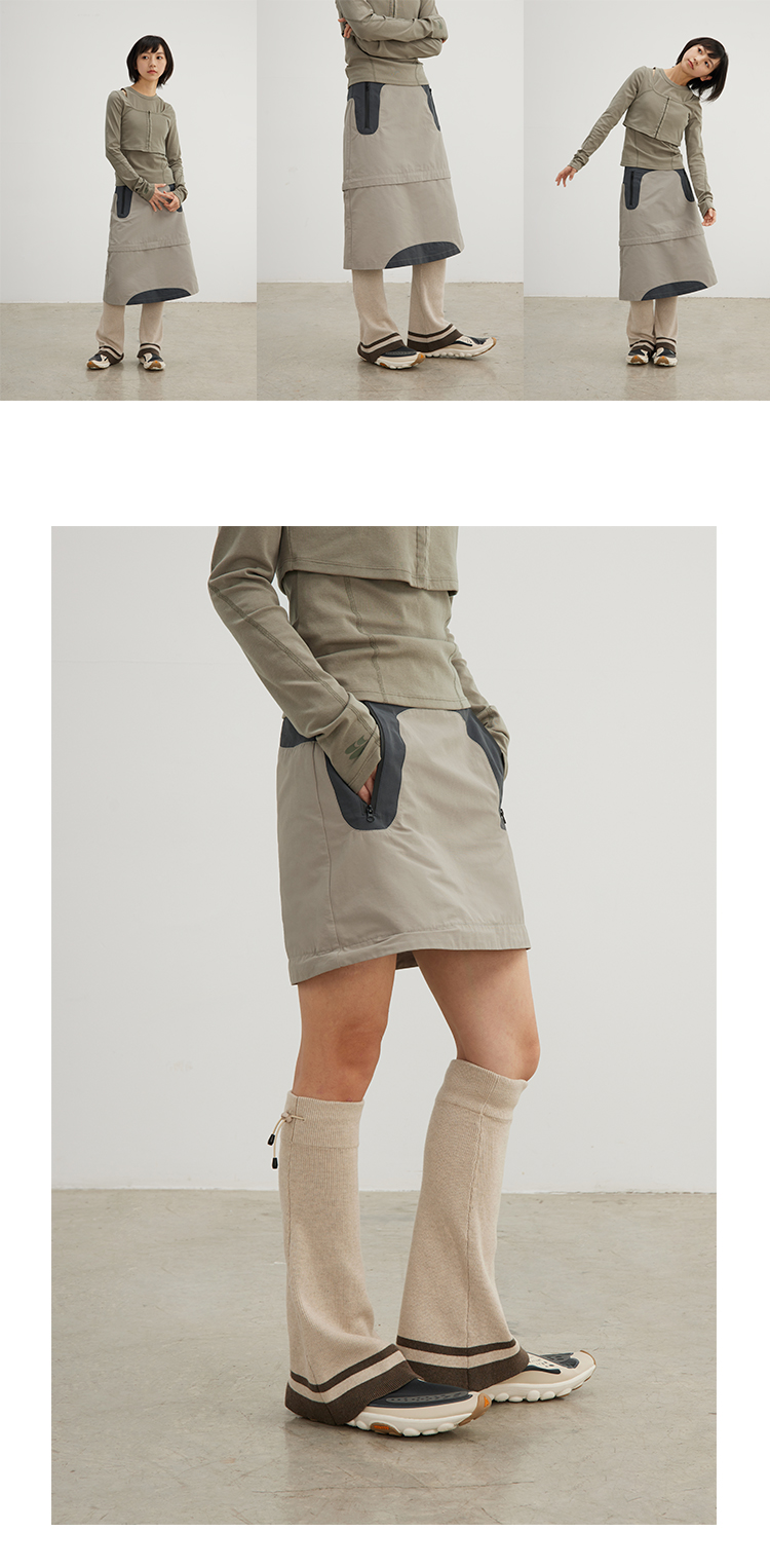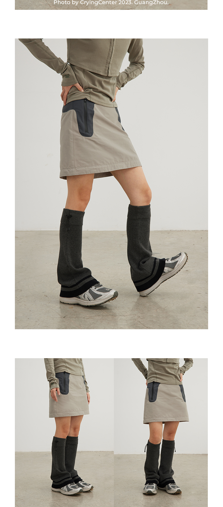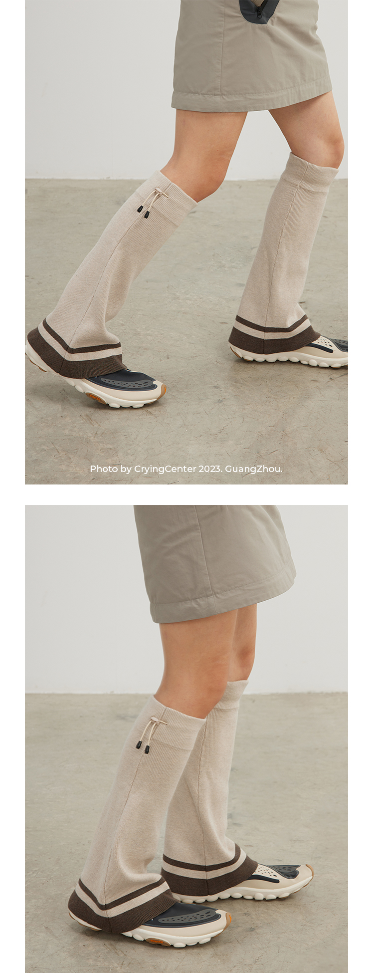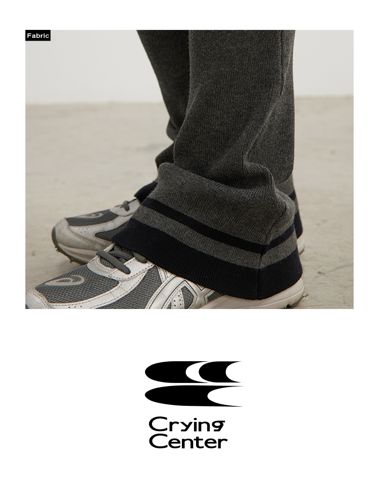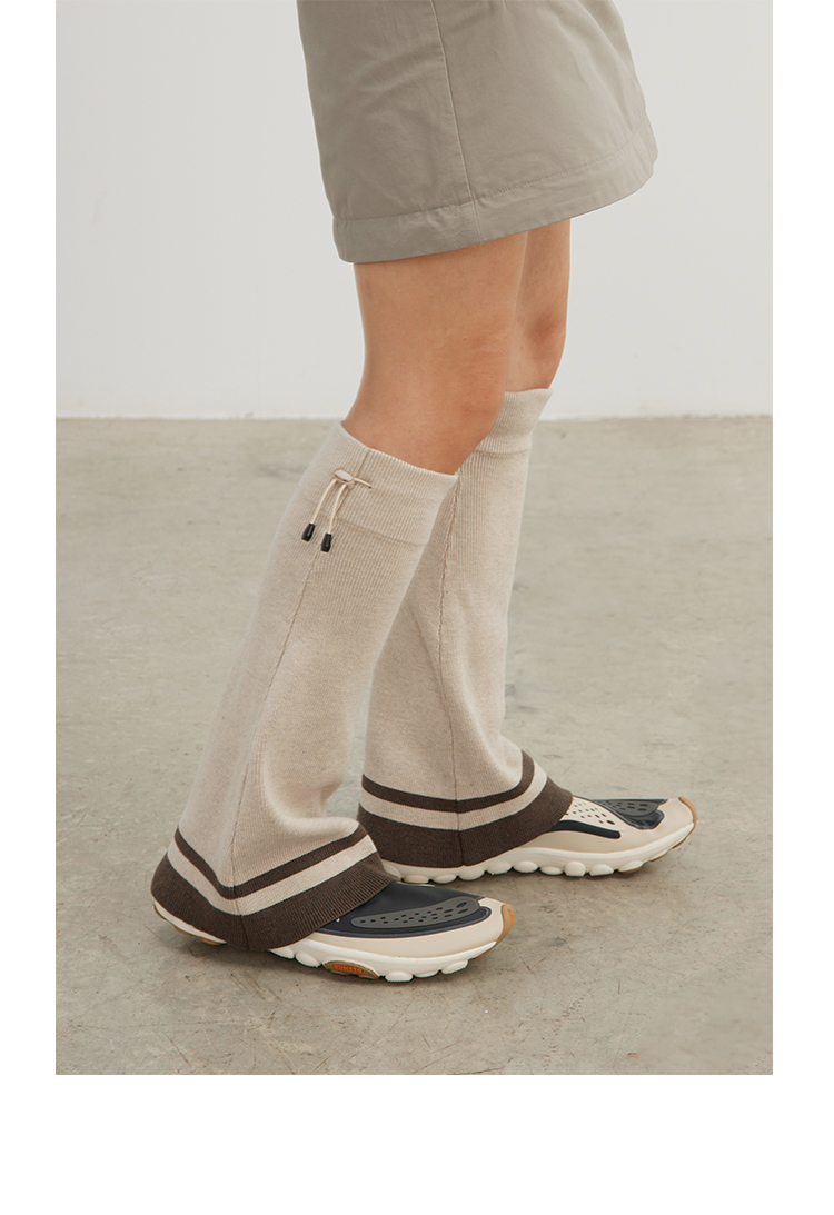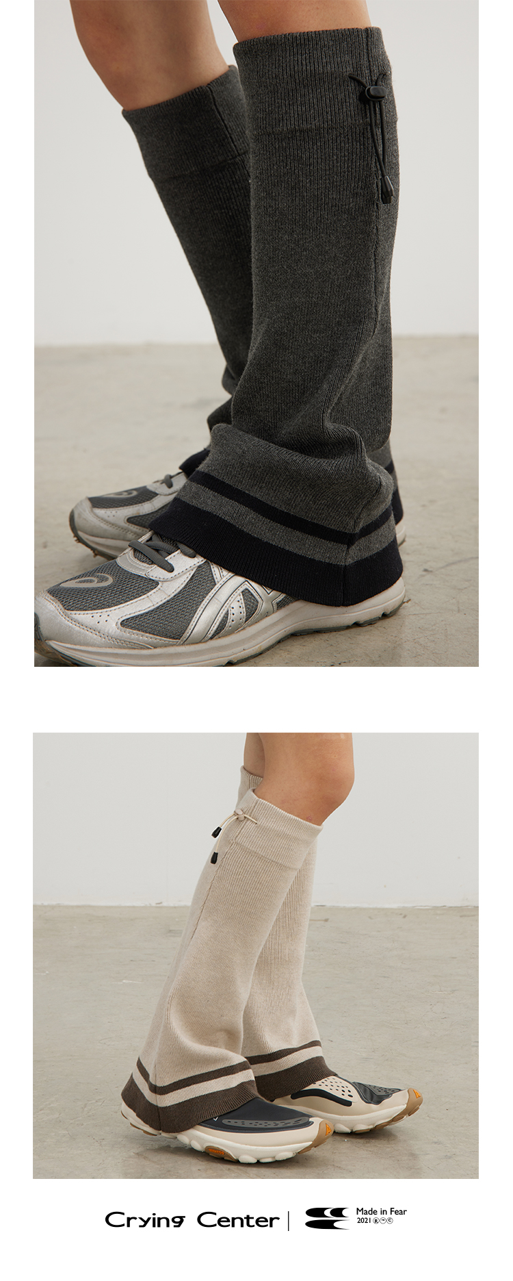CryingCenter 深灰米杏喇叭造型针织运动腿套松紧橡筋 哭喊中心