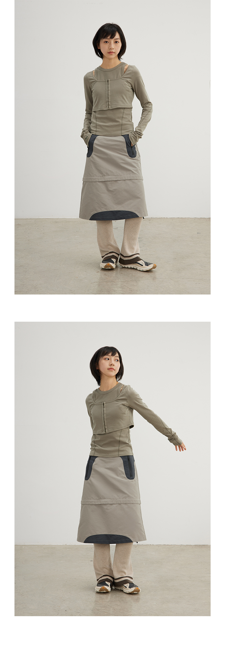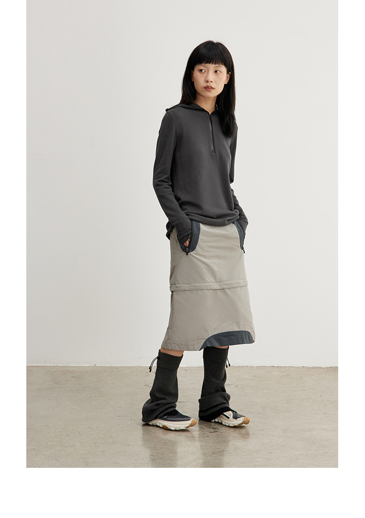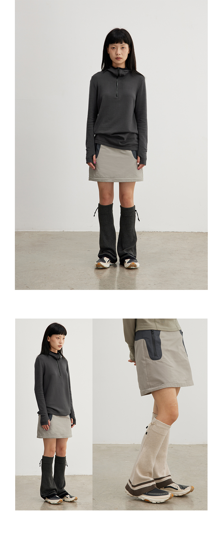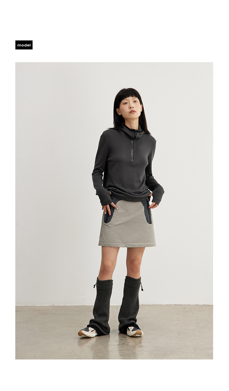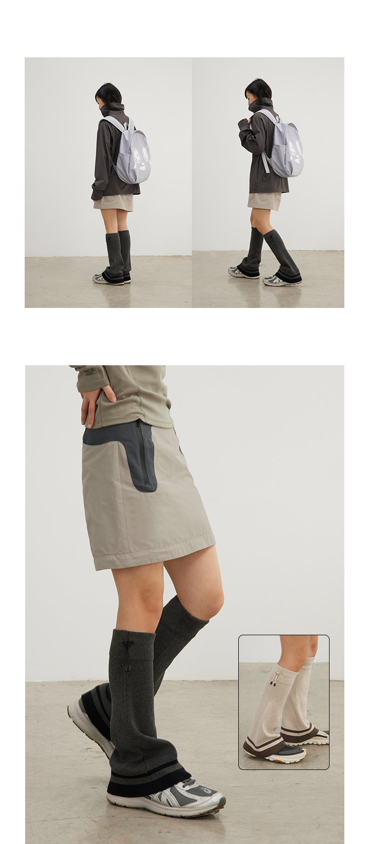 CryingCenter 深灰米杏喇叭造型针织运动腿套松紧橡筋 哭喊中心
