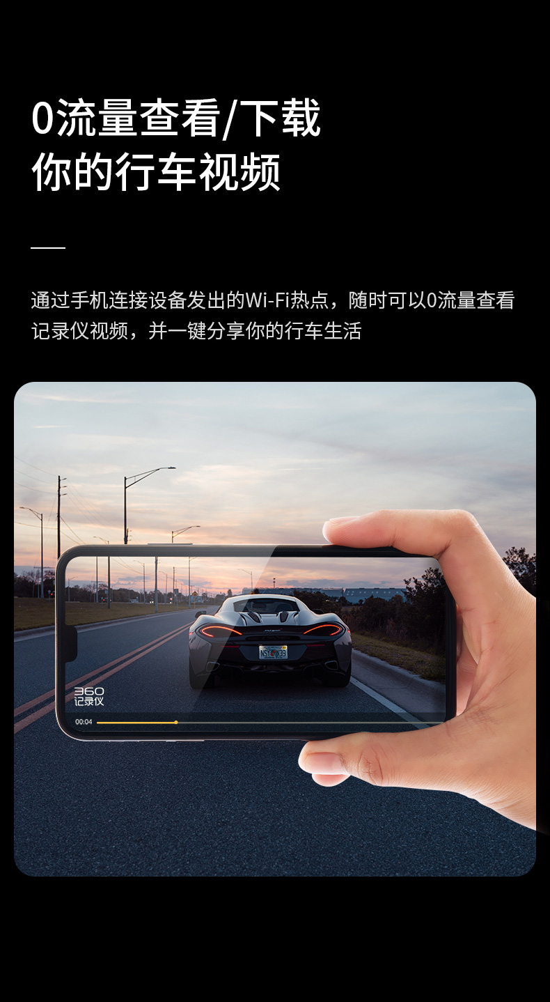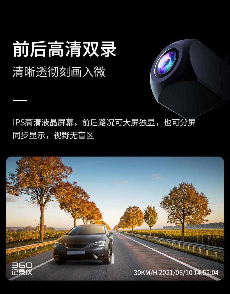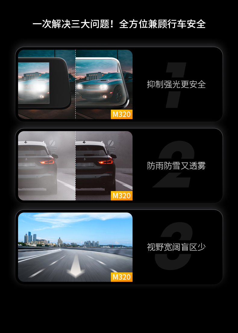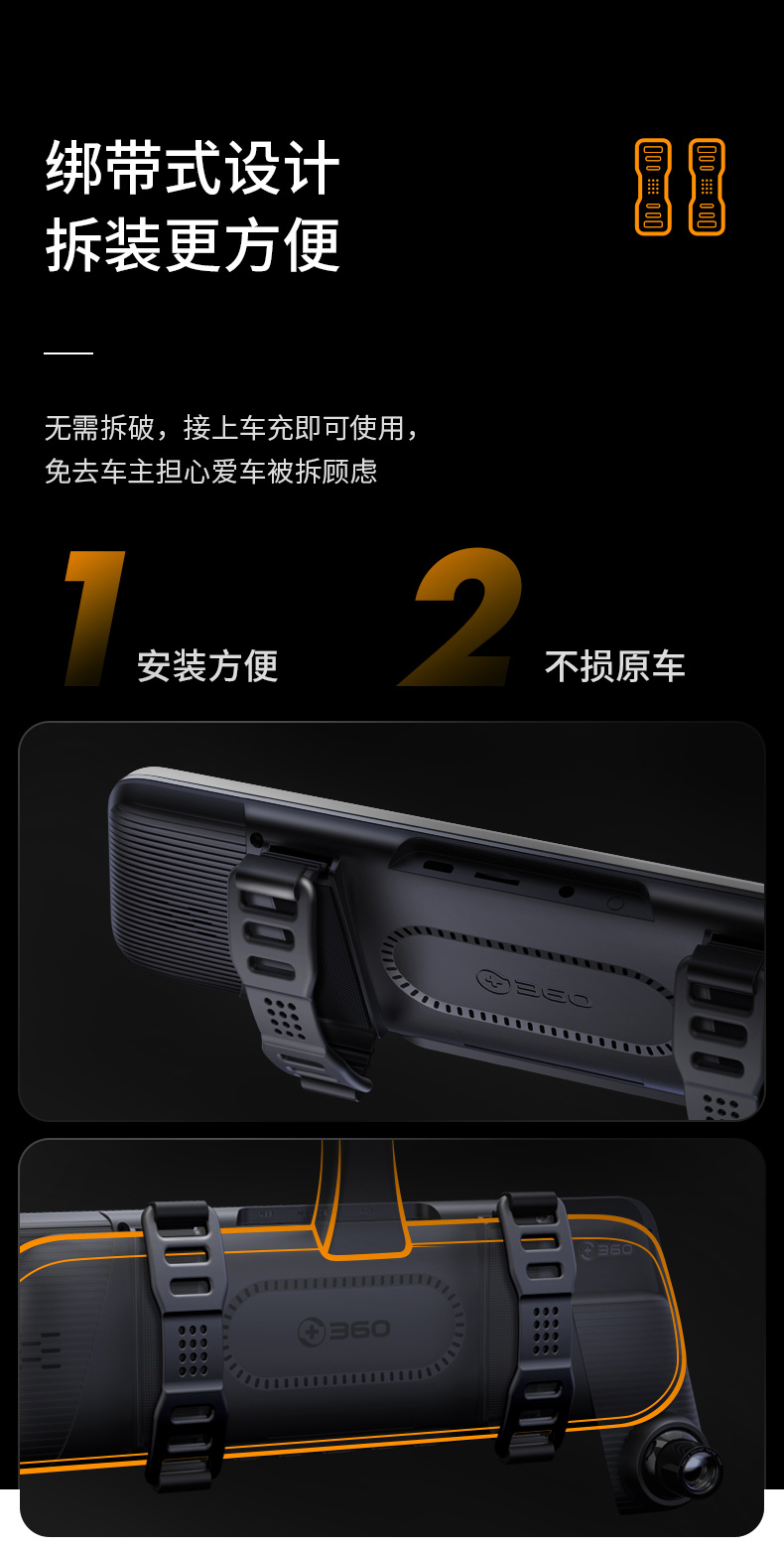 360行车记录仪M320标准版 1296P高清拍摄前后双录倒车影像全屏触摸屏流媒体后视镜
