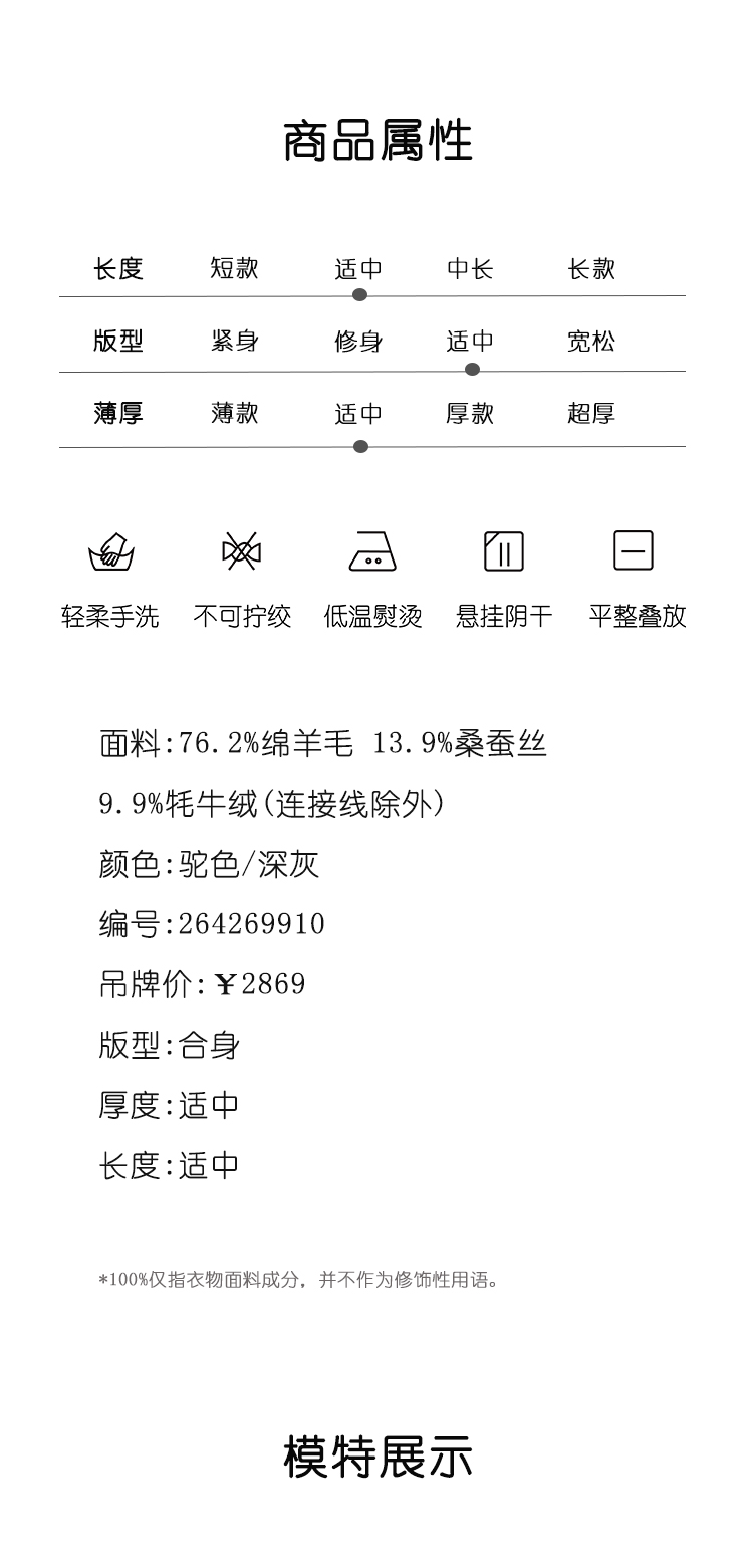 264269910长款牦牛绒混纺大衣