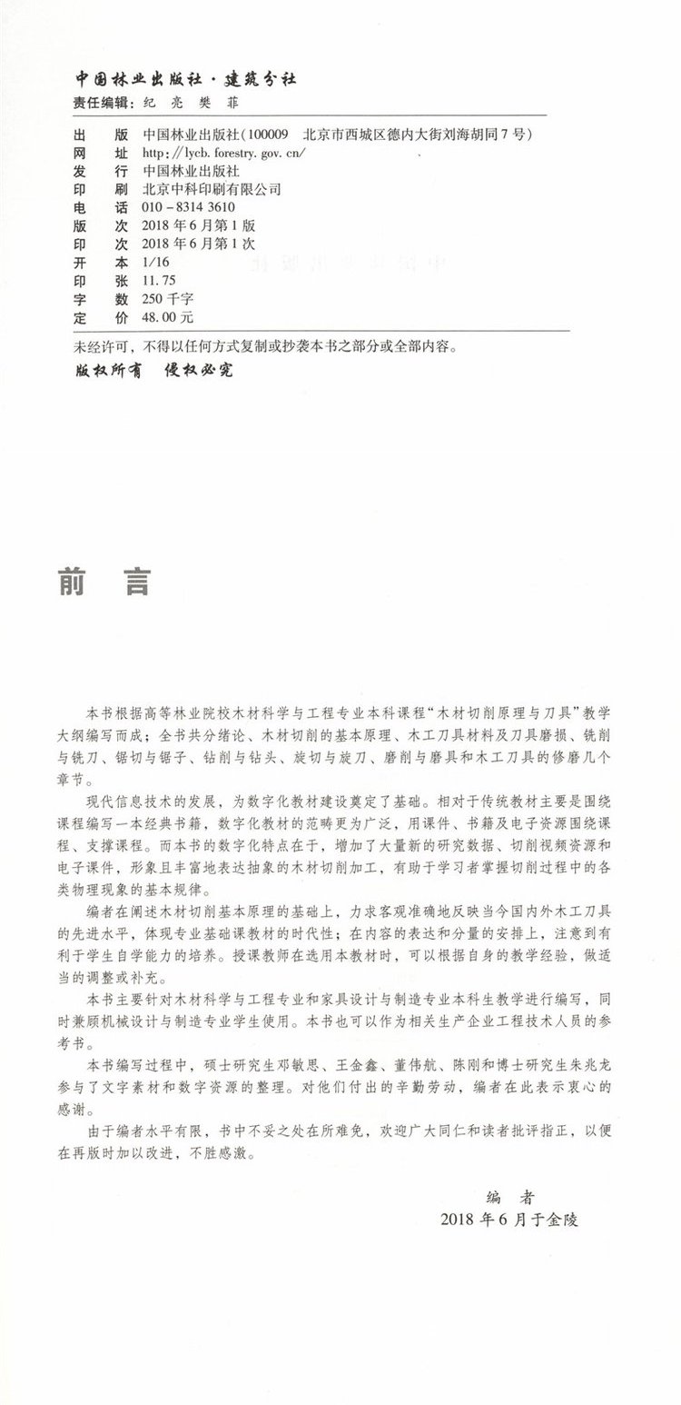 木材切削原理与刀具 9614 郭晓磊 曹平祥 数字化教材建设项目 教材 中国林业出版社 畅销书