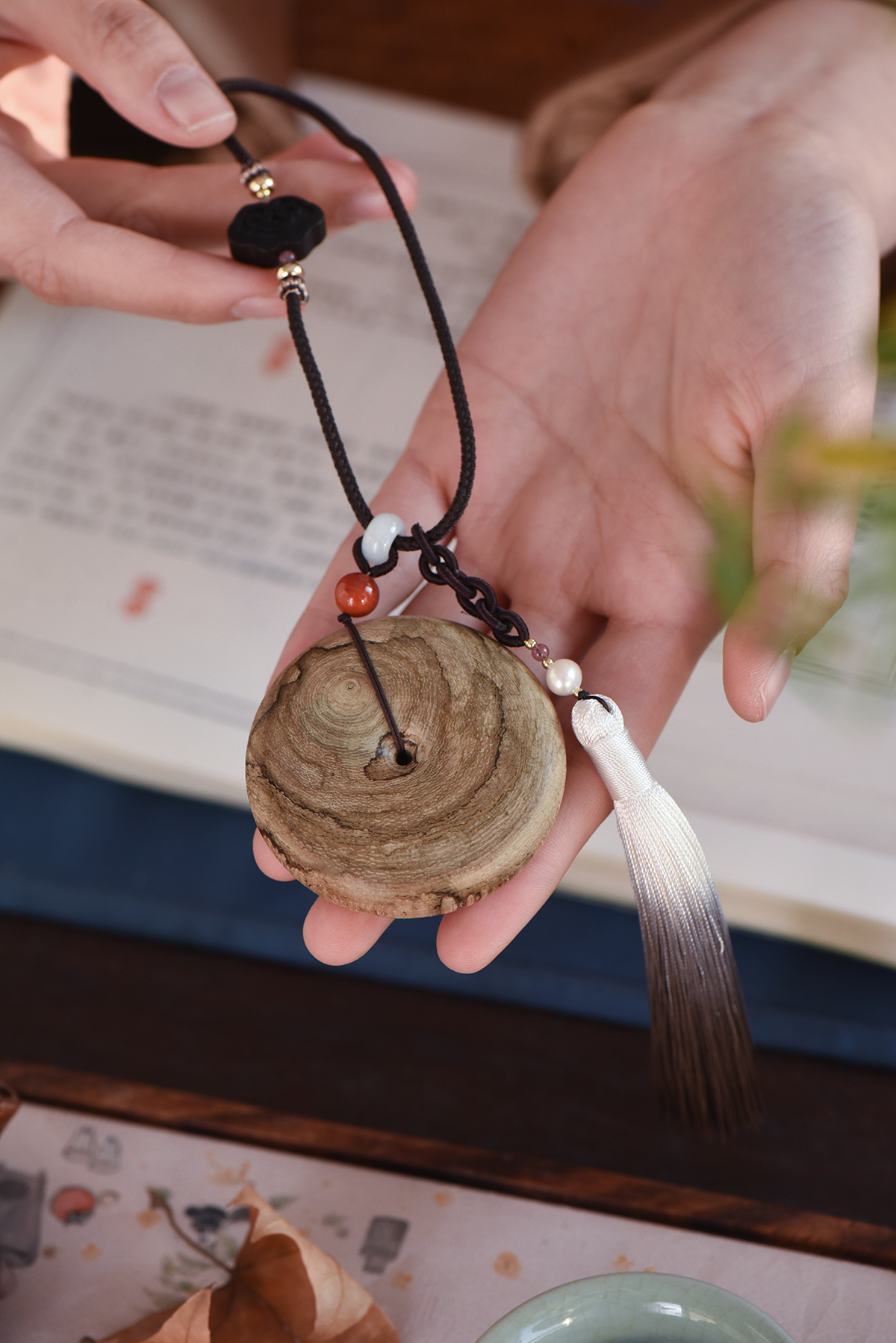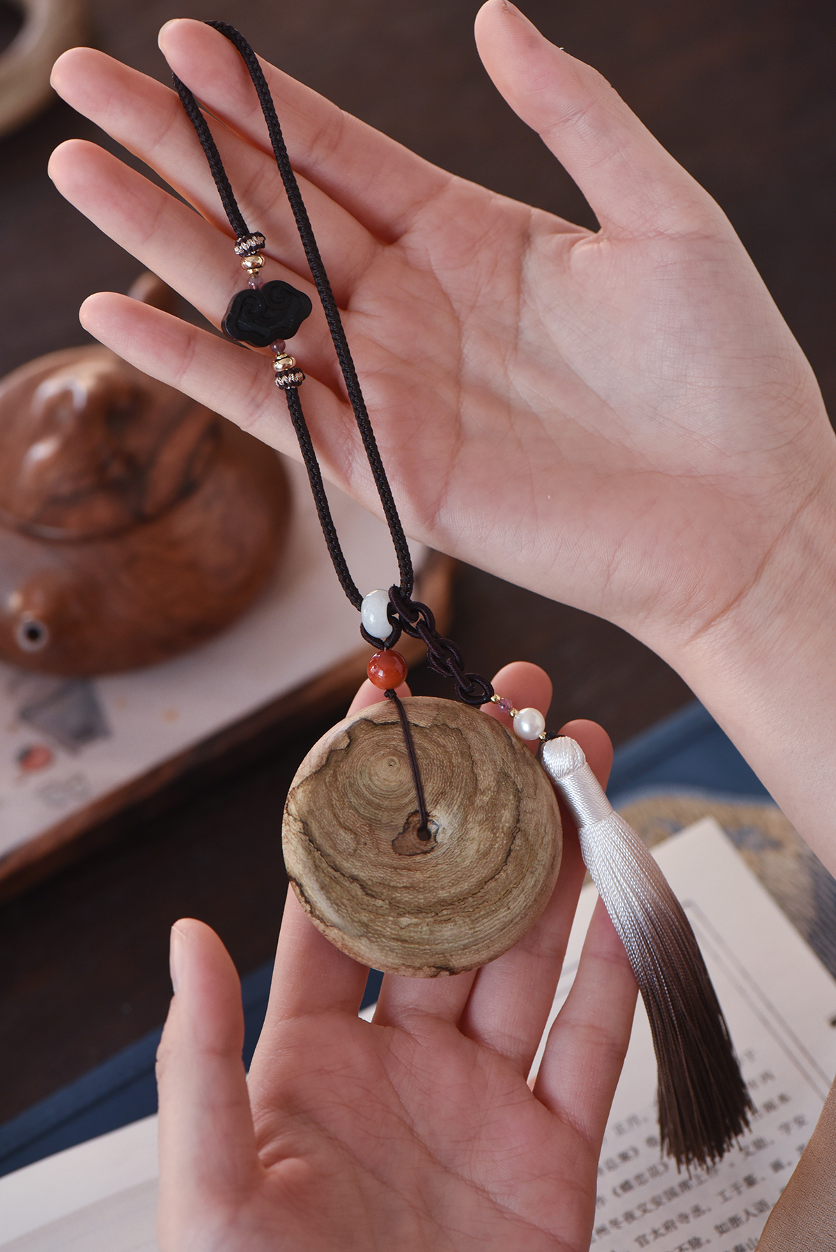 树芯老料 · 天然马泥涝沉香平安扣车挂 12克 SP9358