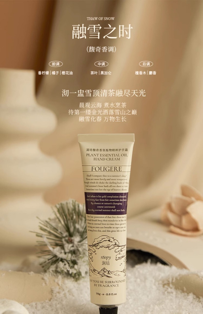 润培roopy馥奇香氛植物精粹护手霜 秋冬保湿滋润淡香融雪之时手霜 心选到家