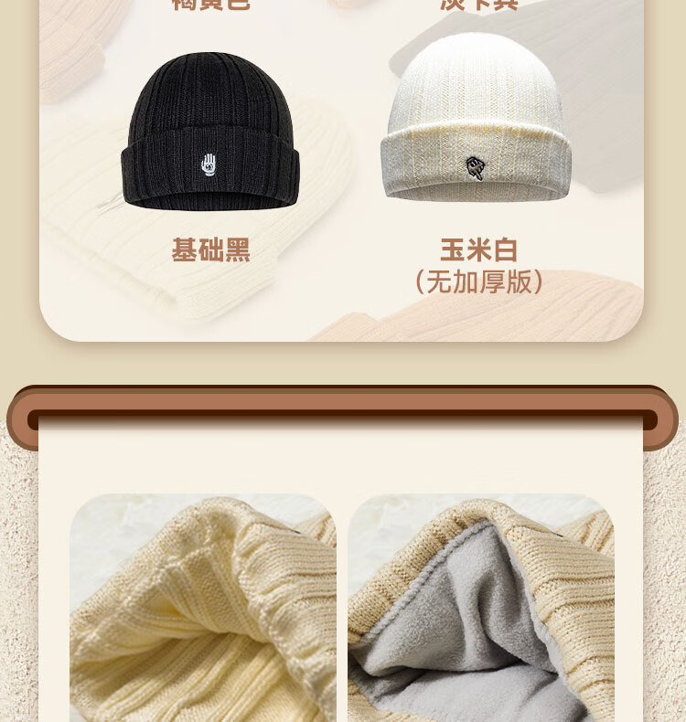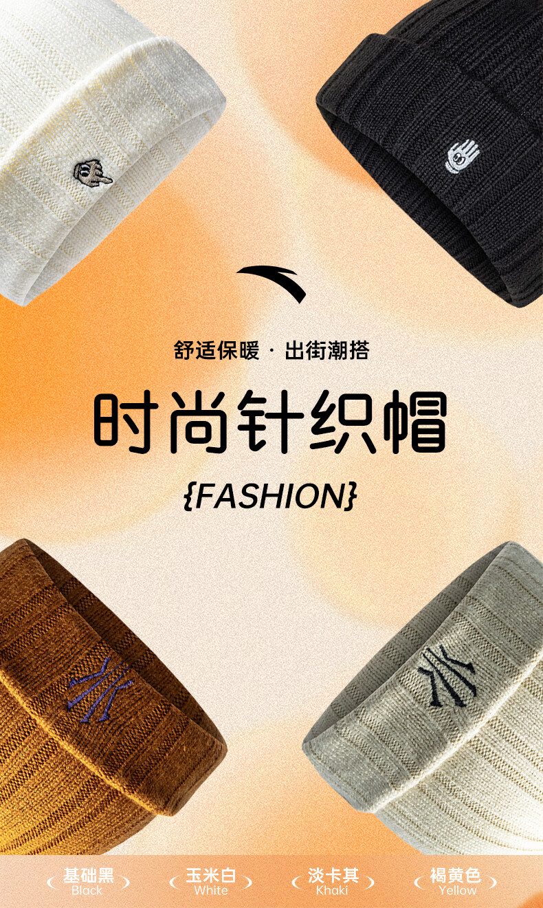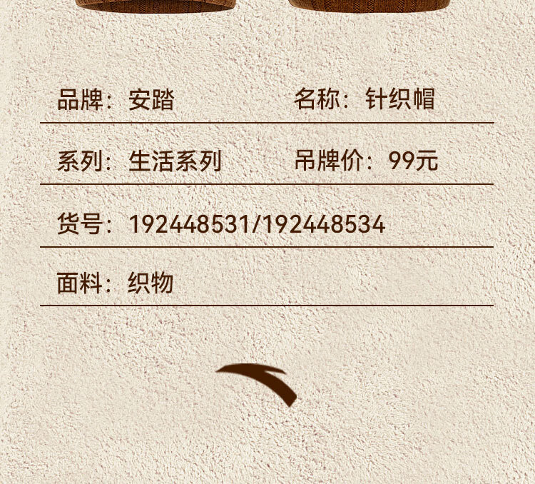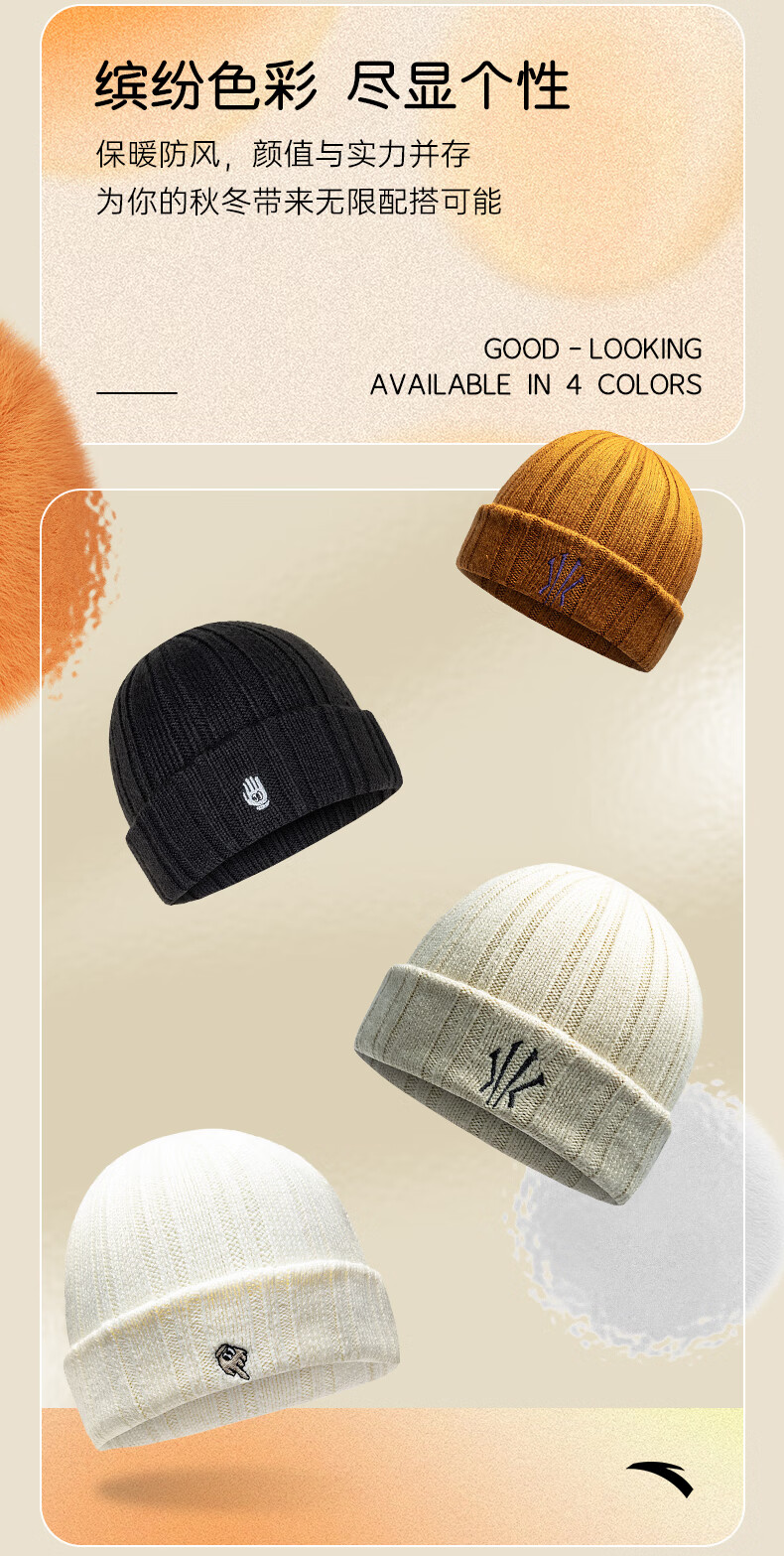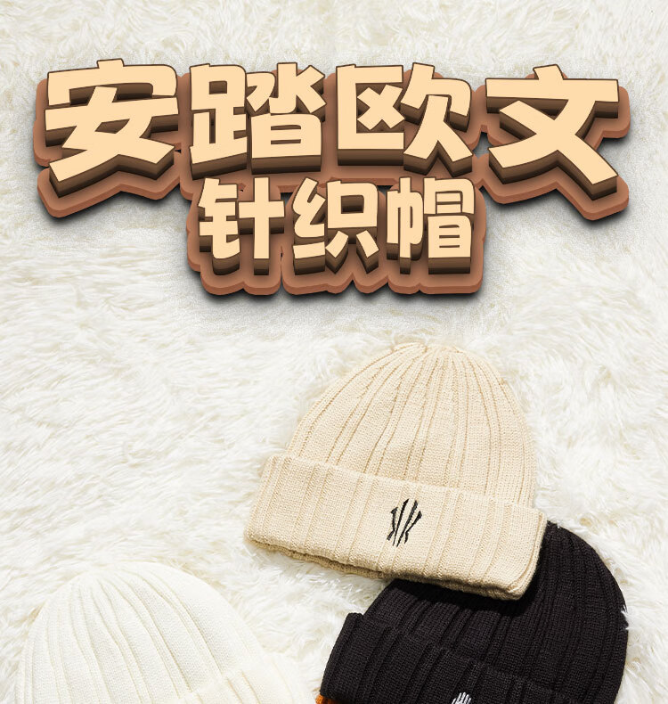 安踏加厚针织帽 男女冬季保暖潮流时尚百搭简约毛线帽192448534 【内里加绒版】192448534