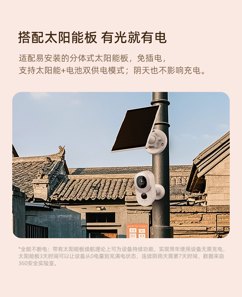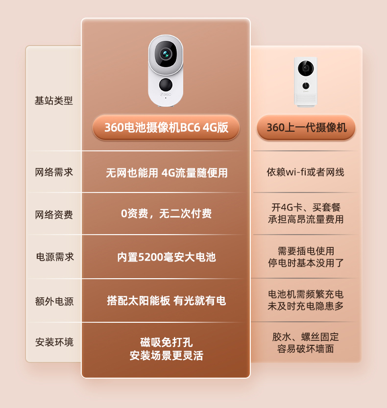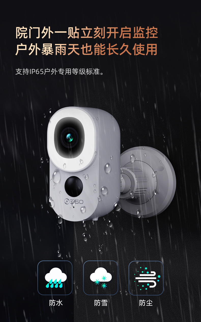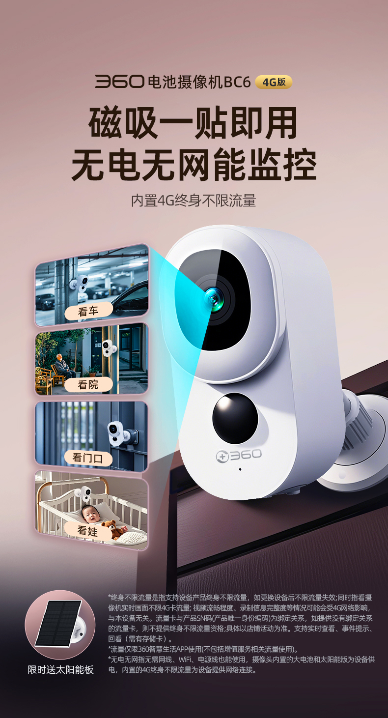 【朋友圈专享】360电池摄像机BC64G版 内置4G终身不限流量 磁吸一贴即用 免打孔 10米智能全彩夜视