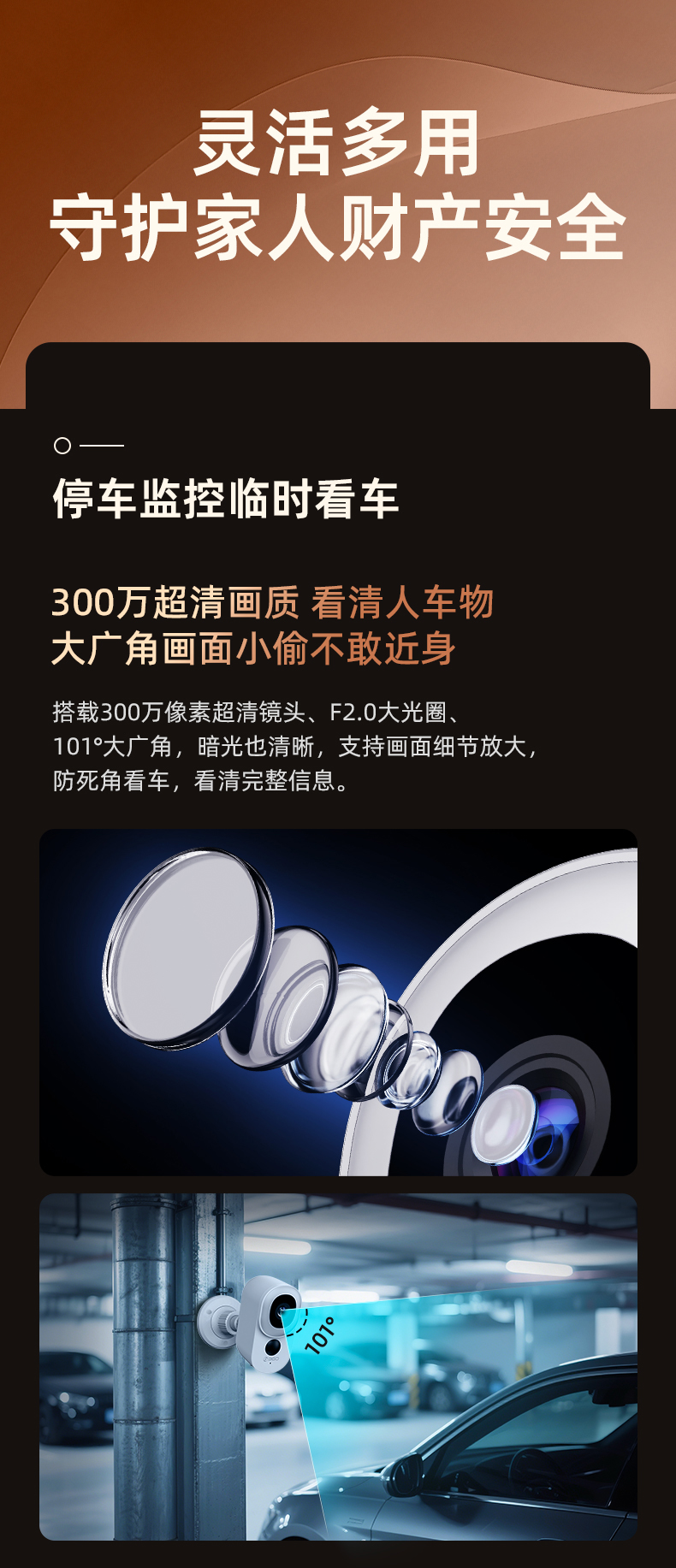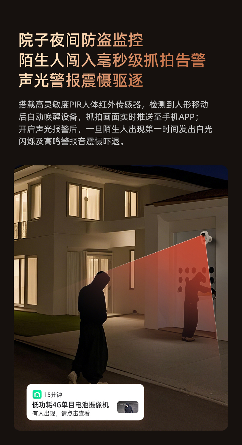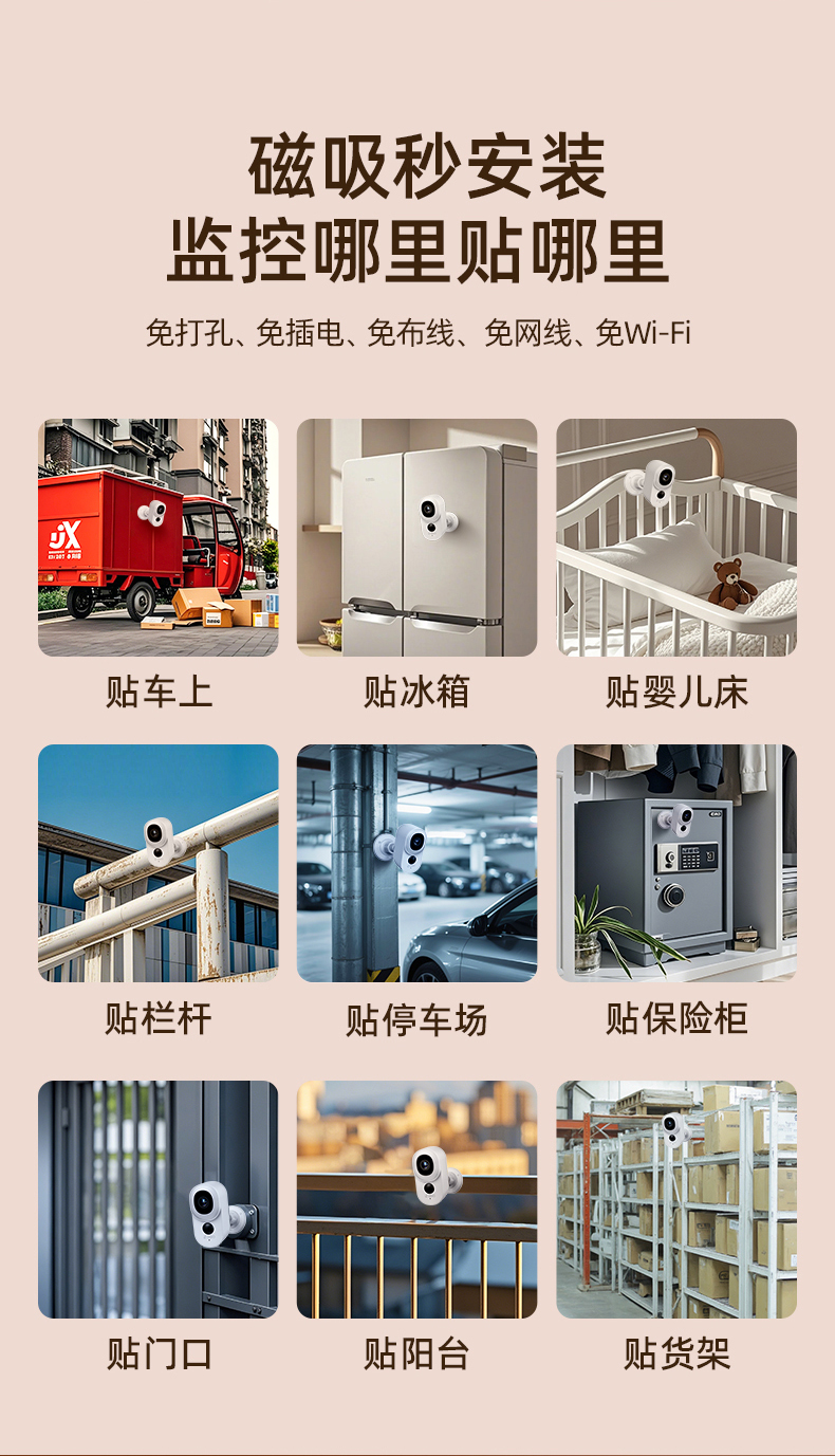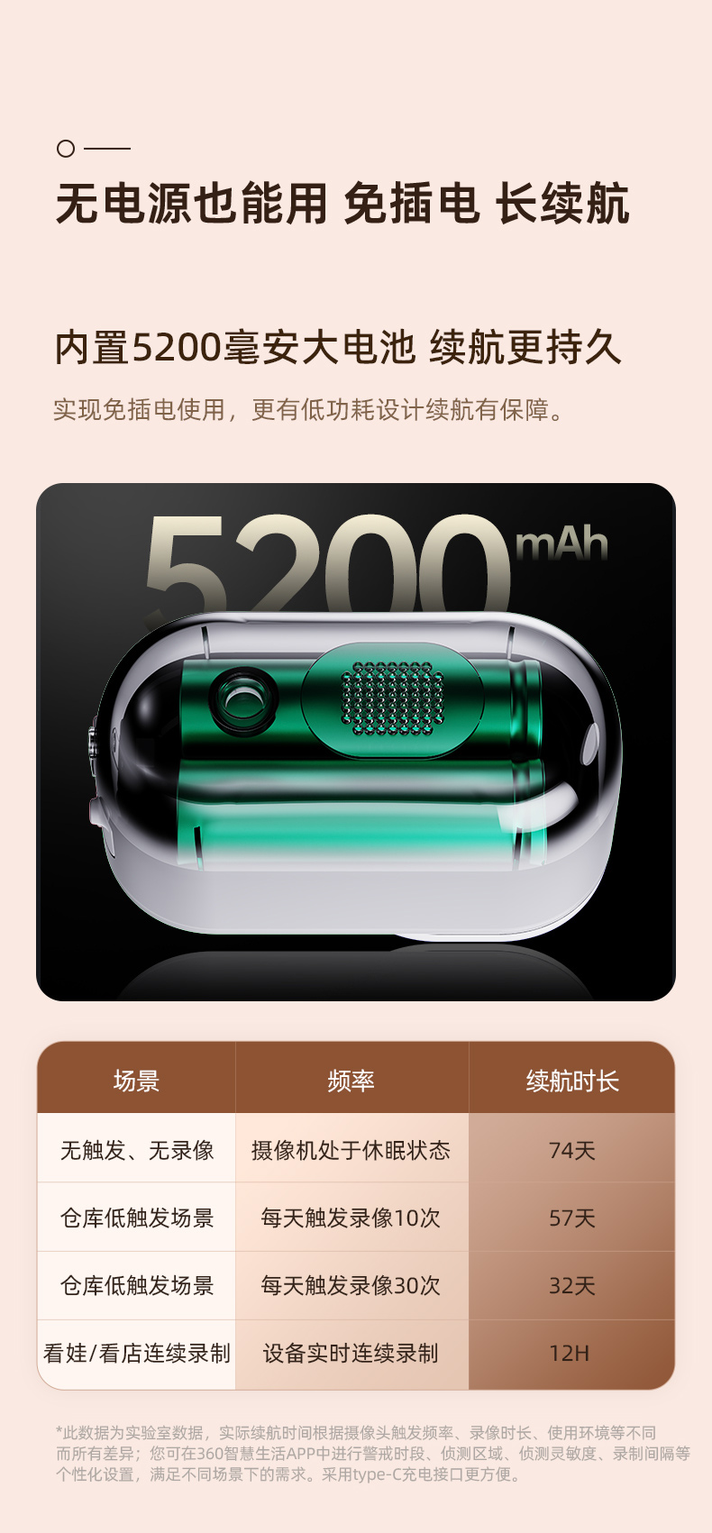 【朋友圈专享】360电池摄像机BC64G版 内置4G终身不限流量 磁吸一贴即用 免打孔 10米智能全彩夜视