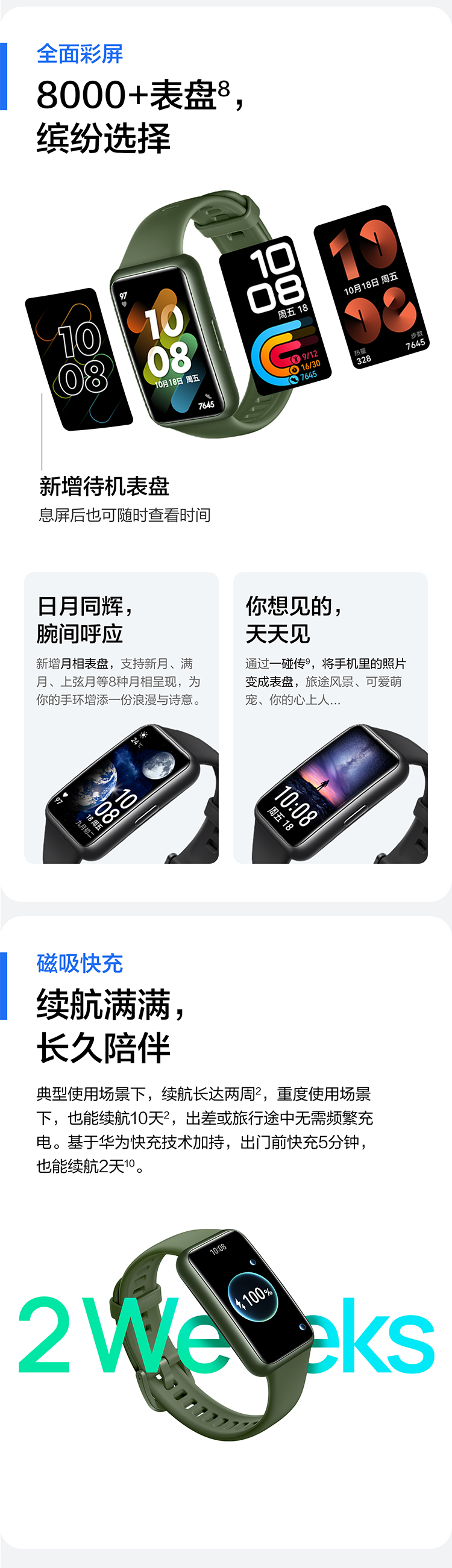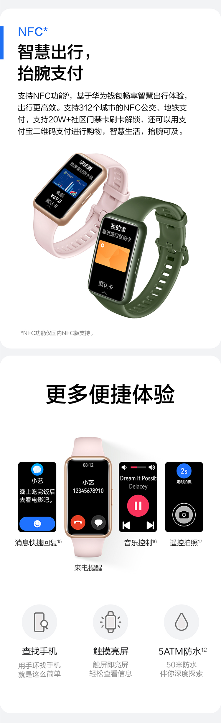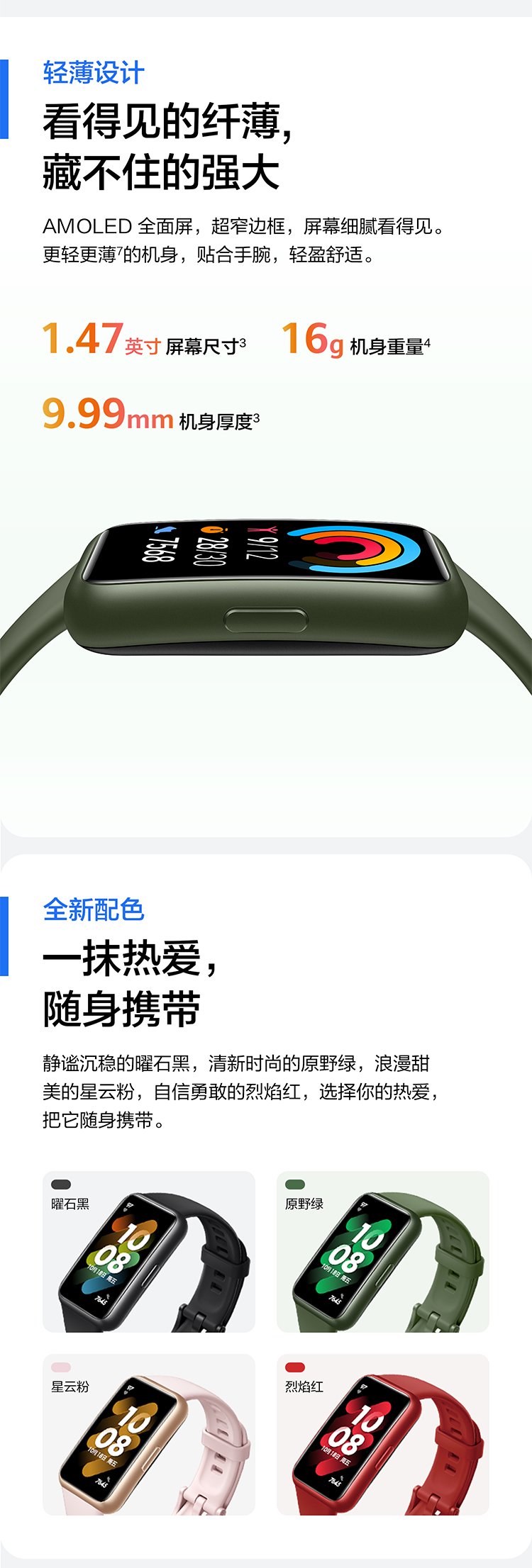 华为(HUAWEI) 手环 9.99毫米轻薄设计 血氧自动检测 两周长续航 智能手环 运动手环 7 NFC版 星云粉