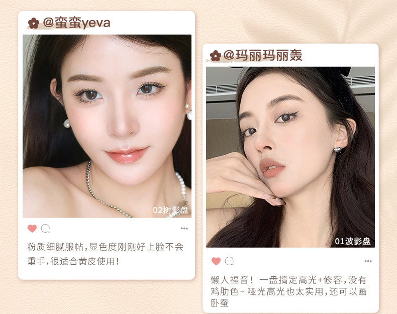新手和暖黄皮闭眼入!!暖调灰棕色阴影自然得像妈生的,上脸完全不会突兀!超适合早八和新手~加大的哑光高光,填平凹陷超牛!!!