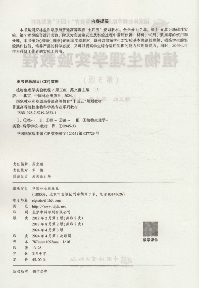 植物生理学实验教程(第3版普通高等院校生物科学类专业系列教材) &2623