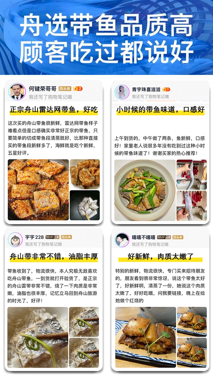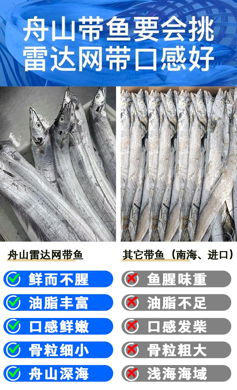 优选丨(舟选®)舟山鲜冻雷达网盘带鱼 精品带鱼肉质鲜嫩