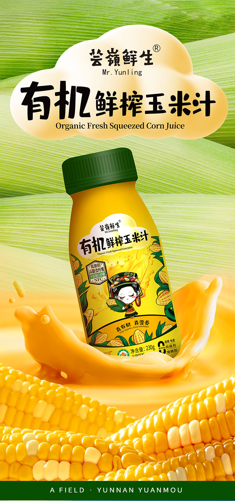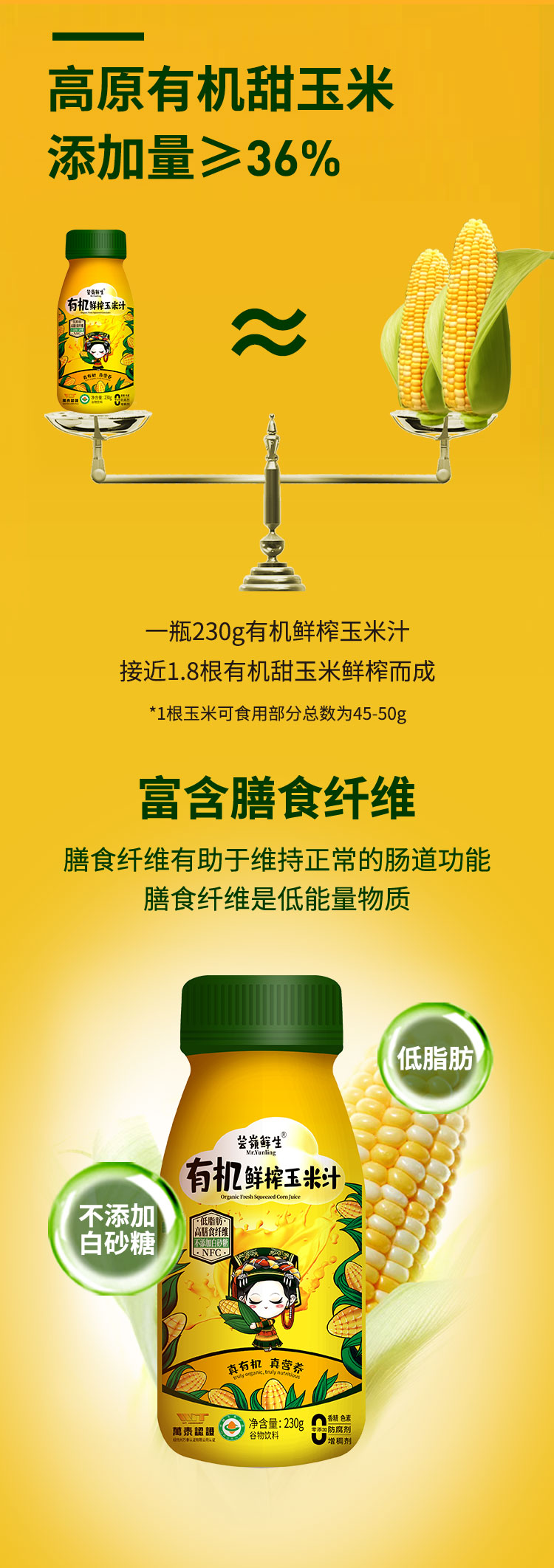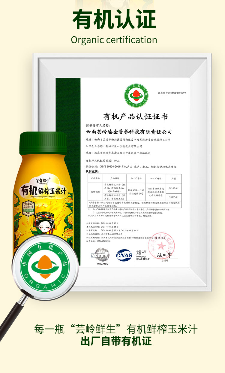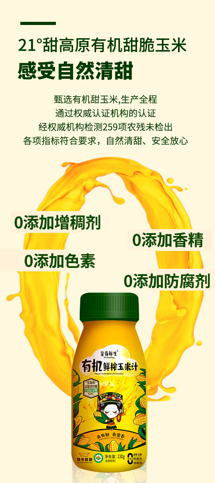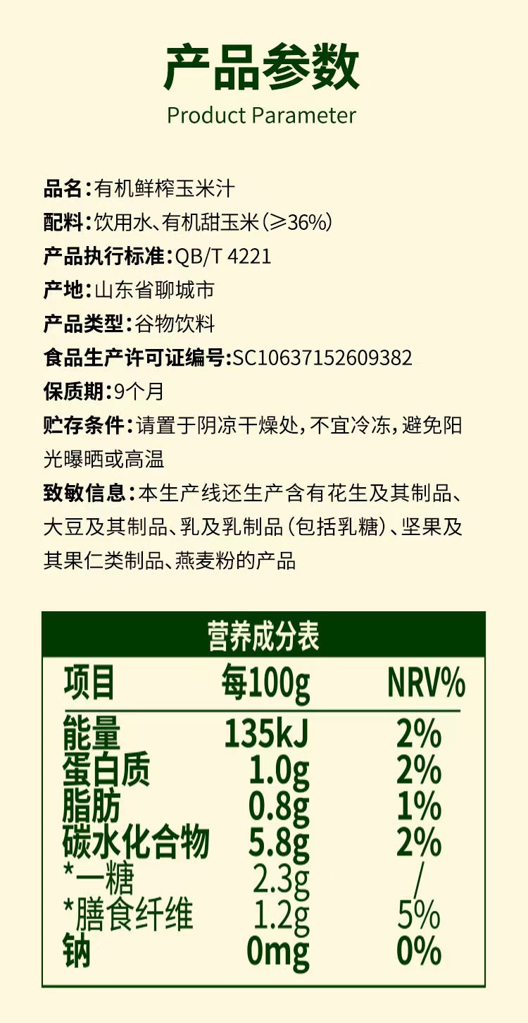 芸岭高原有机鲜榨玉米汁(0添加0糖)230g*10瓶