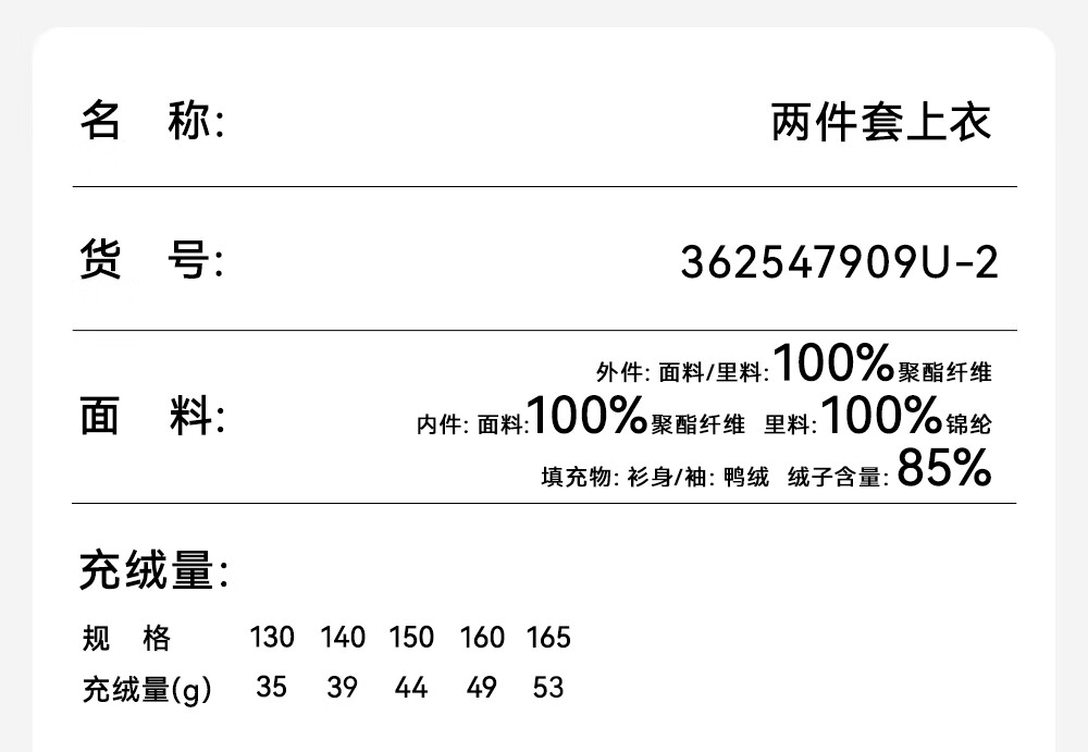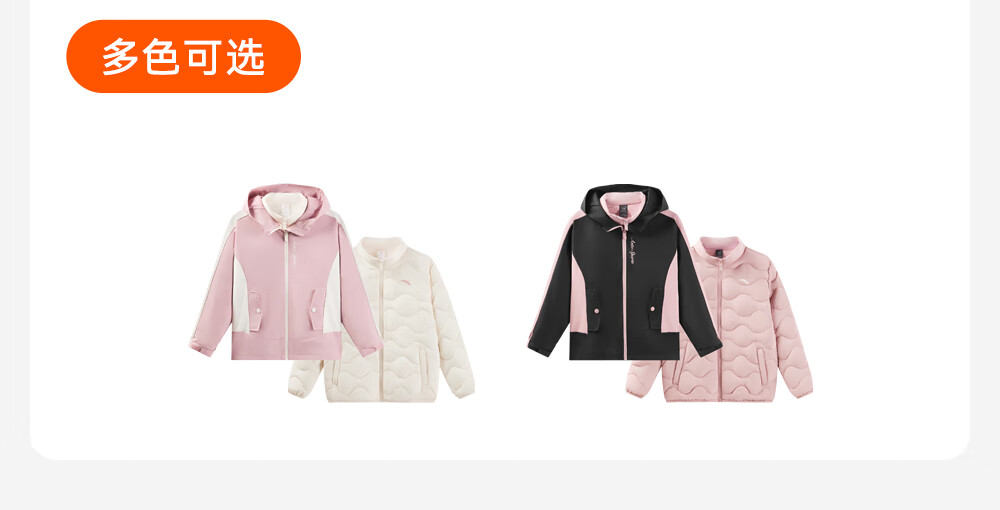 超级安踏四防儿童运动羽绒两件套女童秋冬连帽保暖夹克外套大童362547909U
