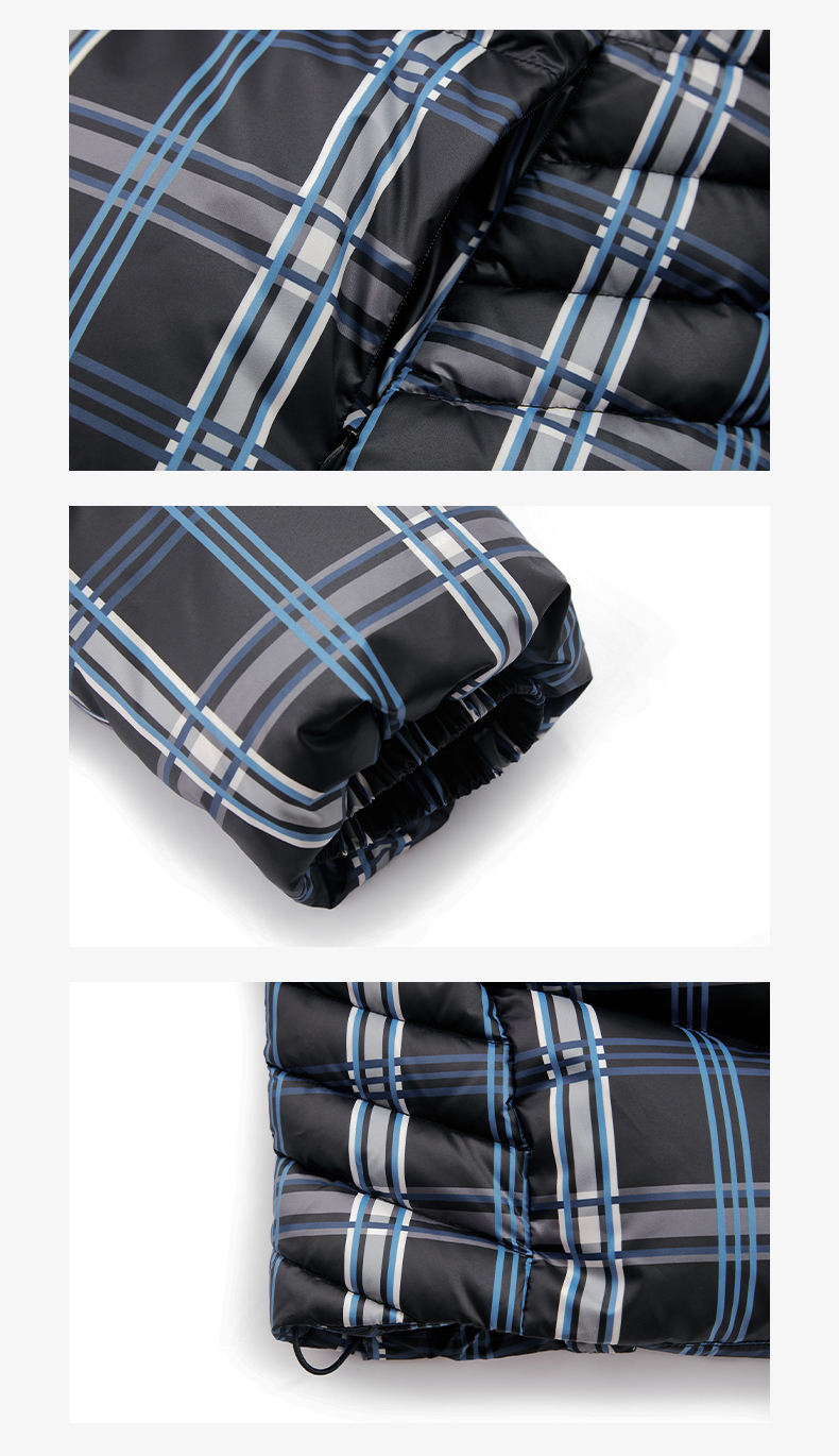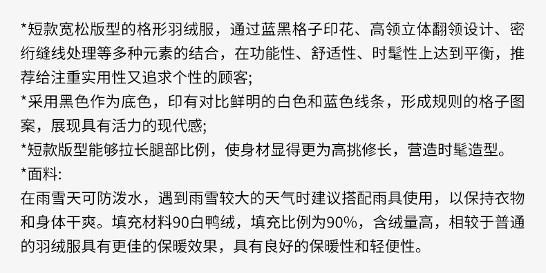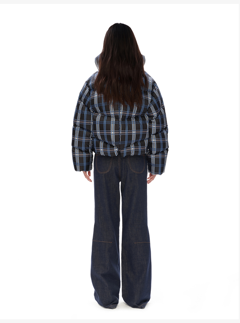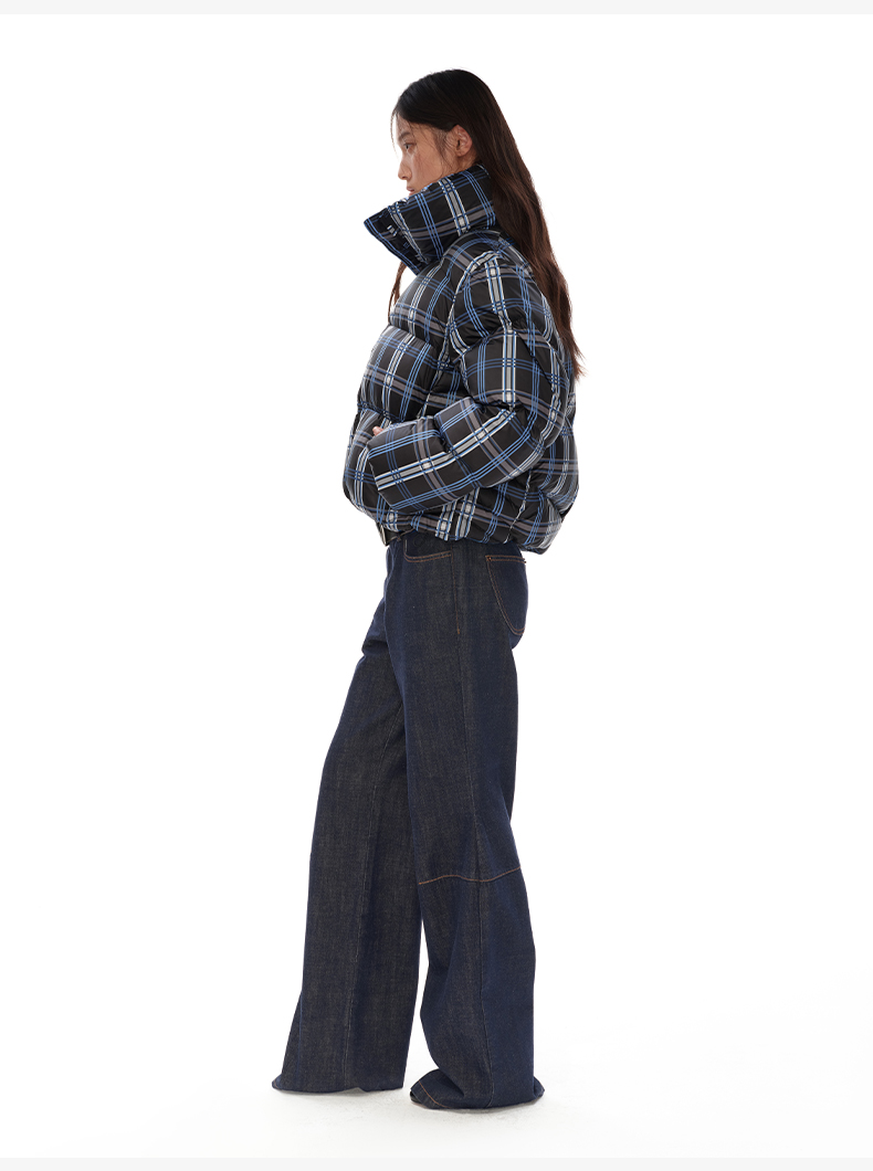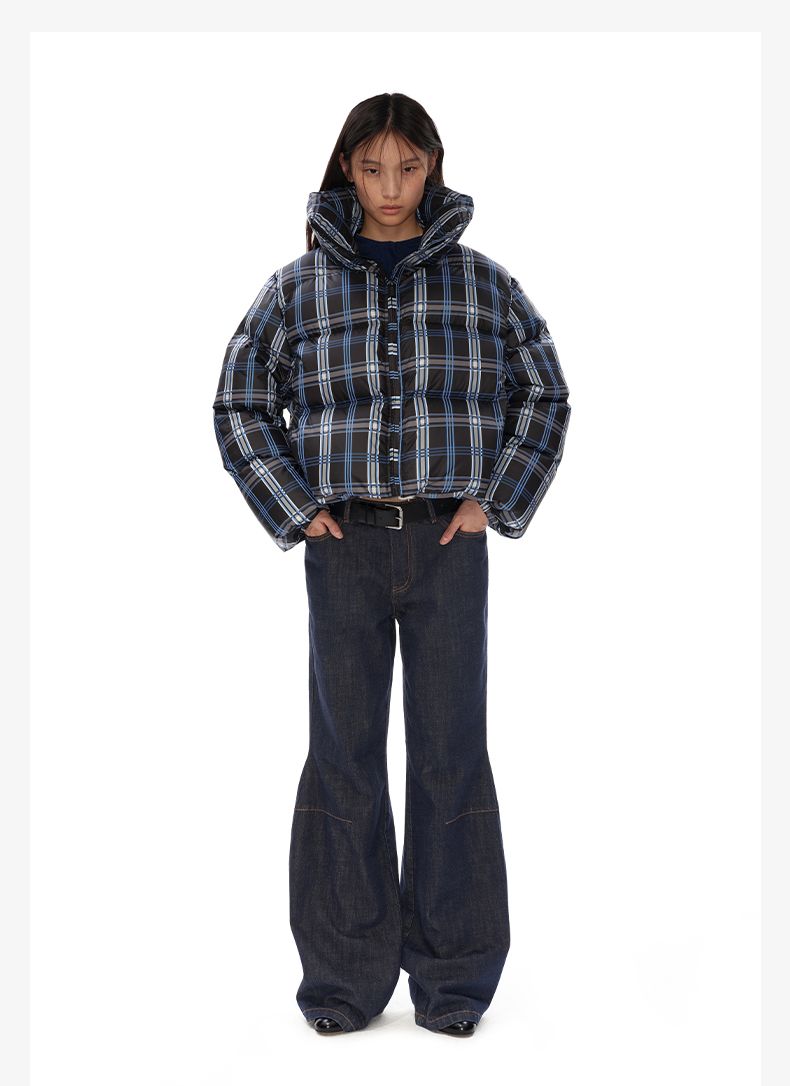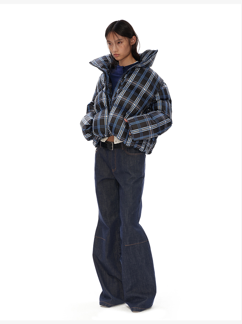 NUTH 90白鸭绒保暖格纹宽松短款格子立领羽绒服拉链外套女