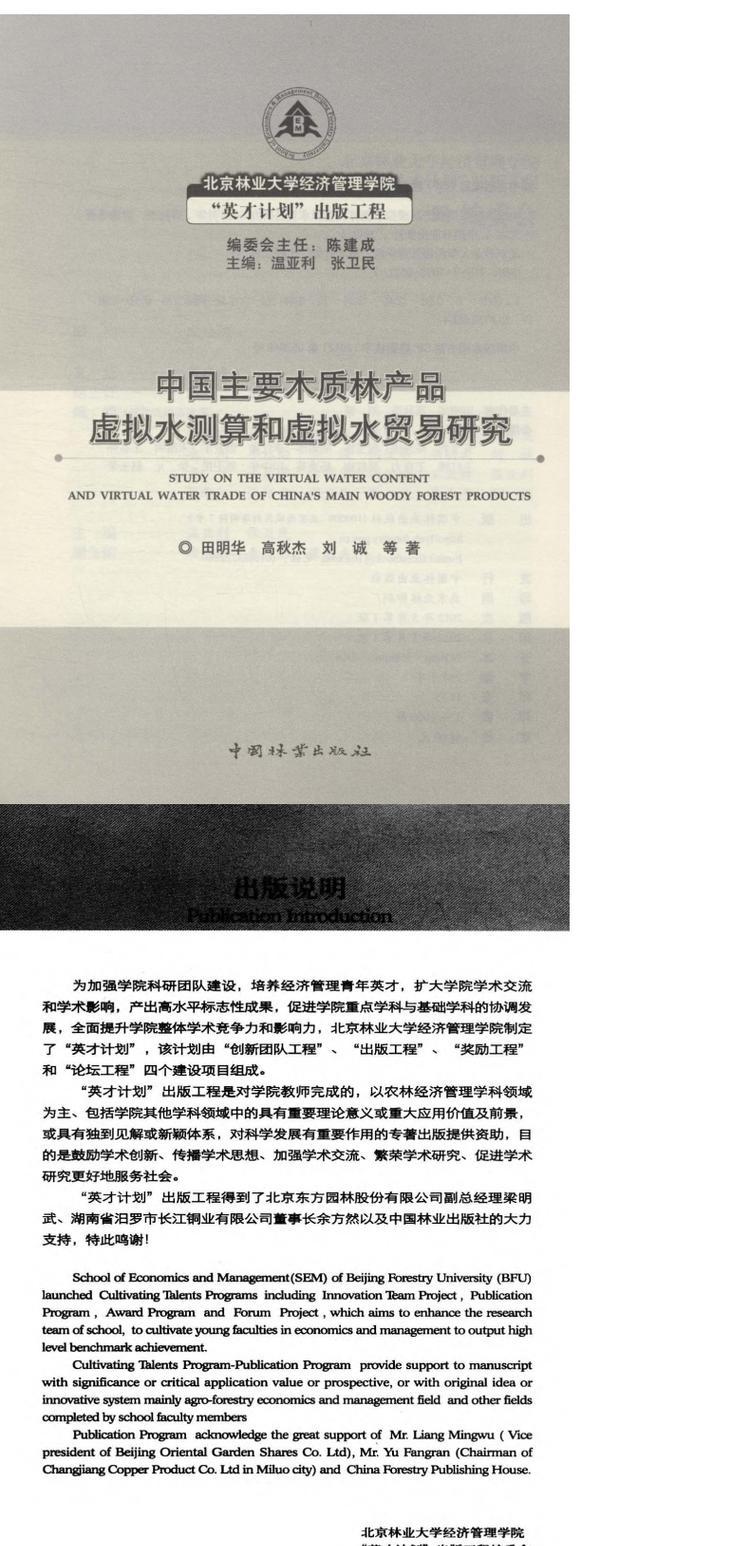 中国主要木质林产品虚拟水测算和虚拟水贸易研究 6521 中国林业出版社