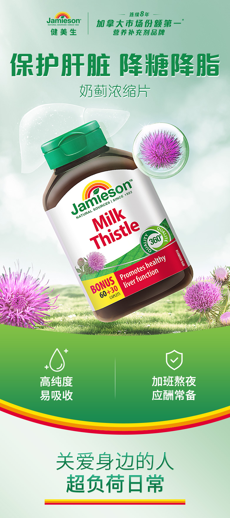 【跨境】Jamieson健美生奶蓟浓缩片90片水飞蓟加班熬夜应酬常备