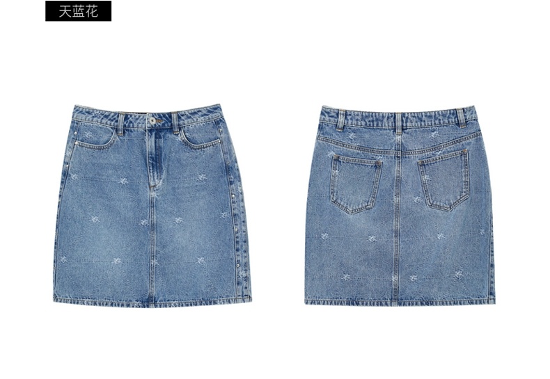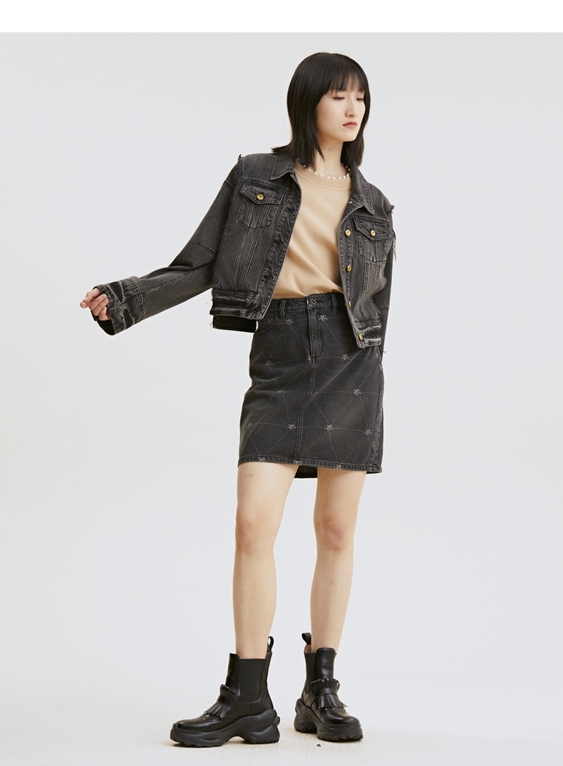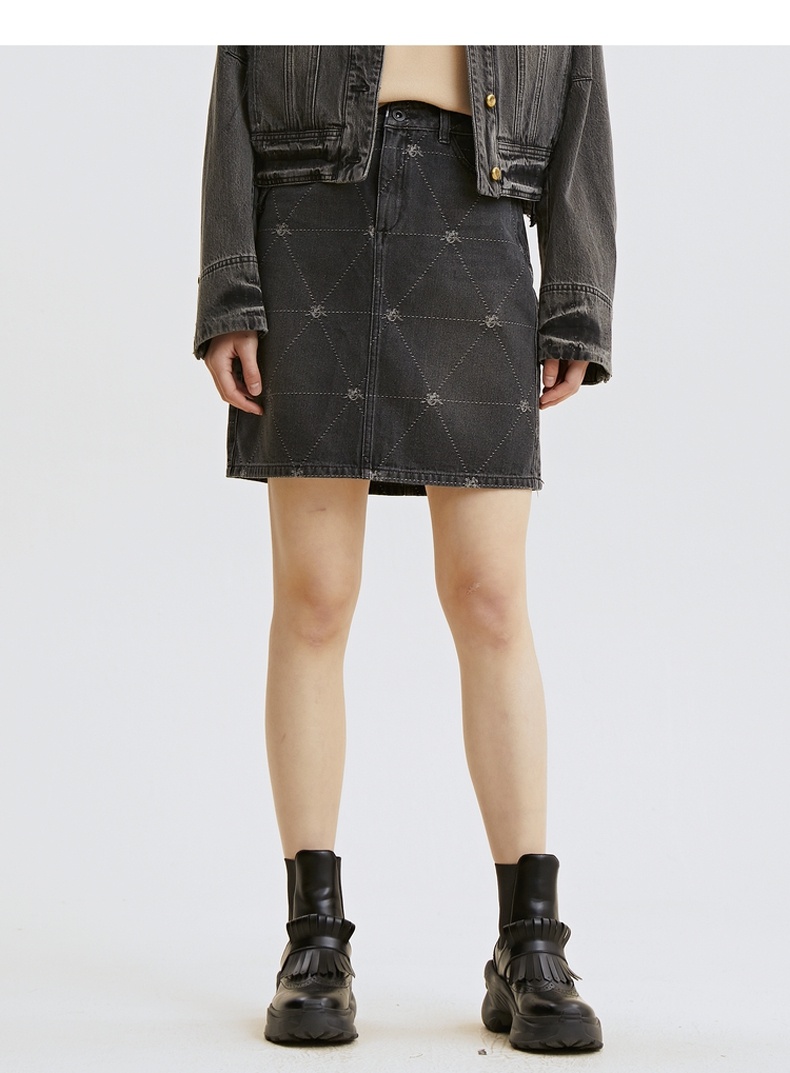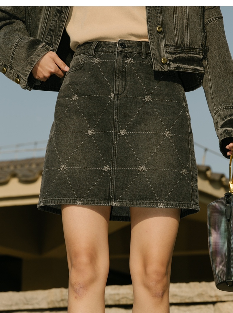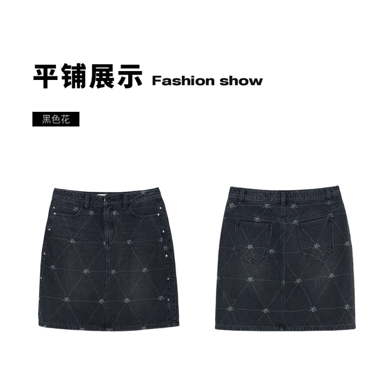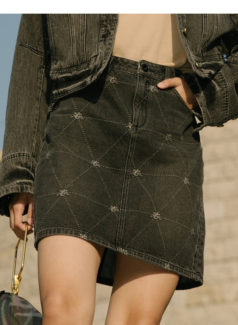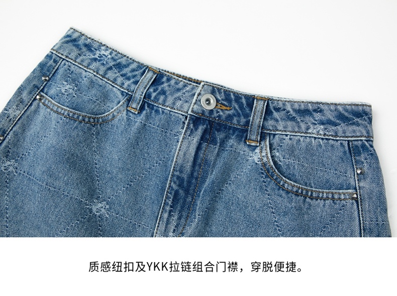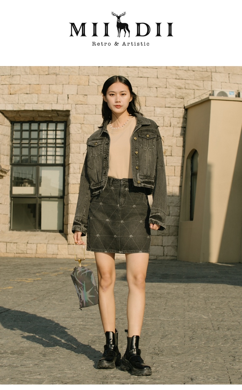 谜底牛仔裙2021秋季新款复古织花H型包臀短牛仔半身裙213MB1672