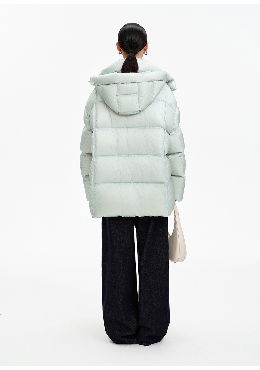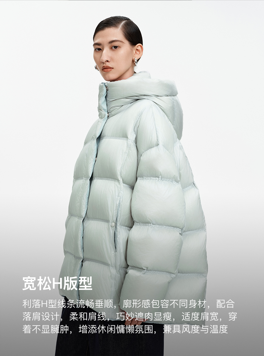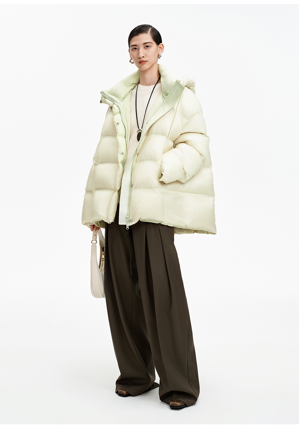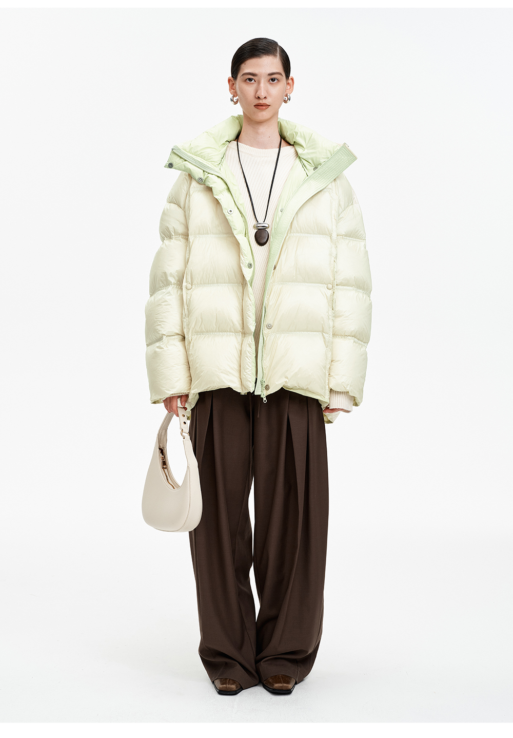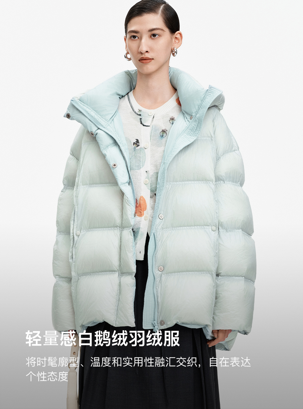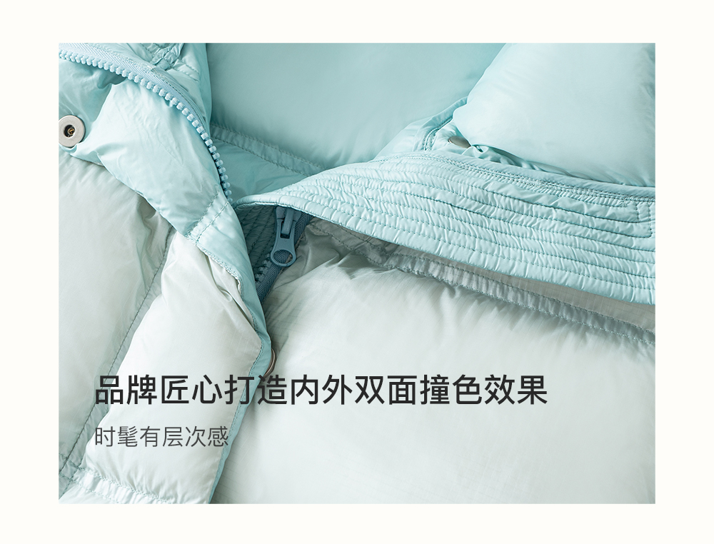 SELFWHO90白鹅绒撞色羽绒服女2025冬新款保暖防风中长款宽松外套