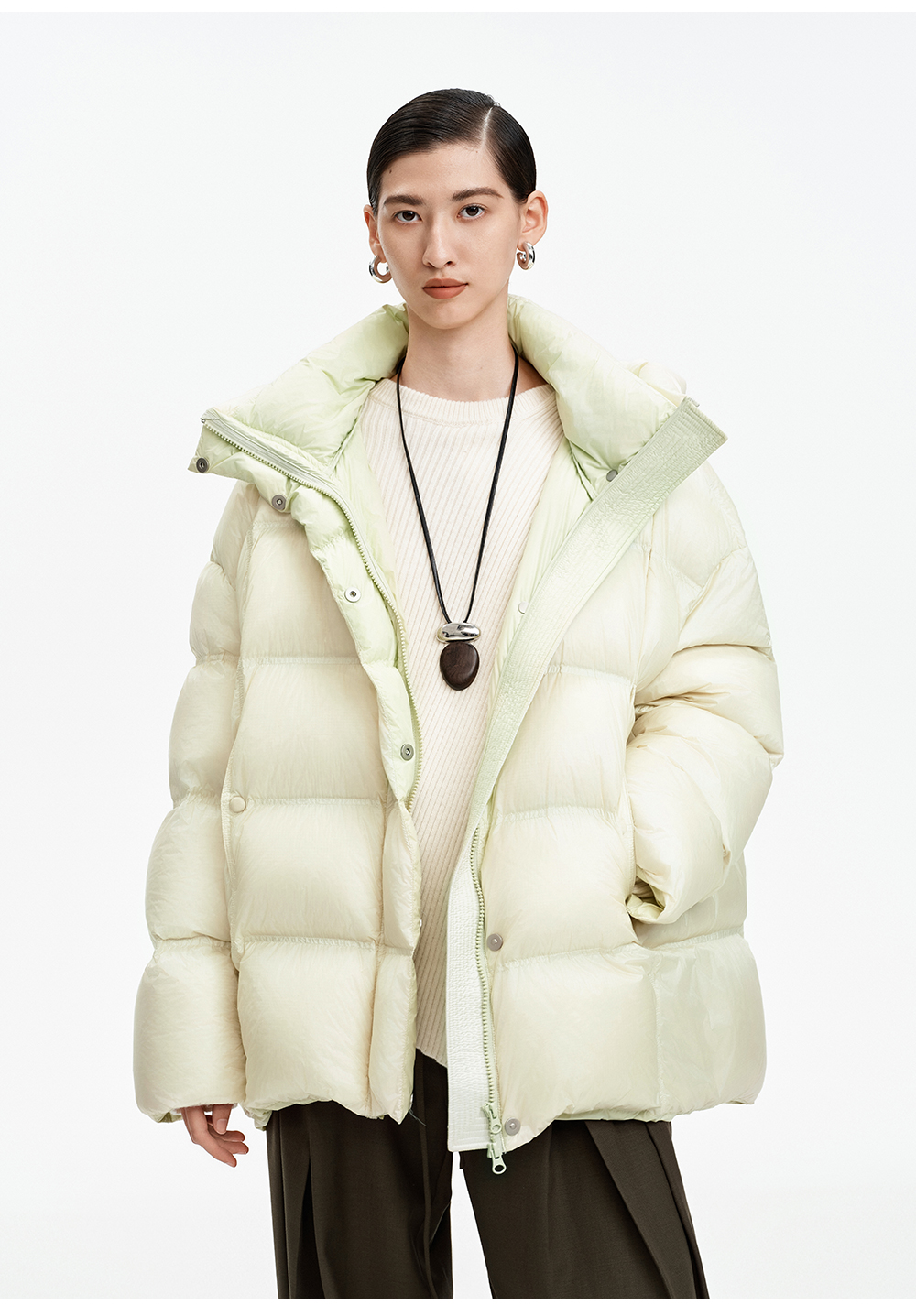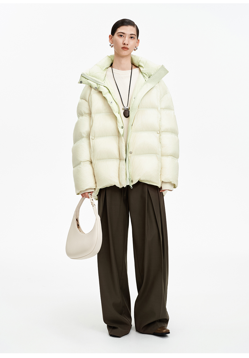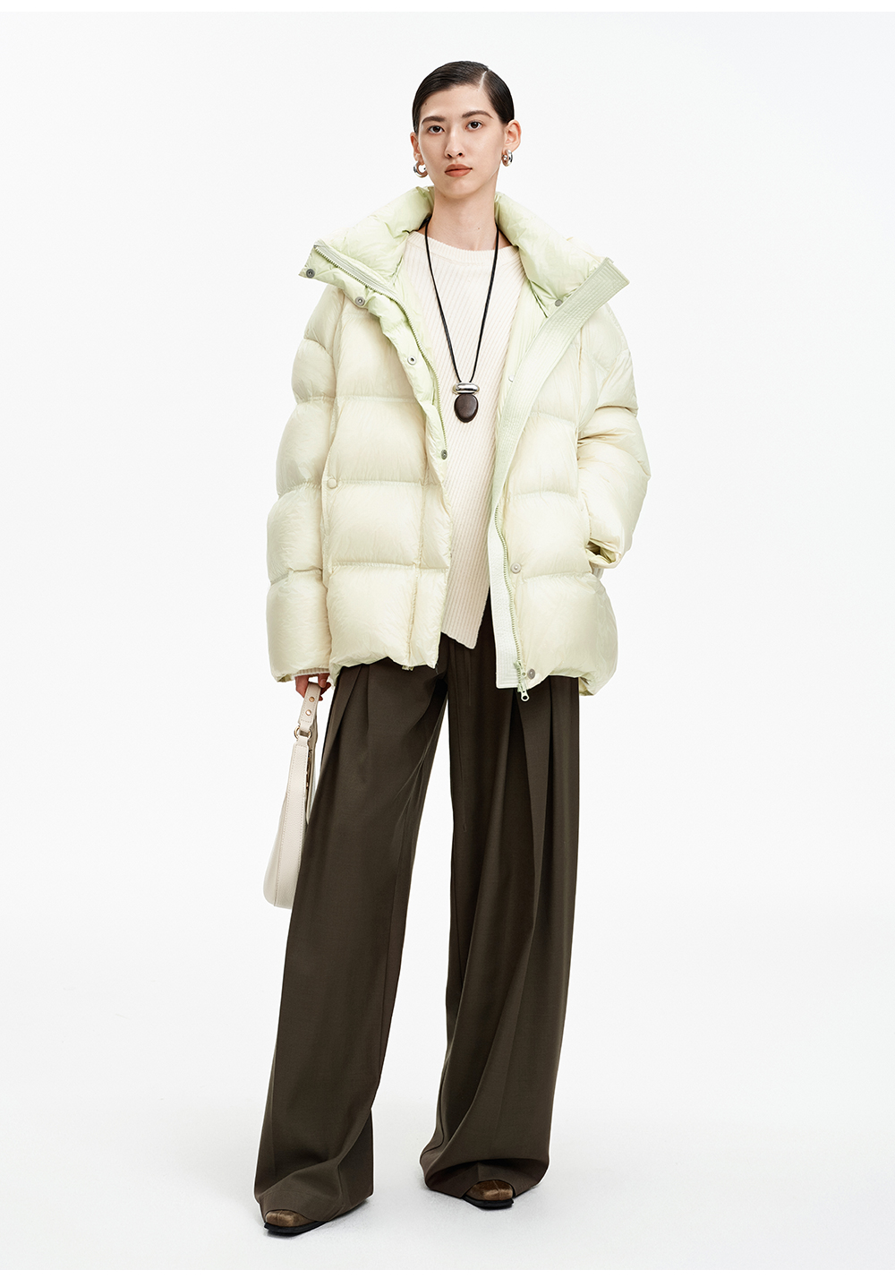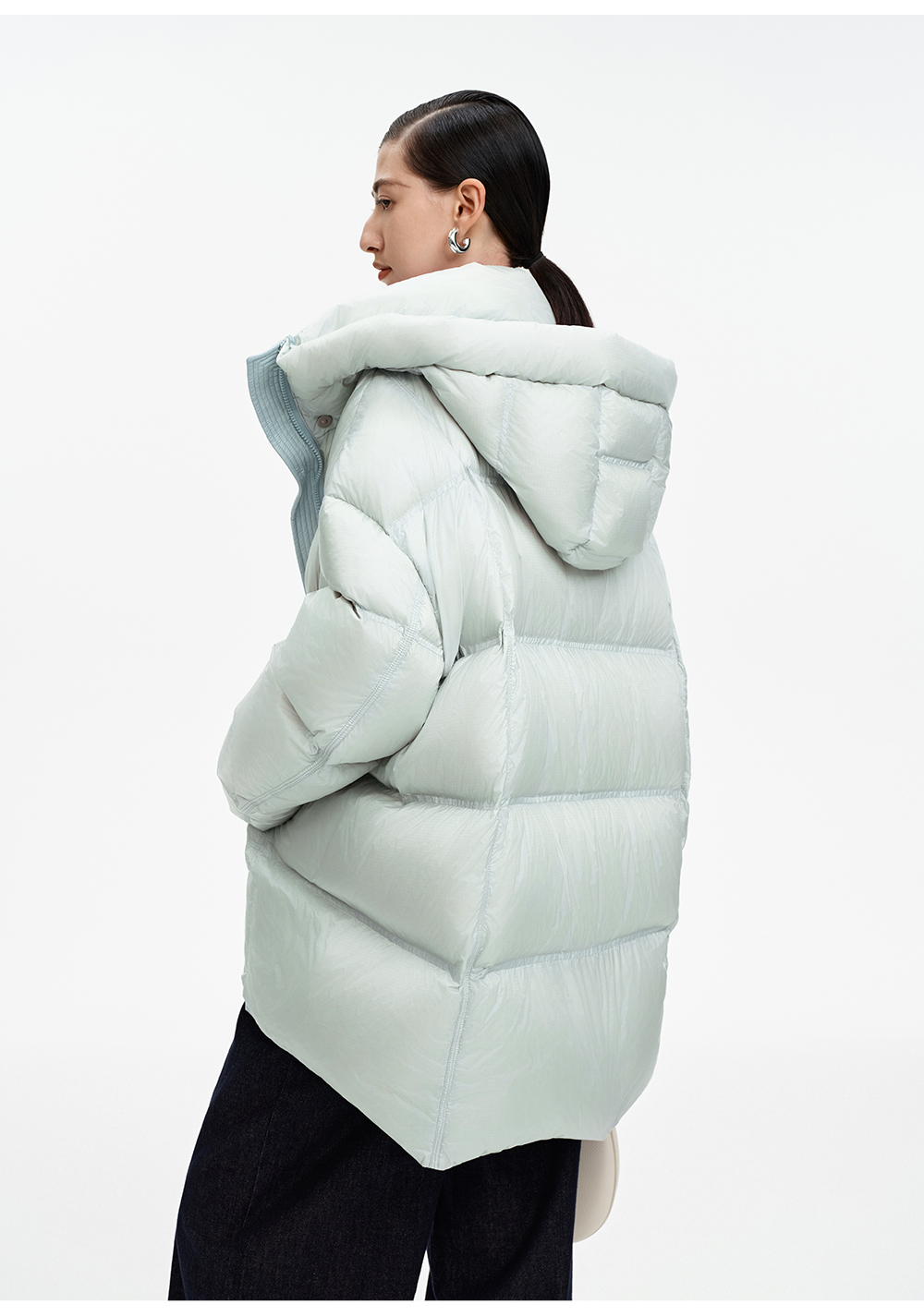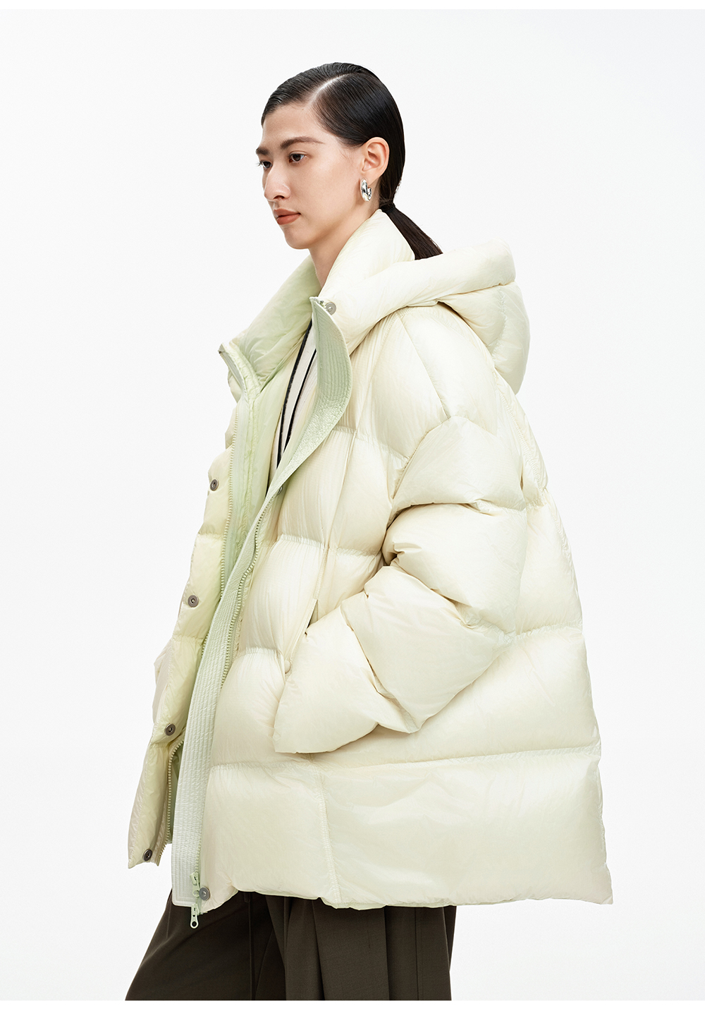 SELFWHO90白鹅绒撞色羽绒服女2025冬新款保暖防风中长款宽松外套