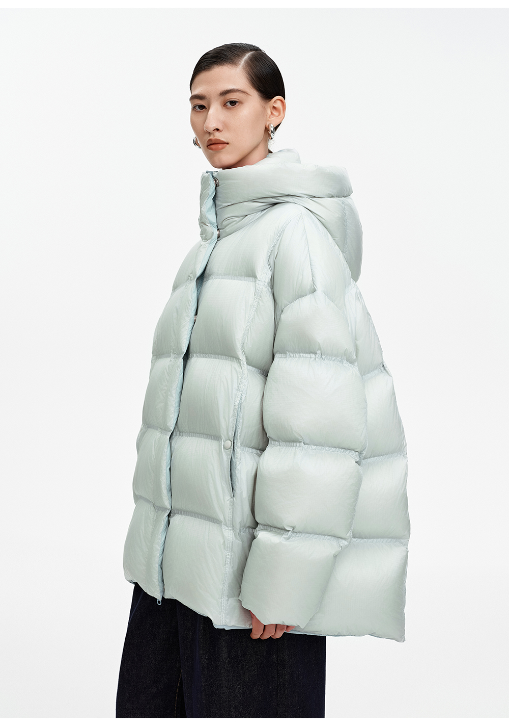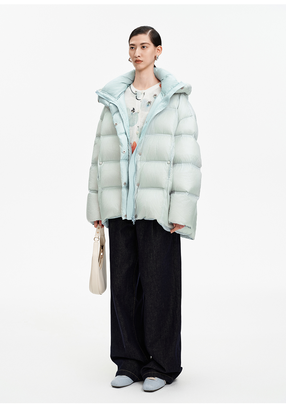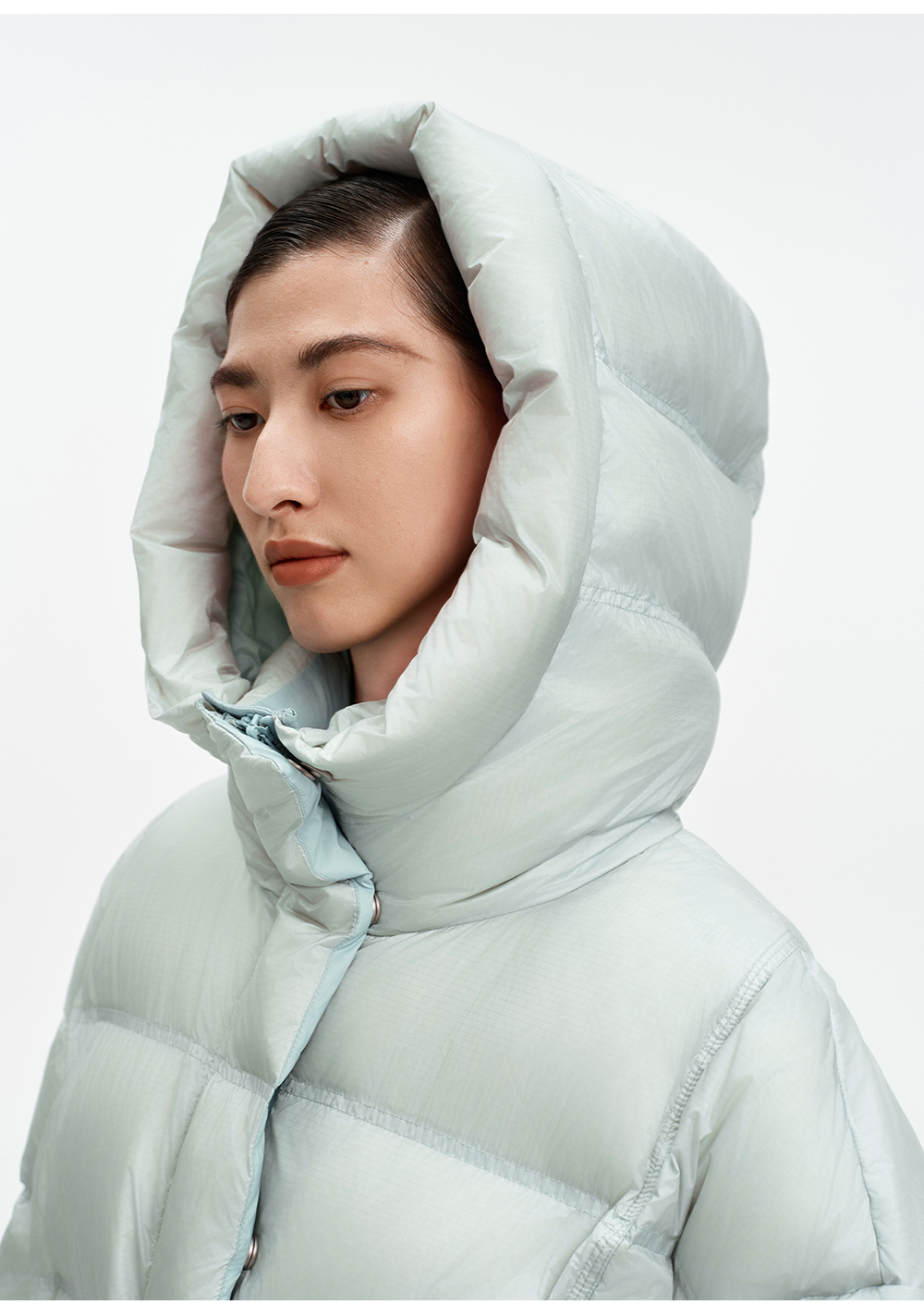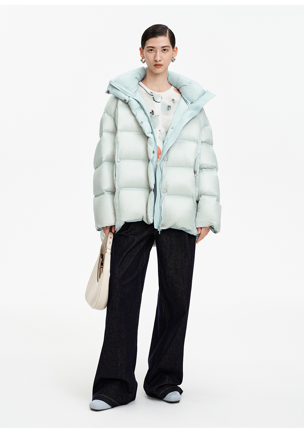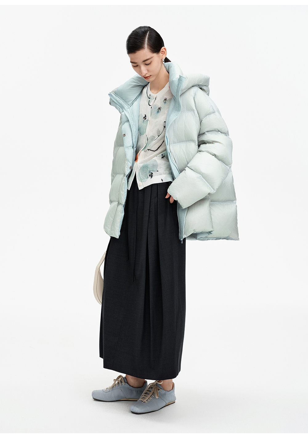 SELFWHO90白鹅绒撞色羽绒服女2025冬新款保暖防风中长款宽松外套