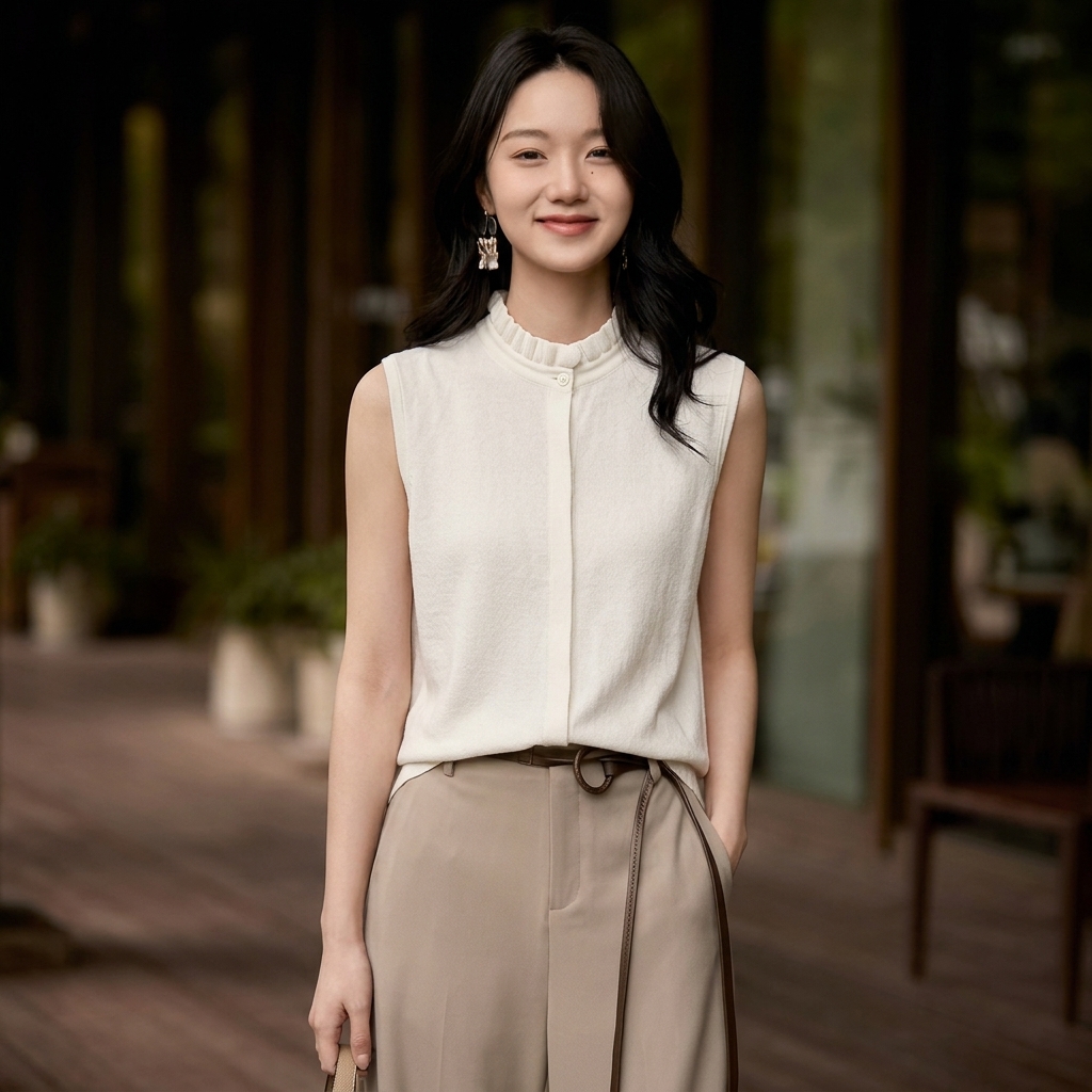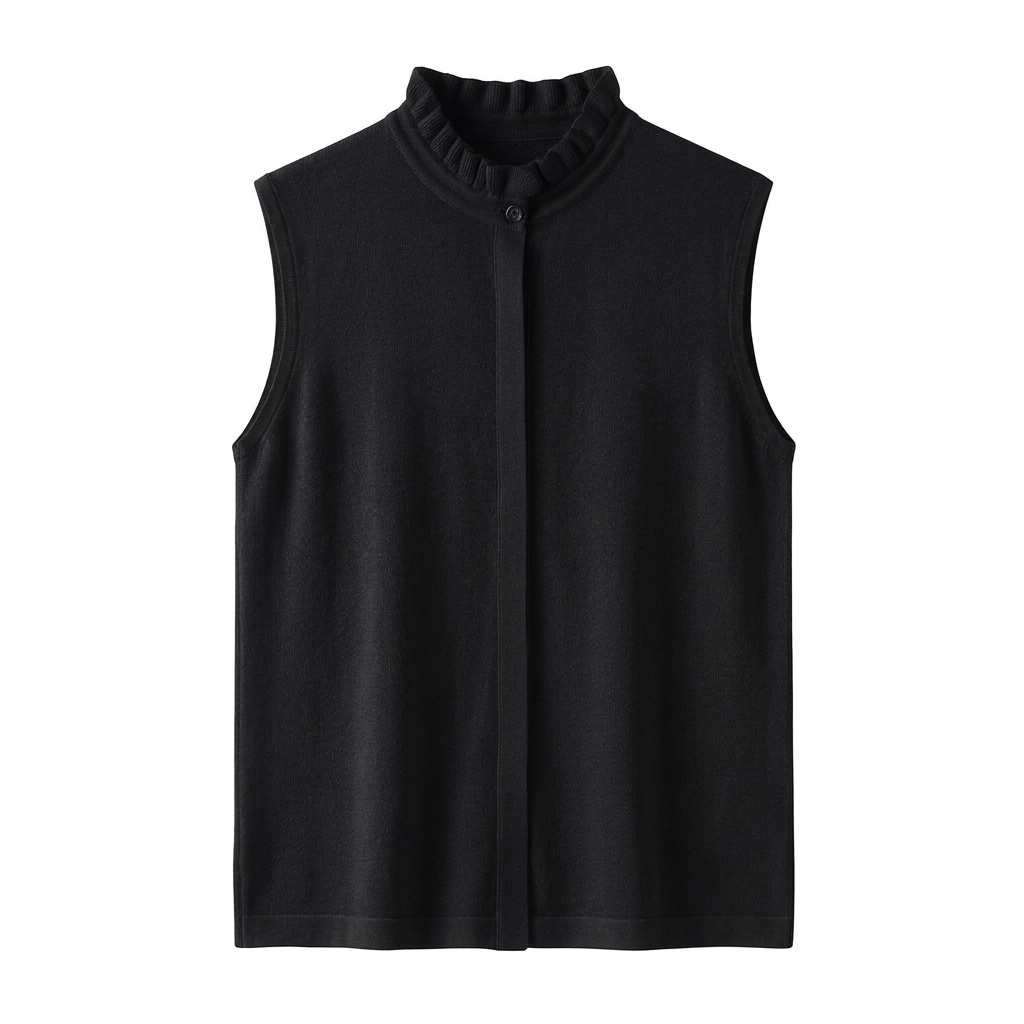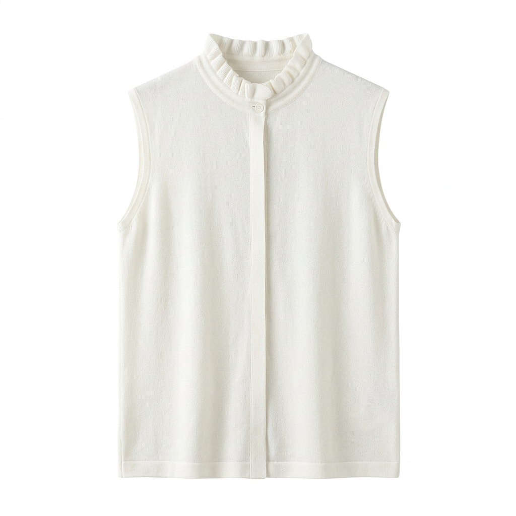 晚风盈袖~木耳领无袖6A级白厂丝 羊 毛优雅花边领马甲YM260568
