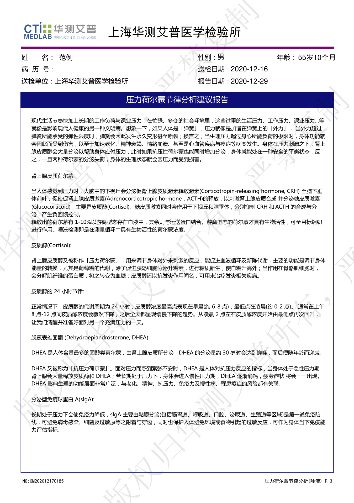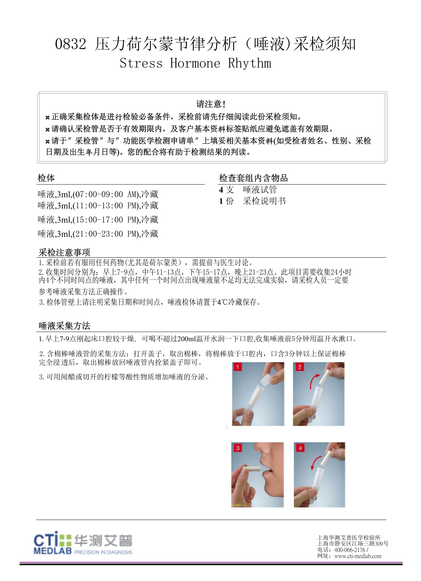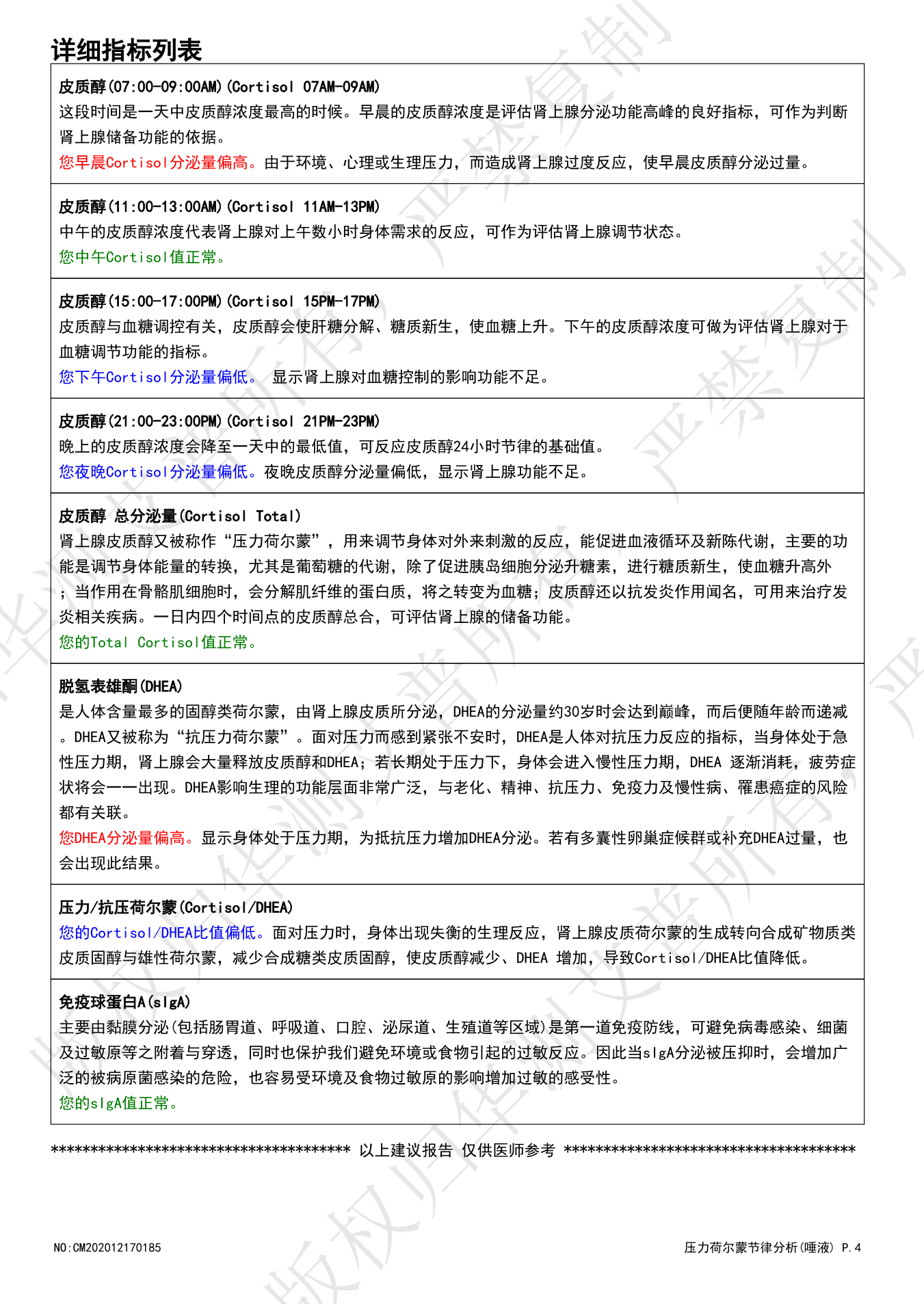 【检测】压力荷尔蒙节律分析(唾液)华测0832