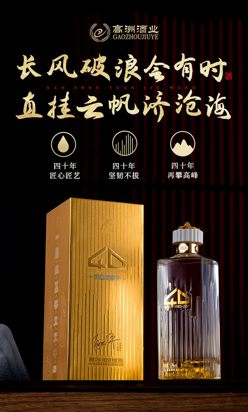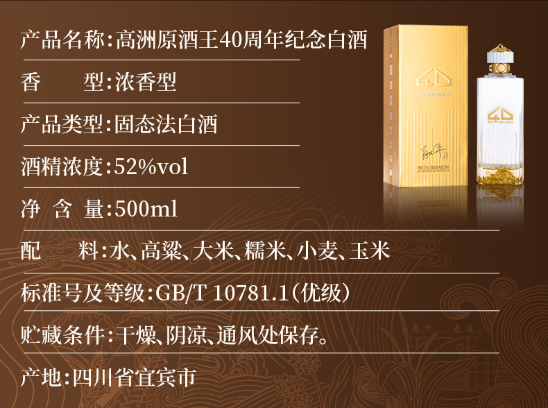 高洲原酒王40周年纪念浓香型白酒500ml 52度