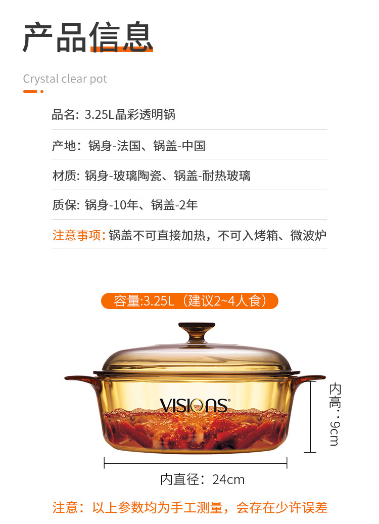 康宁 VISIONS晶彩系列透明锅--3.25L
