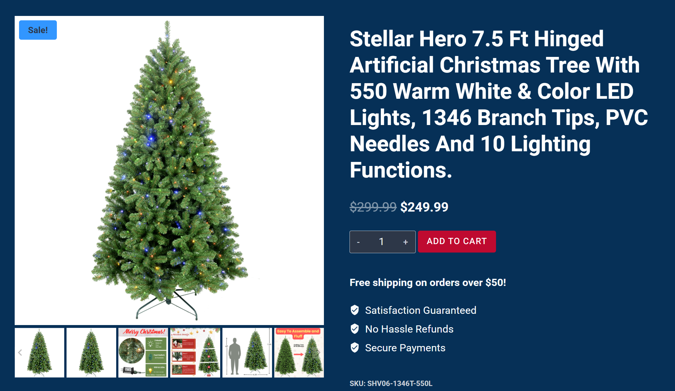 【原价1500元】2025款 美国 Stellar Hero 高端圣诞树 带多色LED灯 环保 安全 长寿命