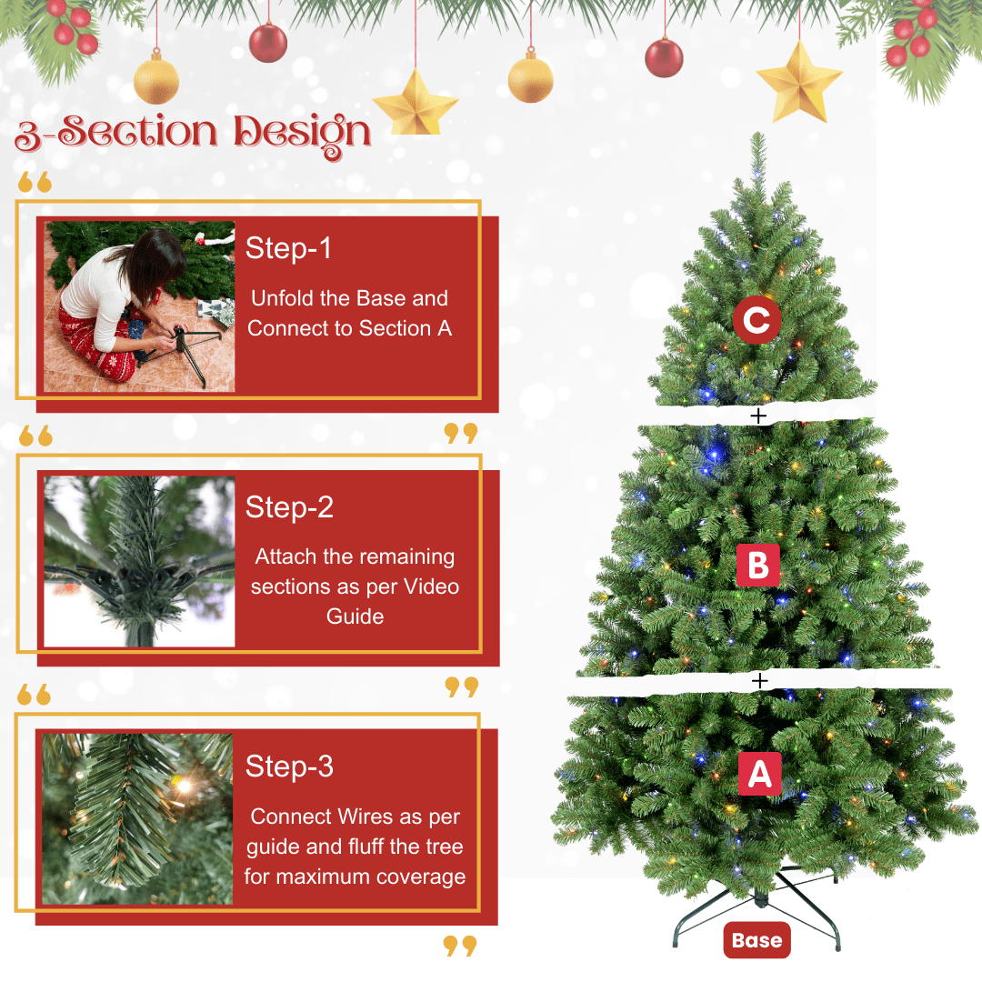 这款人造圣诞树可拆分为三部分,安装、拆卸和收纳都非常方便。只需展开每个树枝,您的圣诞树就准备好了!