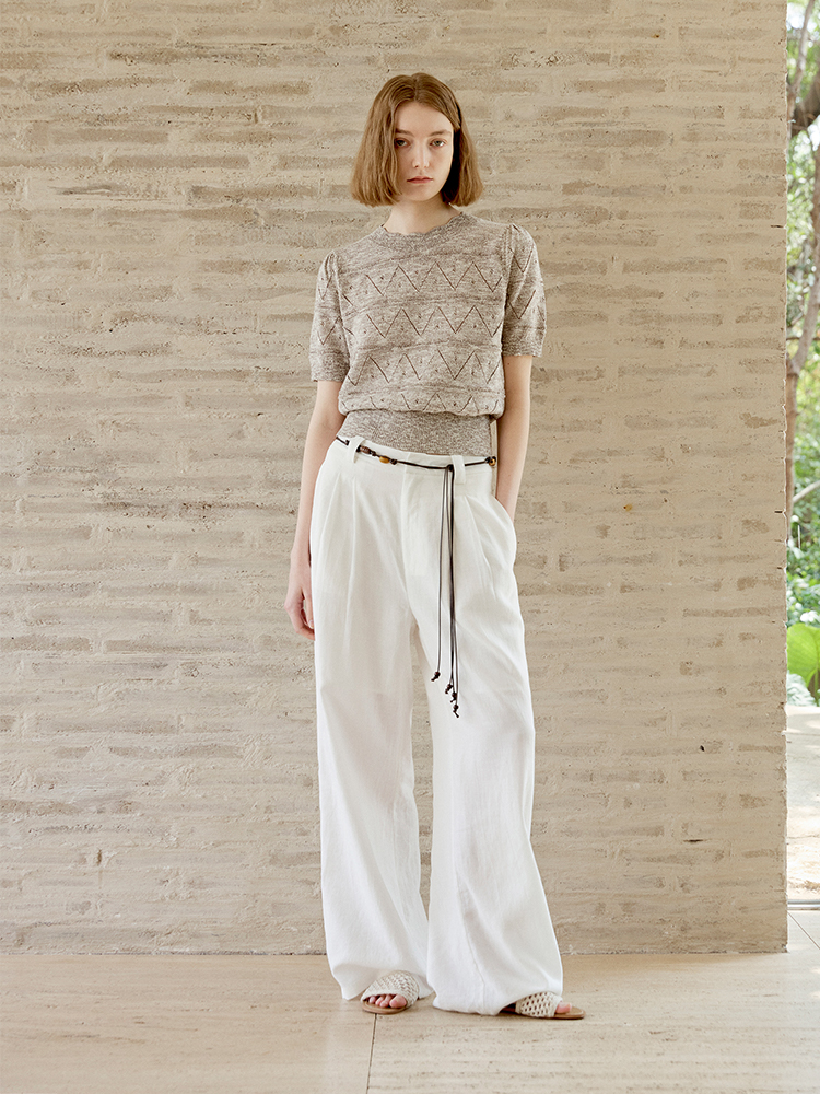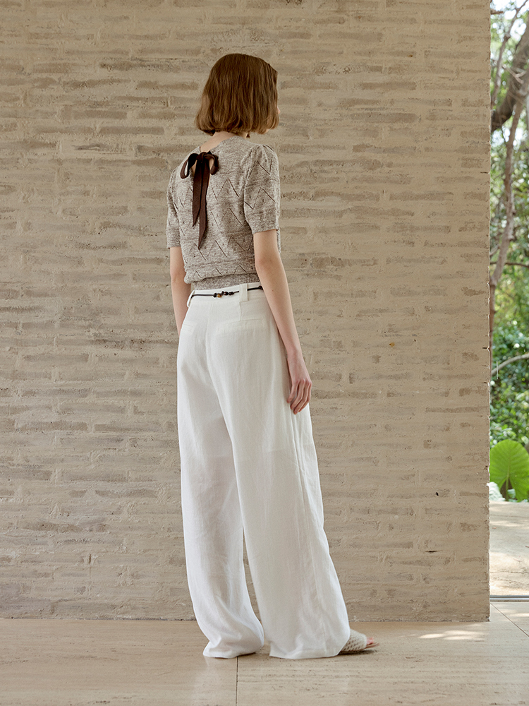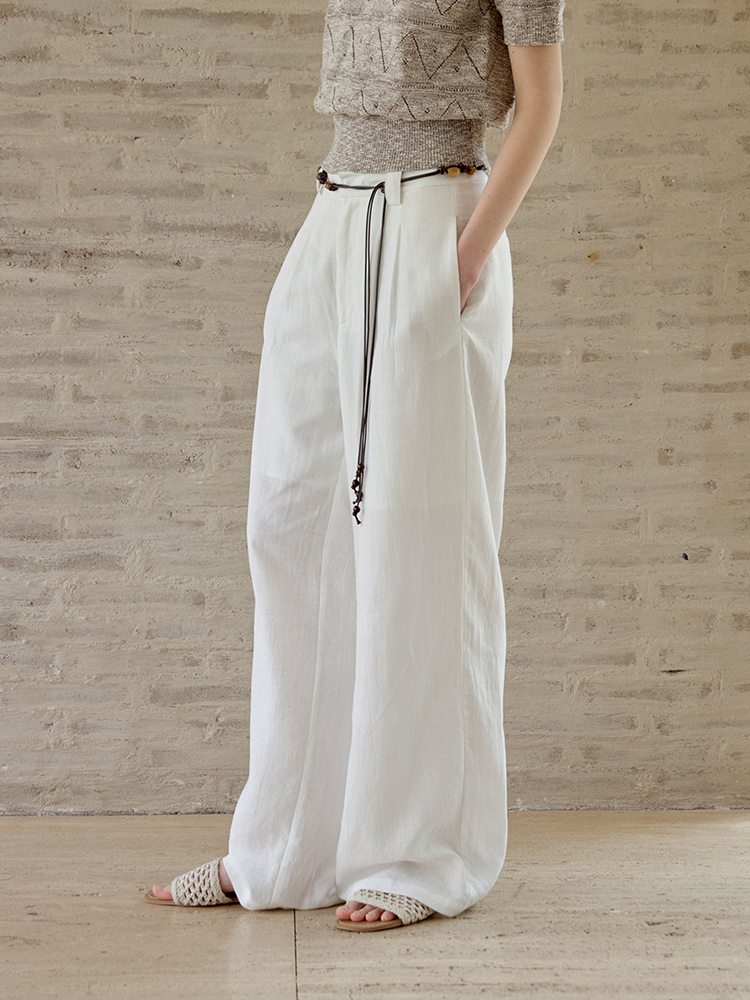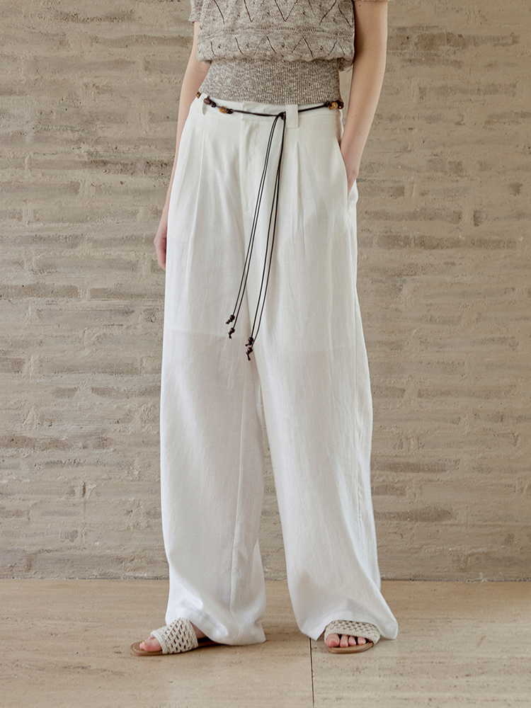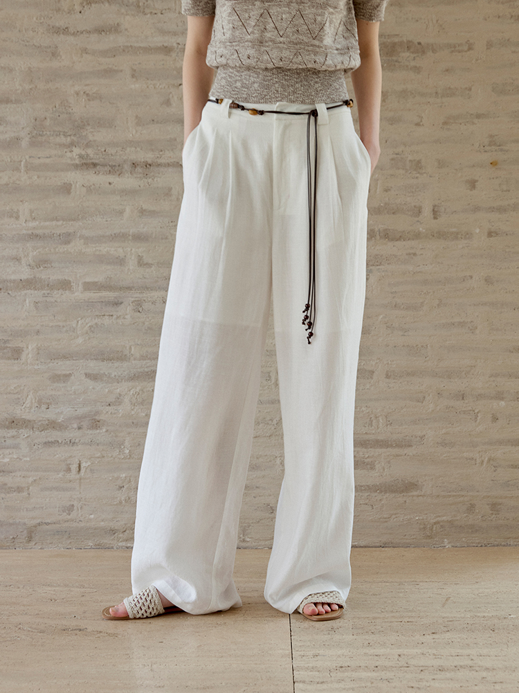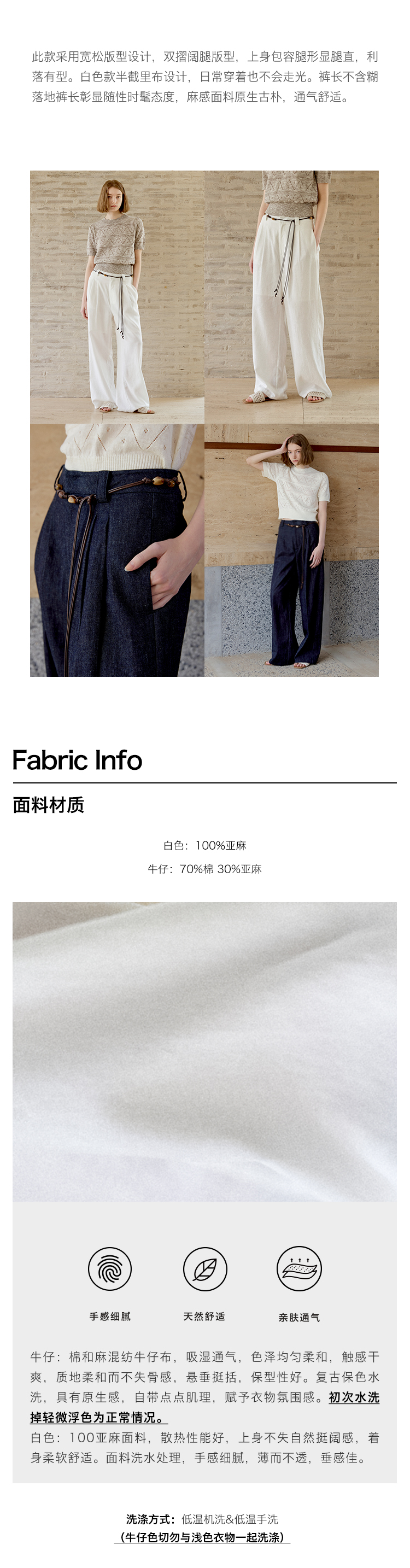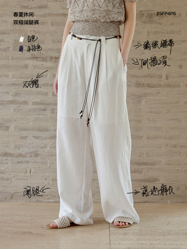 ForPoem 现货 25/SS原创设计春夏休闲显瘦双褶亚麻阔腿裤