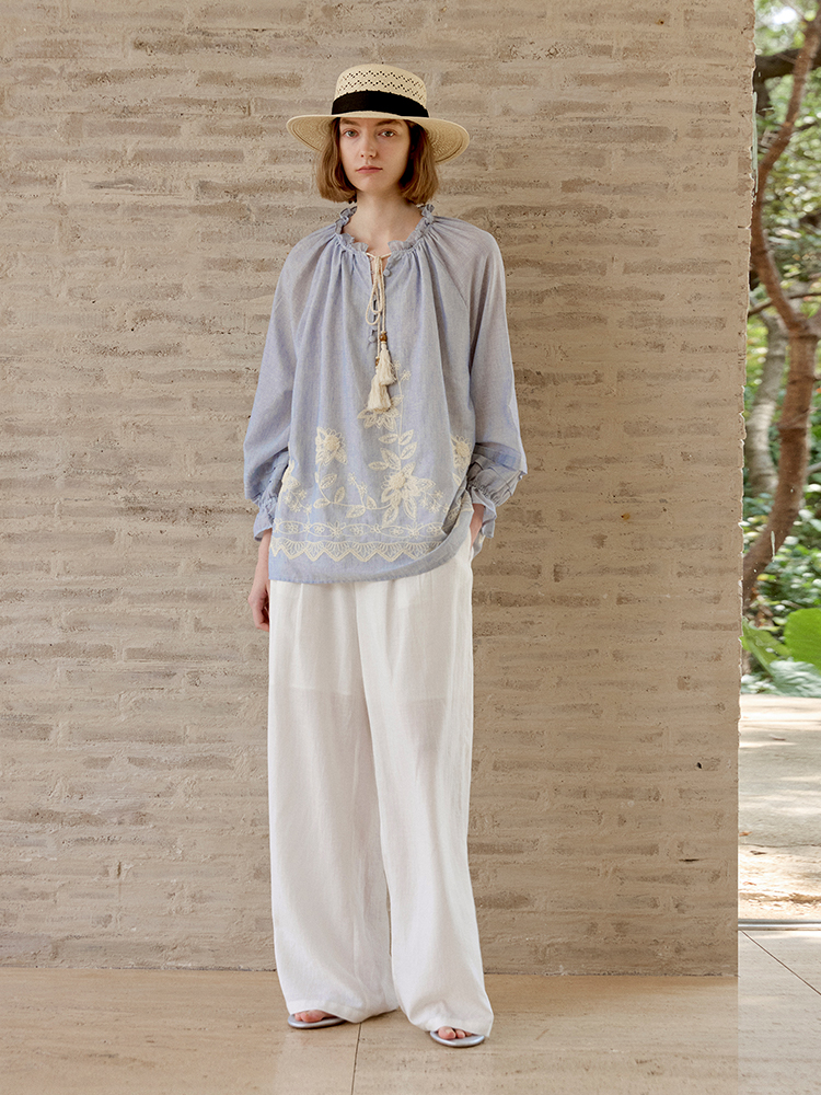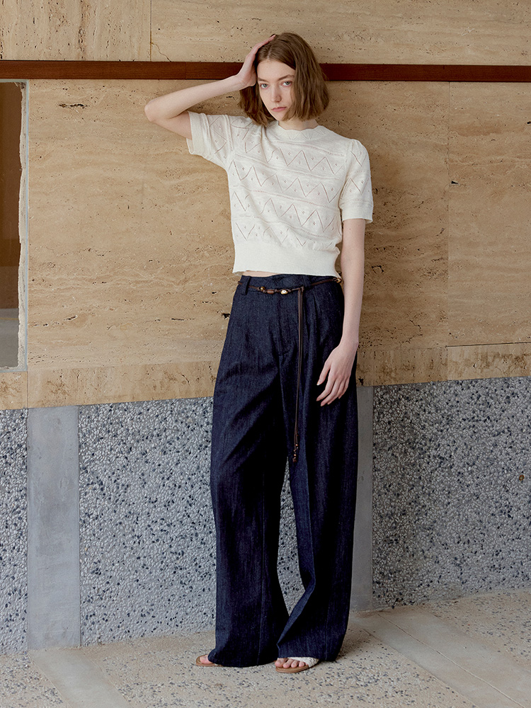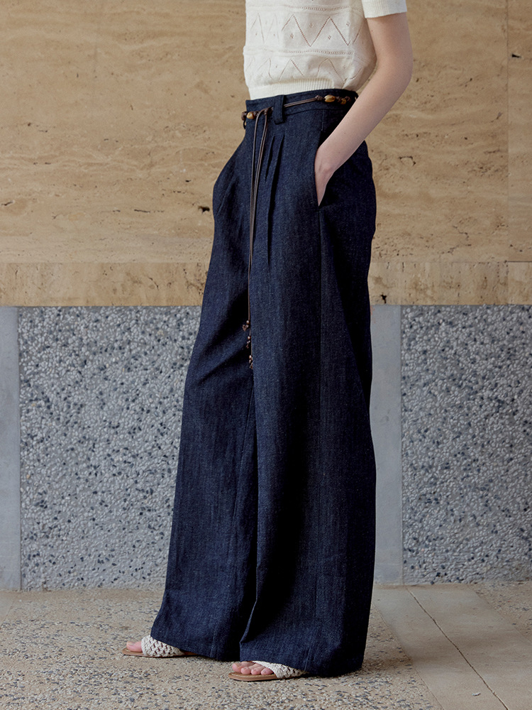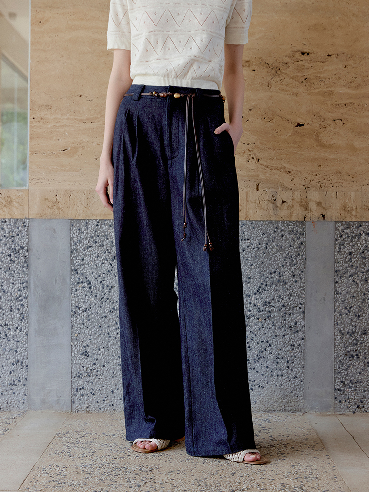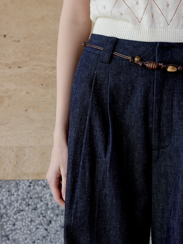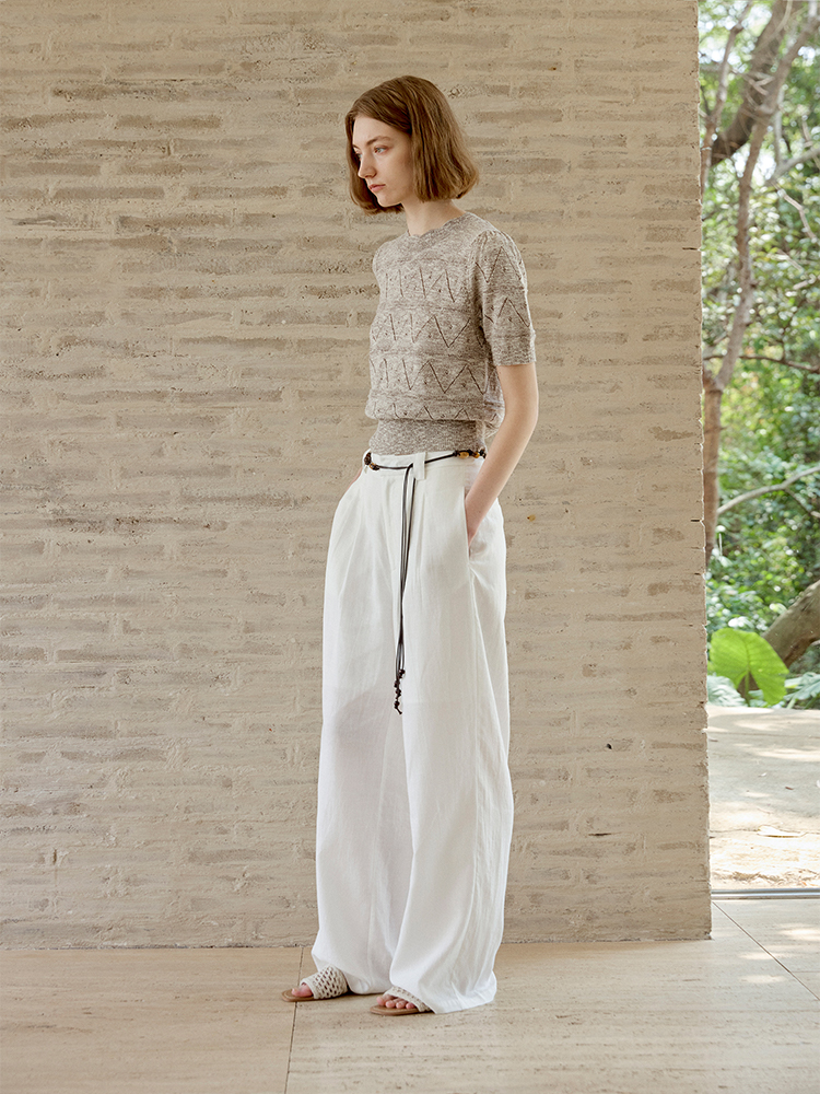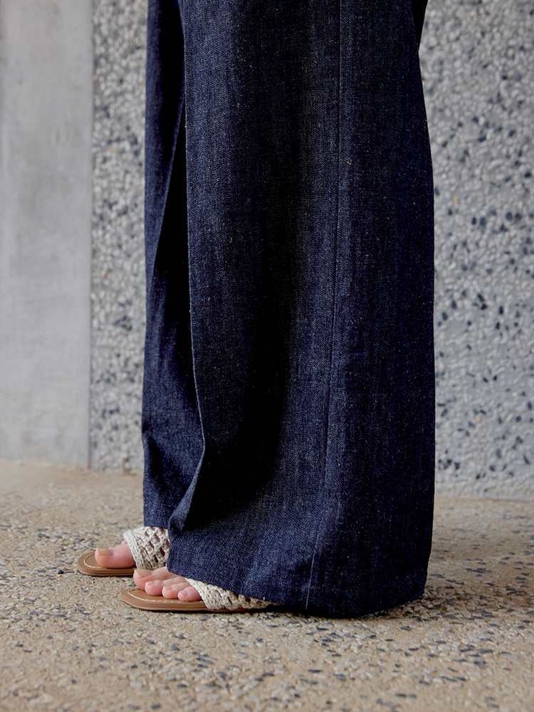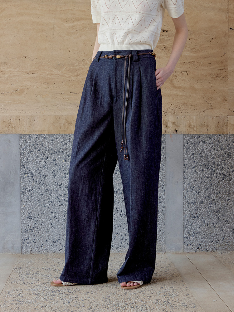 ForPoem 现货 25/SS原创设计春夏休闲显瘦双褶亚麻阔腿裤