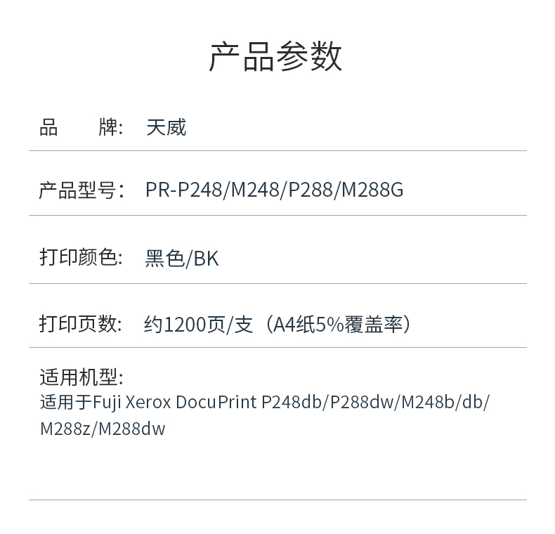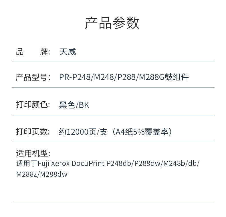 天威P248/P288/M288粉盒 鼓组件 标准装 适用富士施乐 Fuji Xerox DocuPrint P248db P288dw M248b/db M288z M288dw