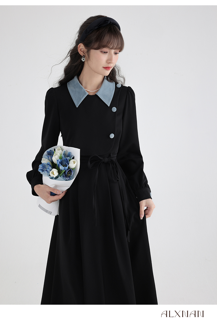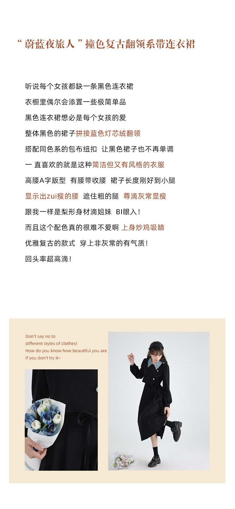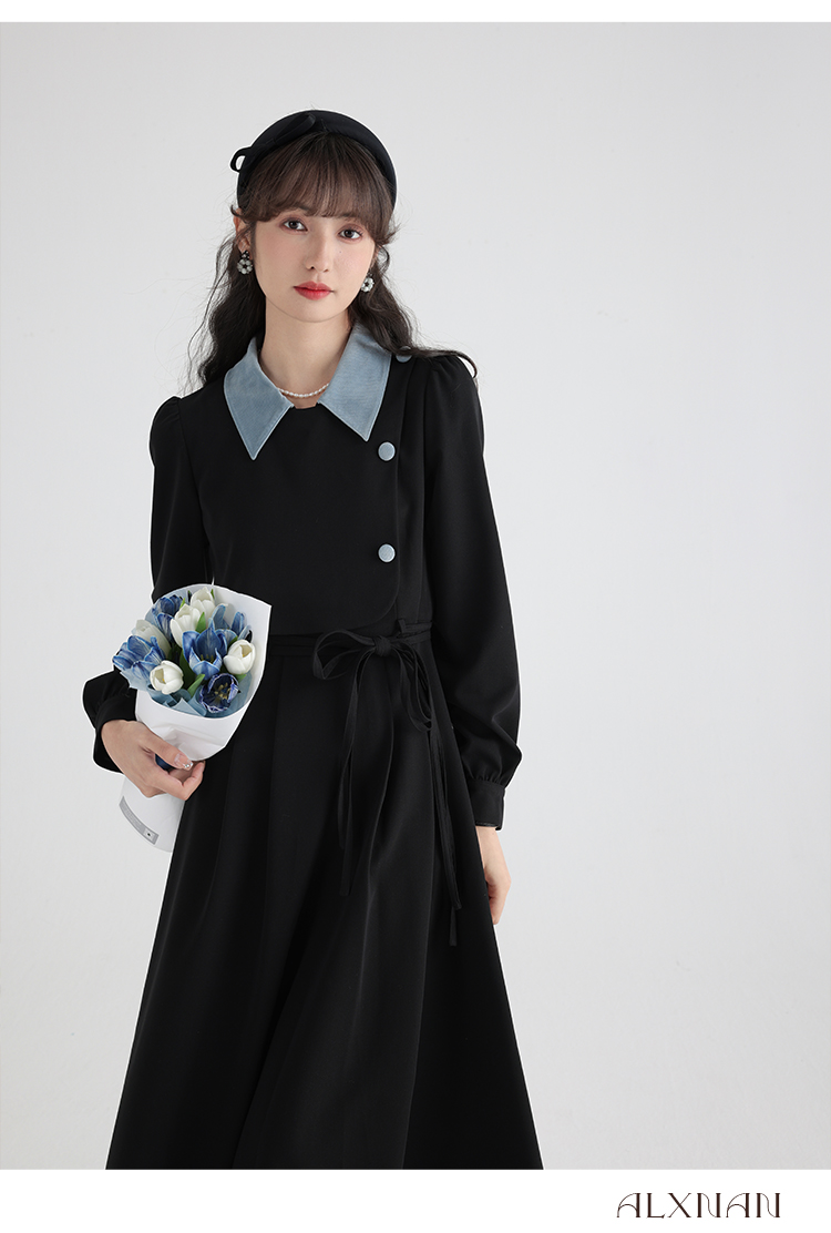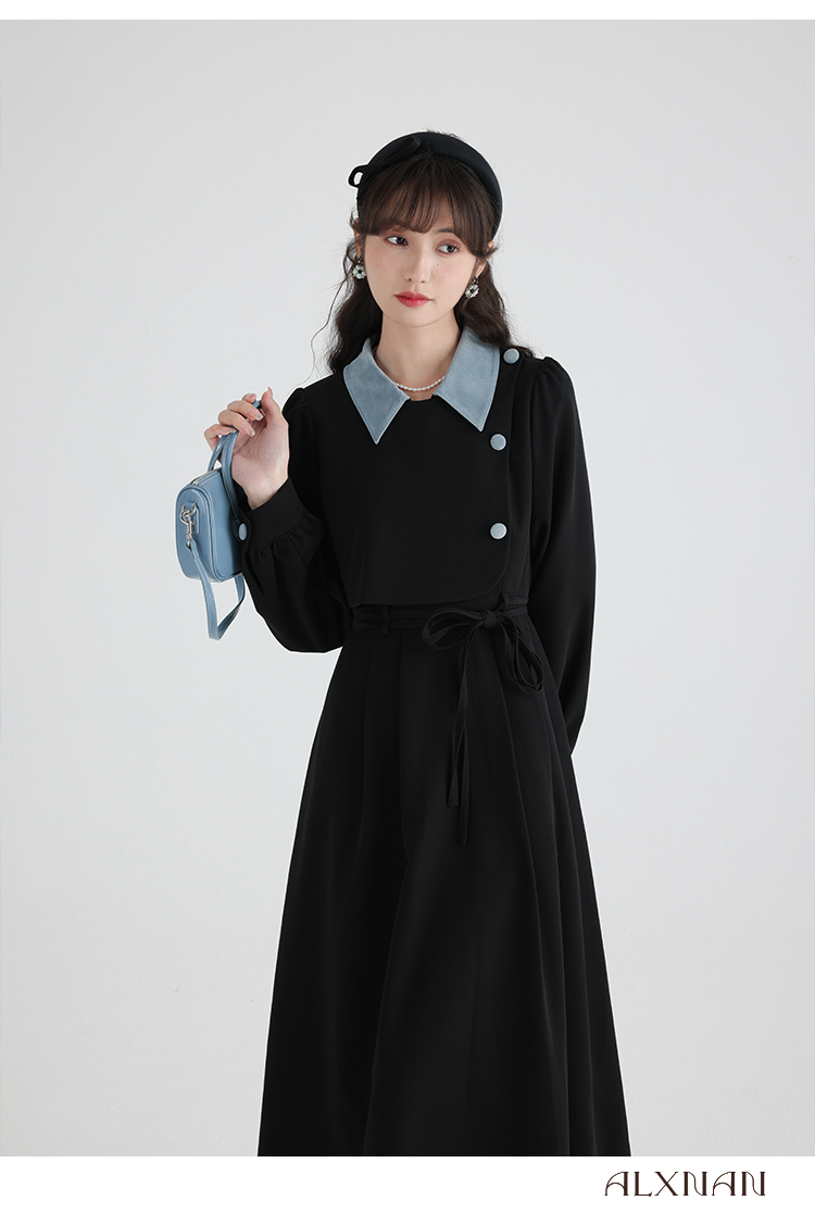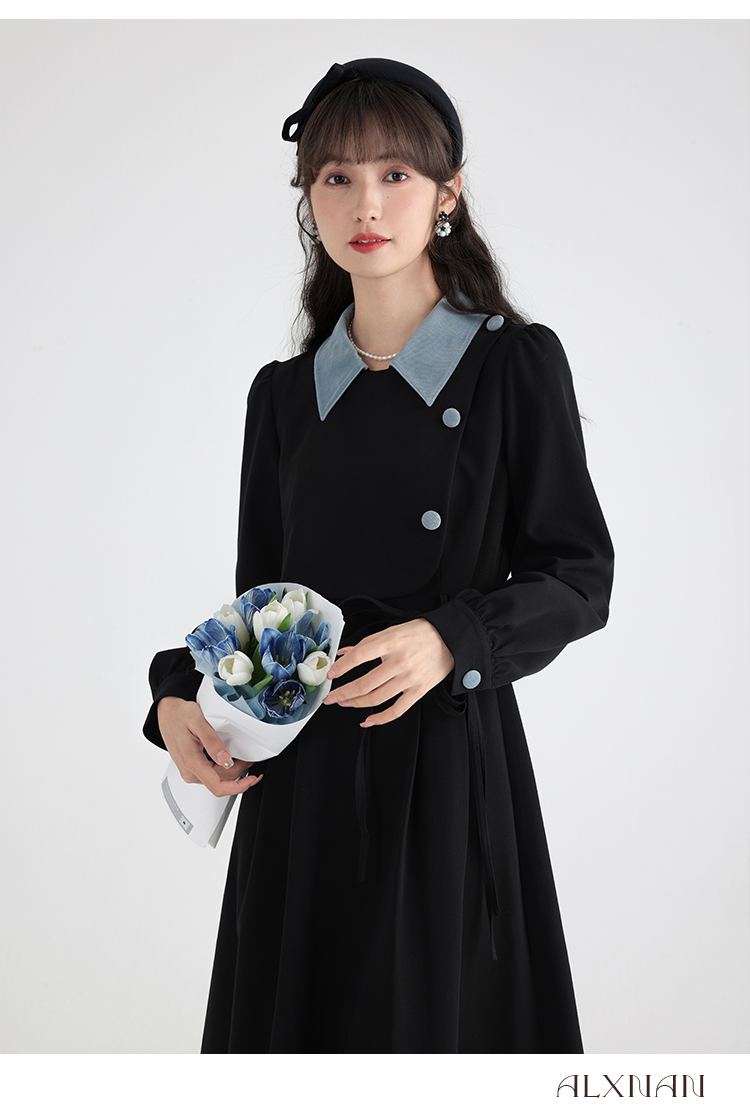 【6折秒杀】鹿向南《蔚蓝夜旅人》法式假两件时尚2025秋季连衣裙女新款长裙子LXN273183