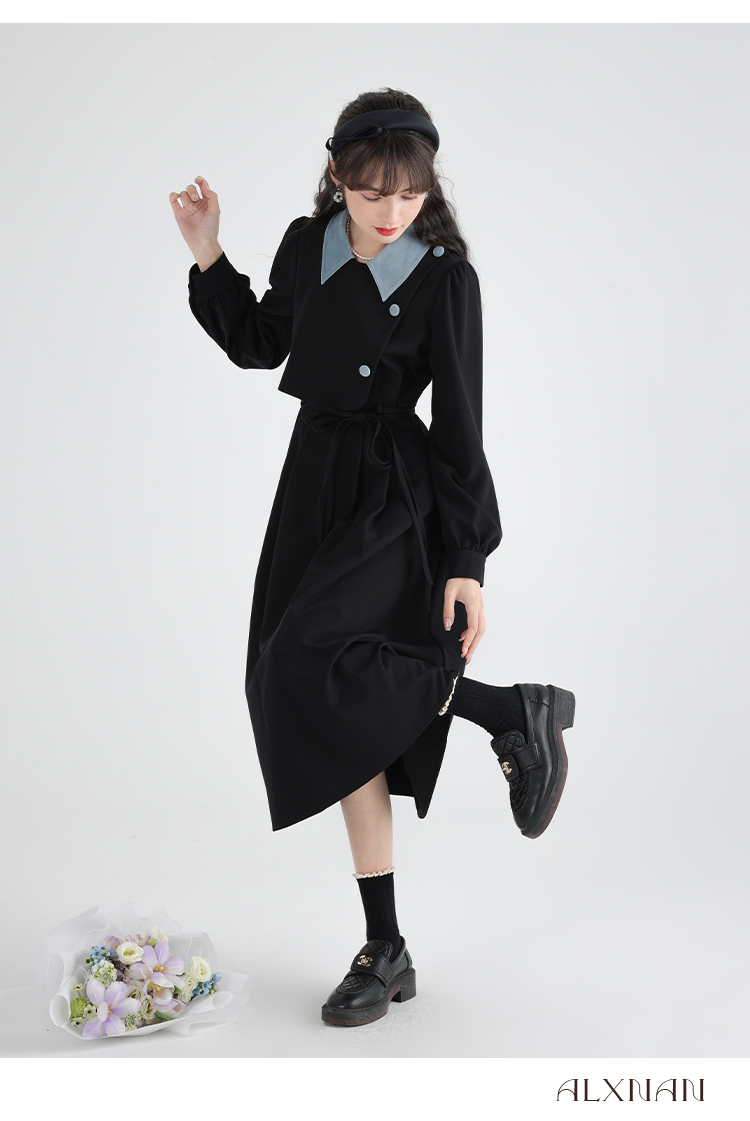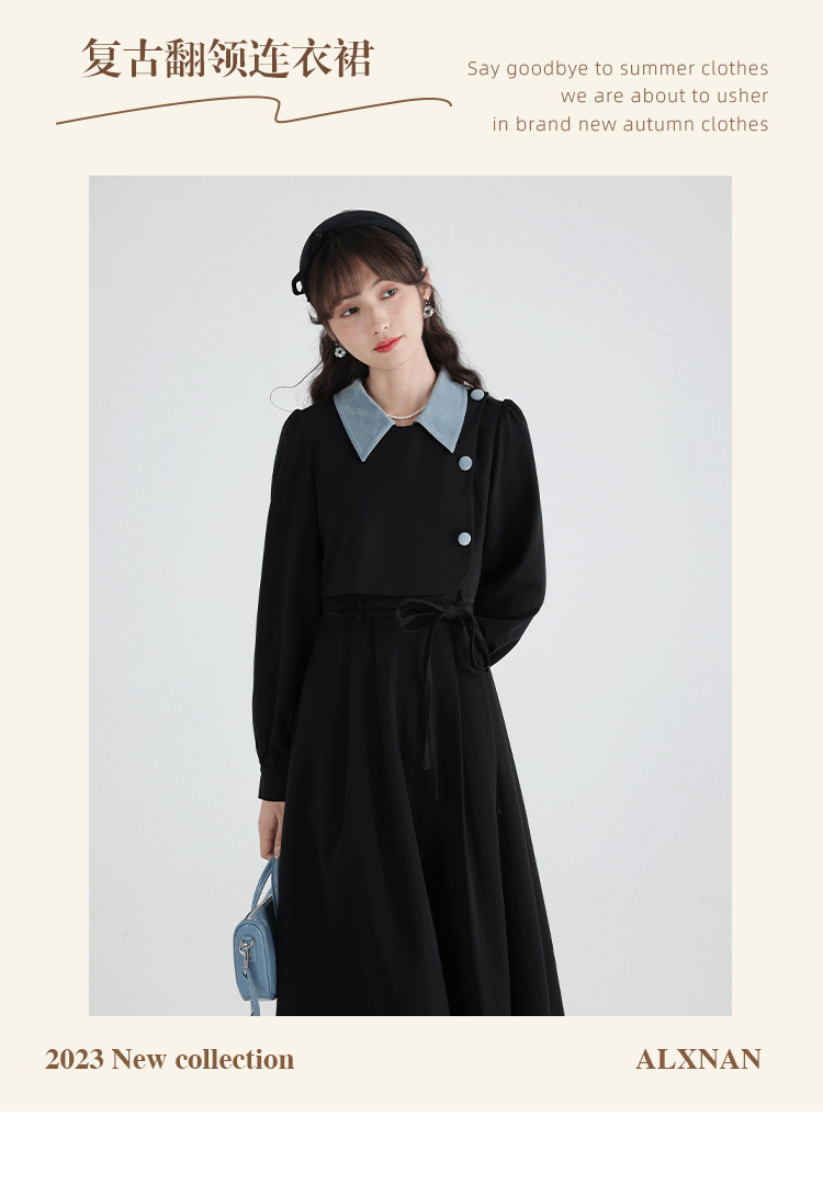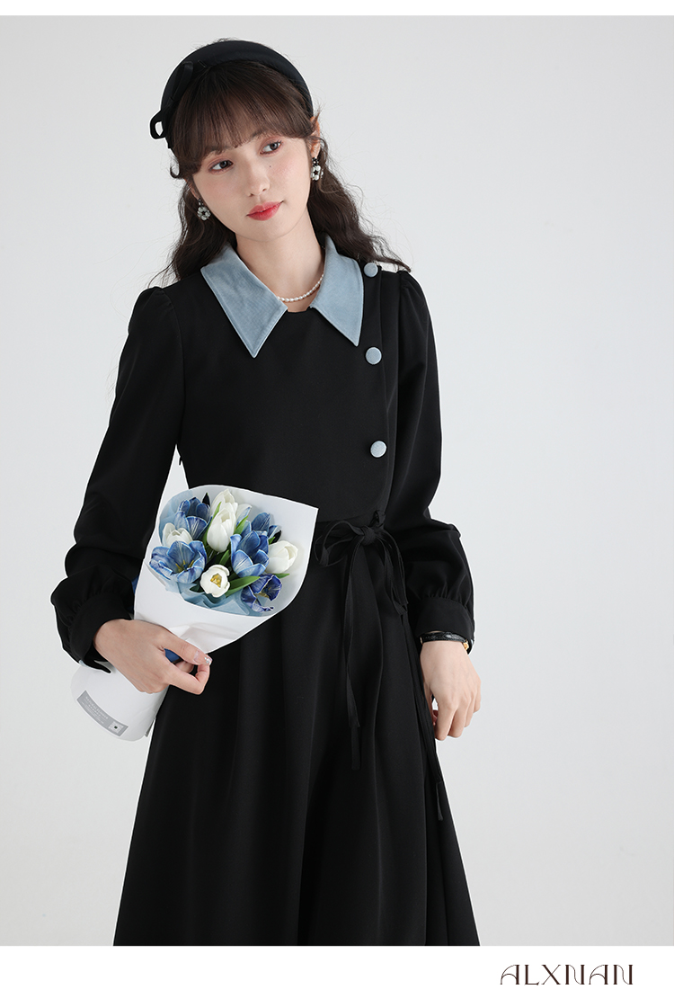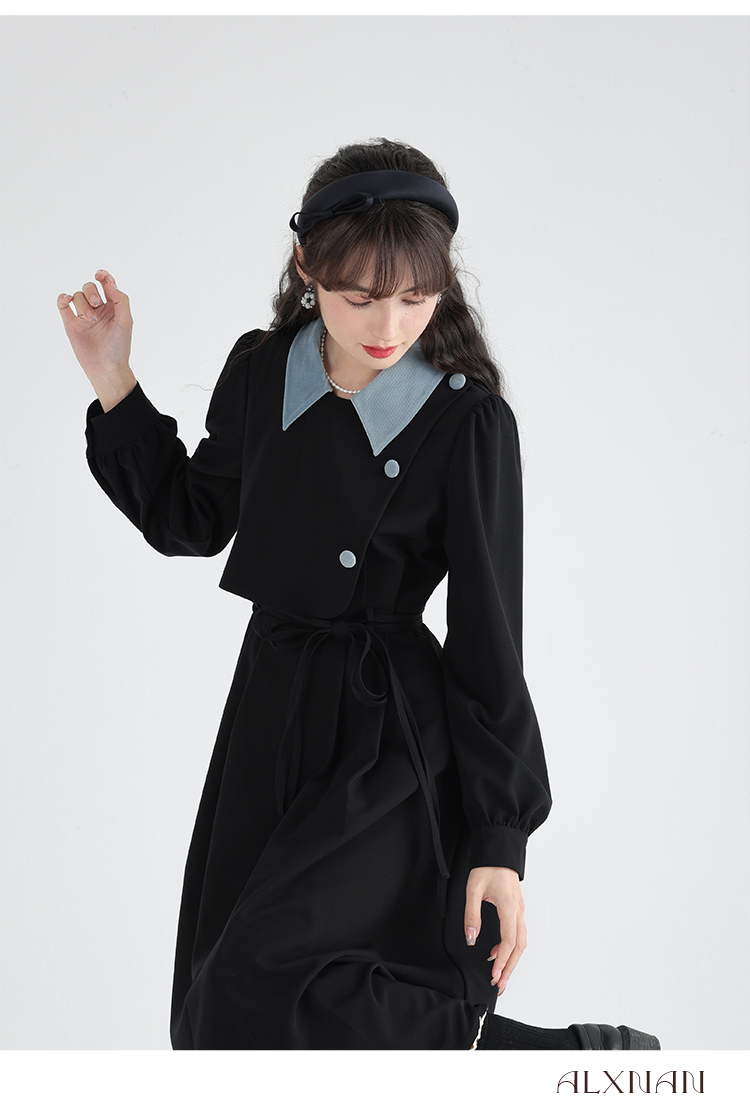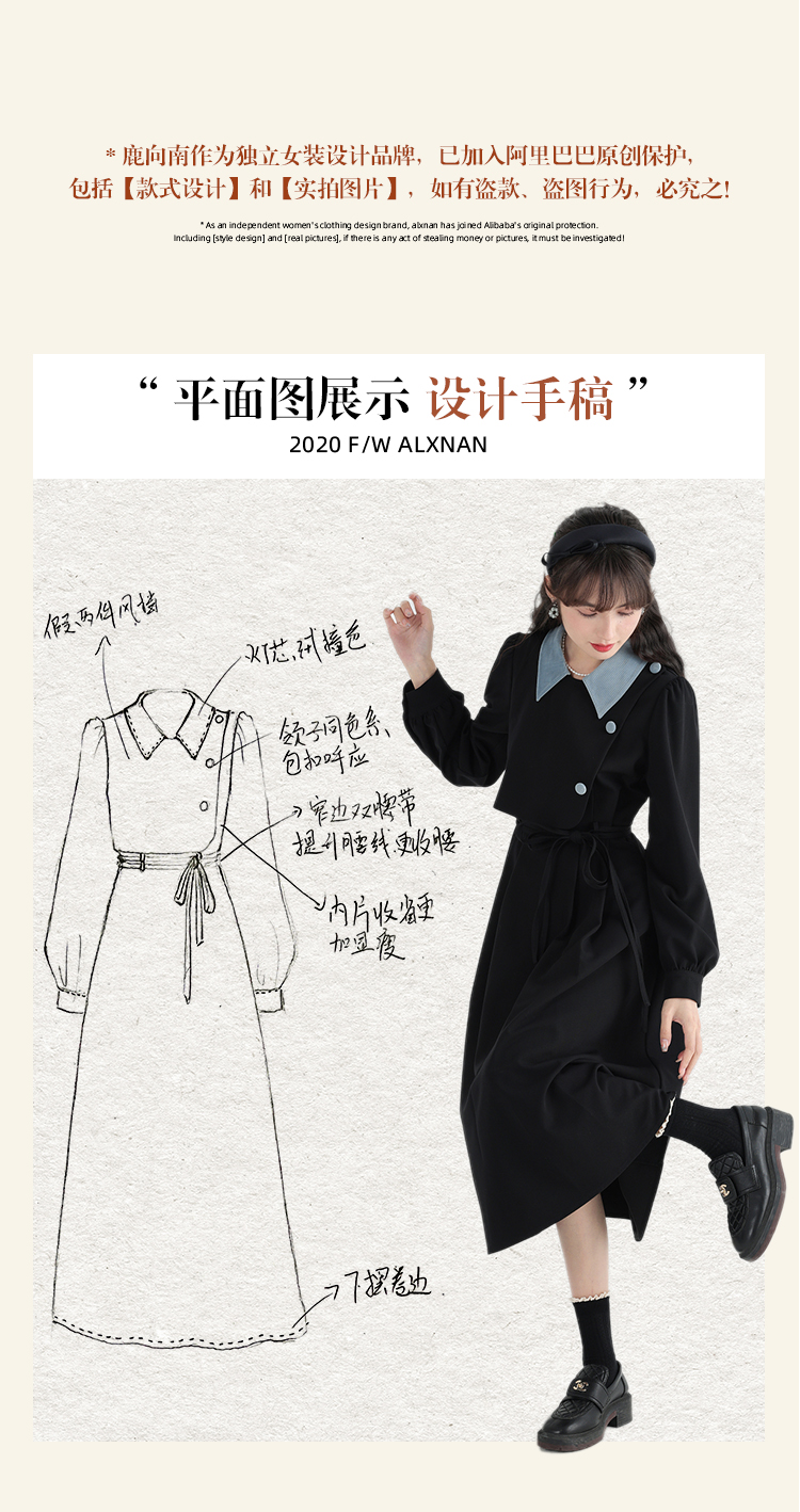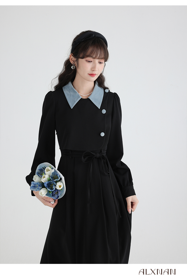 【6折秒杀】鹿向南《蔚蓝夜旅人》法式假两件时尚2025秋季连衣裙女新款长裙子LXN273183