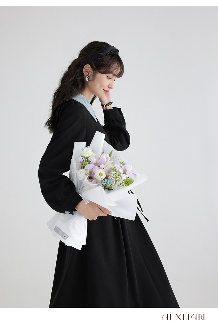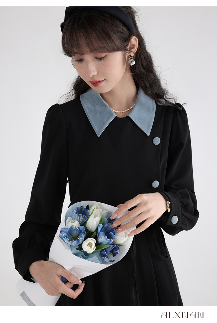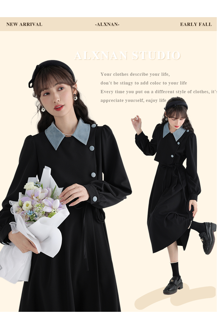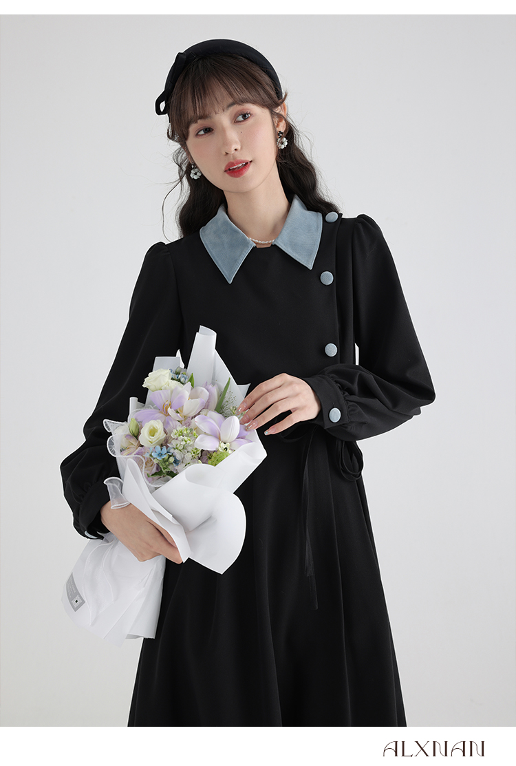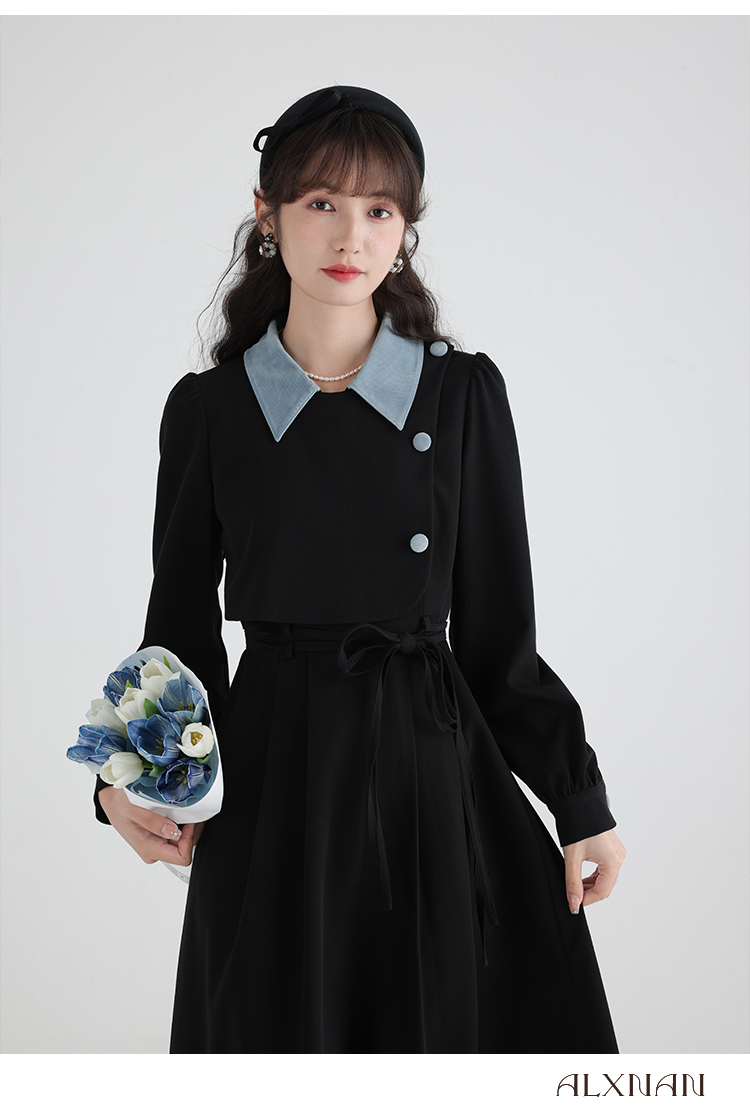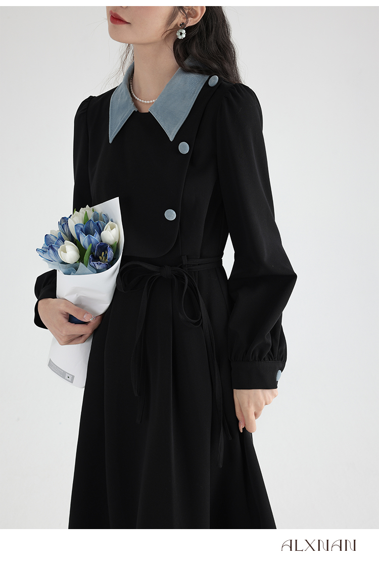 【6折秒杀】鹿向南《蔚蓝夜旅人》法式假两件时尚2025秋季连衣裙女新款长裙子LXN273183