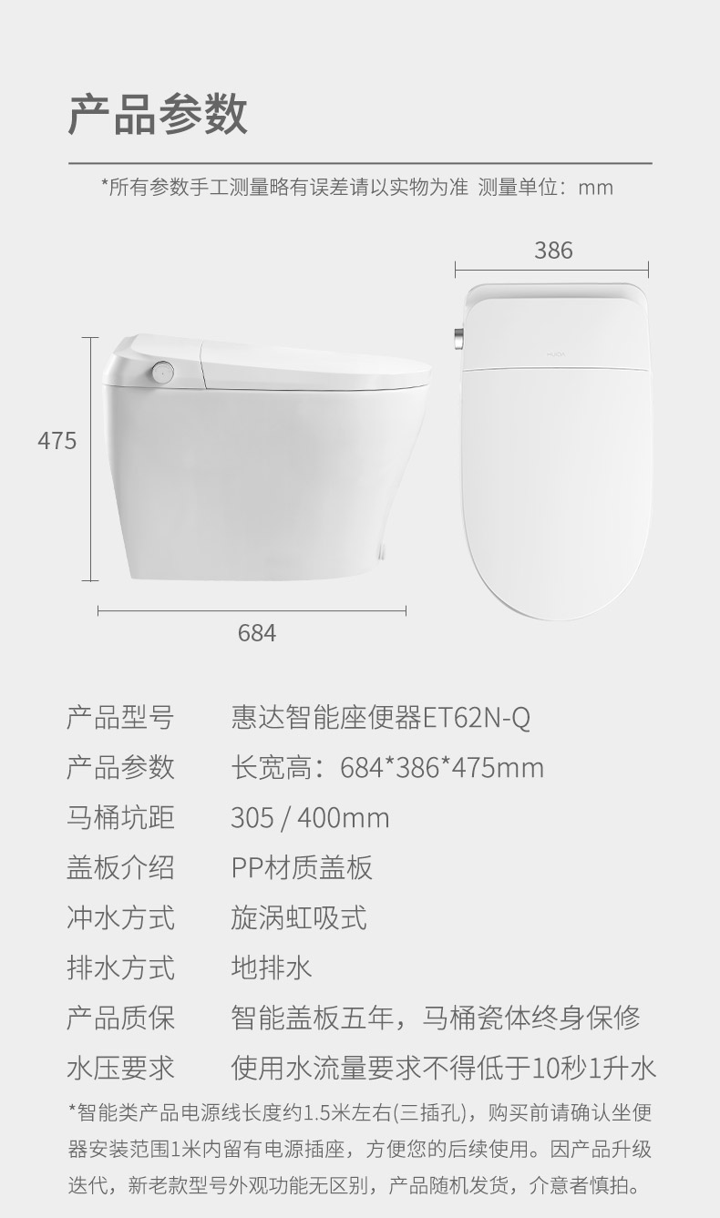 惠达智能马桶ET62NQ全自动即热一体带水箱零水压虹吸家用坐便器